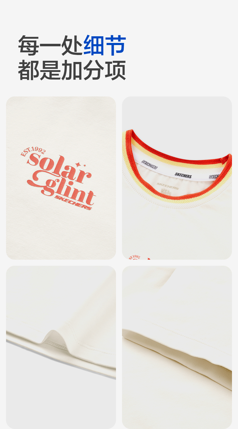 斯凯奇2025春季新品童装亲子装t恤短袖圆领女款修身缤纷休闲系列