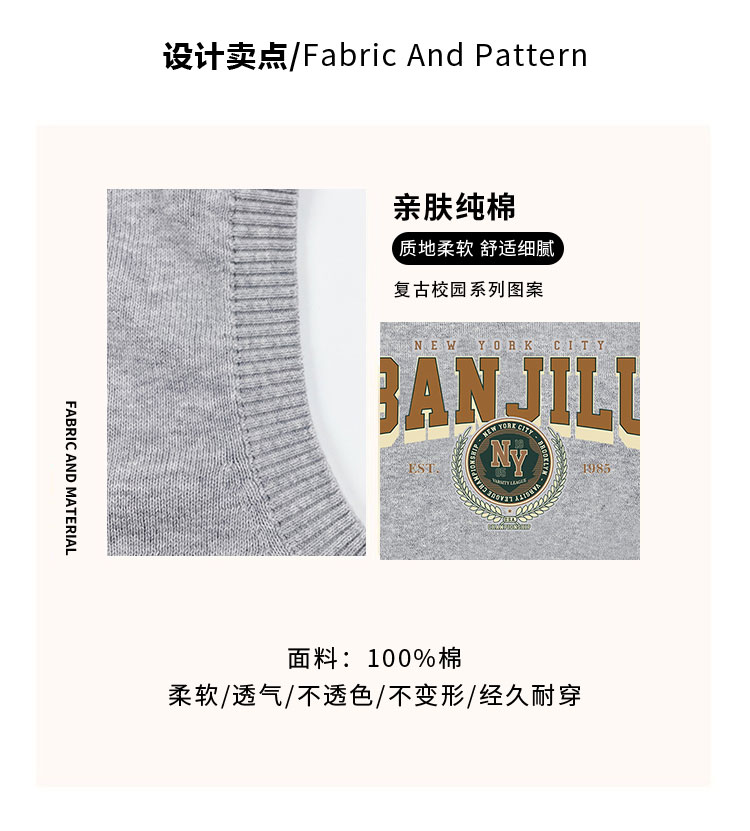 班吉鹿男童装马甲针织毛衣背心薄款春秋2024新款中大童打底衫上衣
