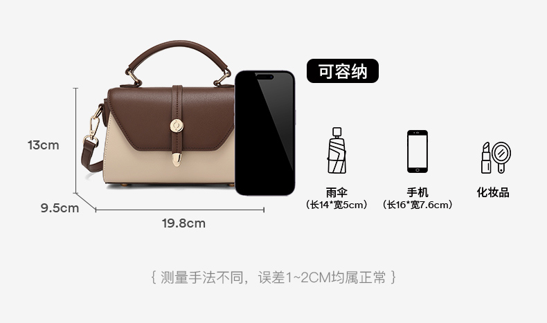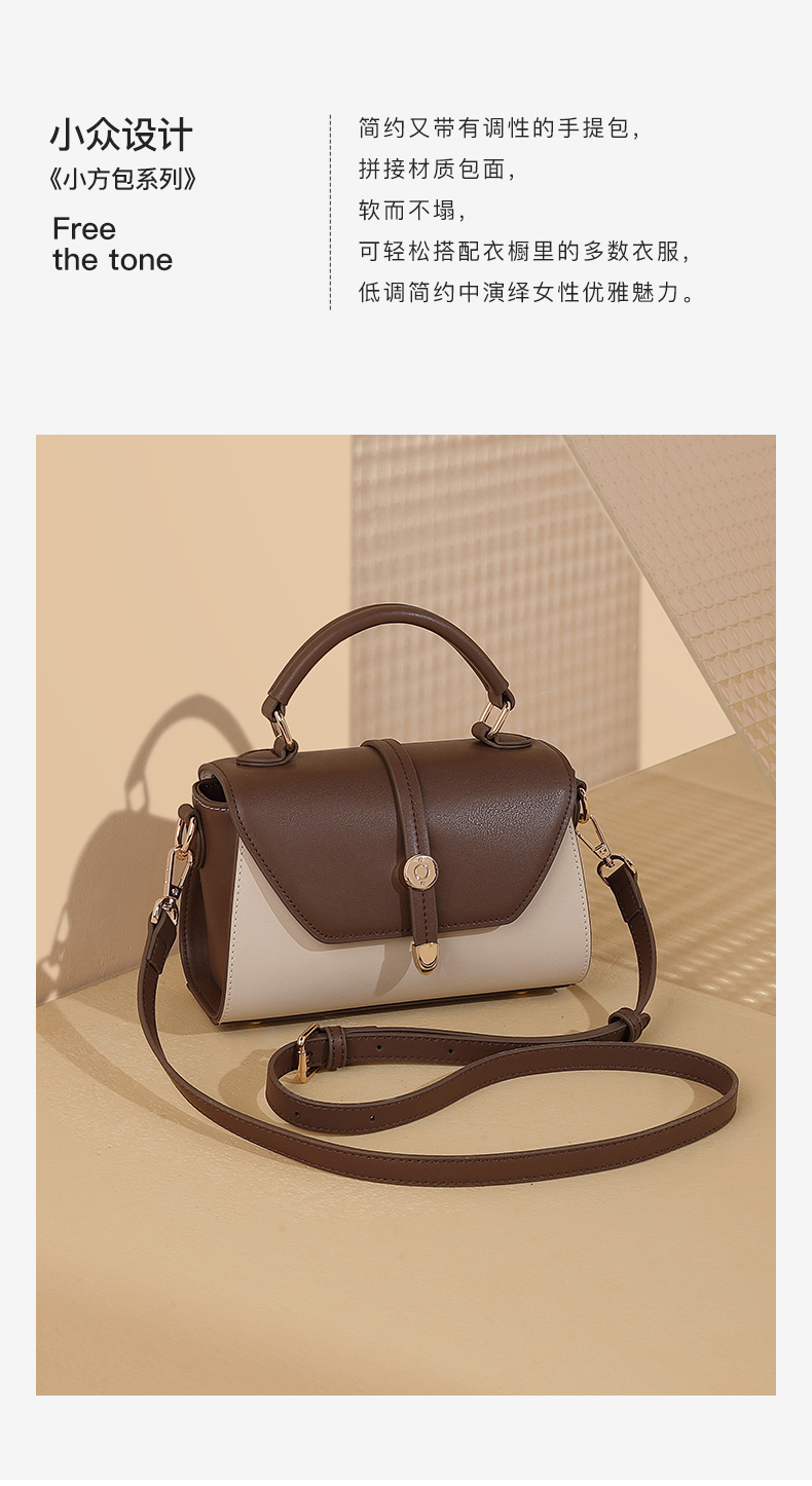 稻草人真皮女包2025新款潮流行女士单肩小方包撞色手提斜挎包正品