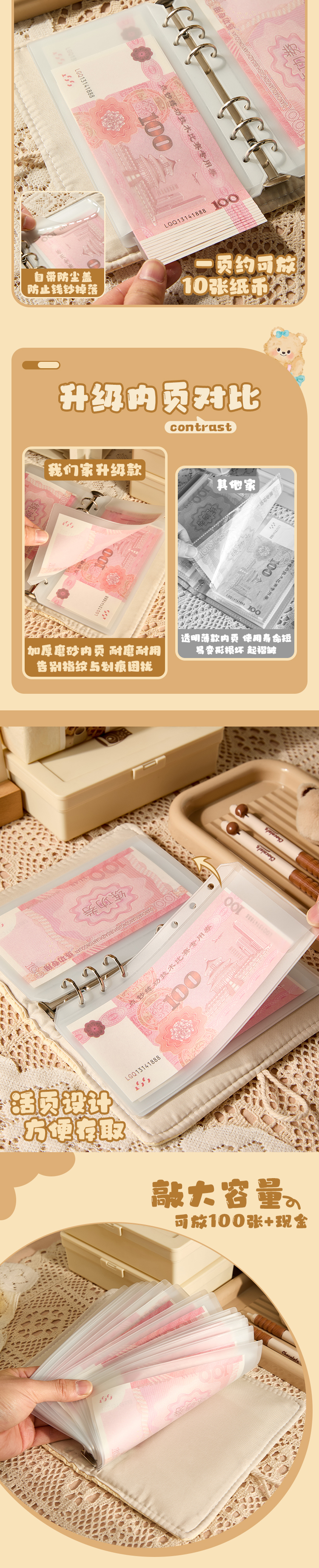 三年二班 现金存钱本2025新款存钱夹钱册可放一万防水存单夹票据专用夹5万大容量存折支票收纳袋子理财纪念钞