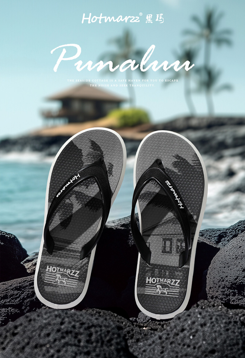 hotmarzz/黑玛拖鞋男士人字拖防滑耐磨夹脚夹趾海边沙滩新款凉拖