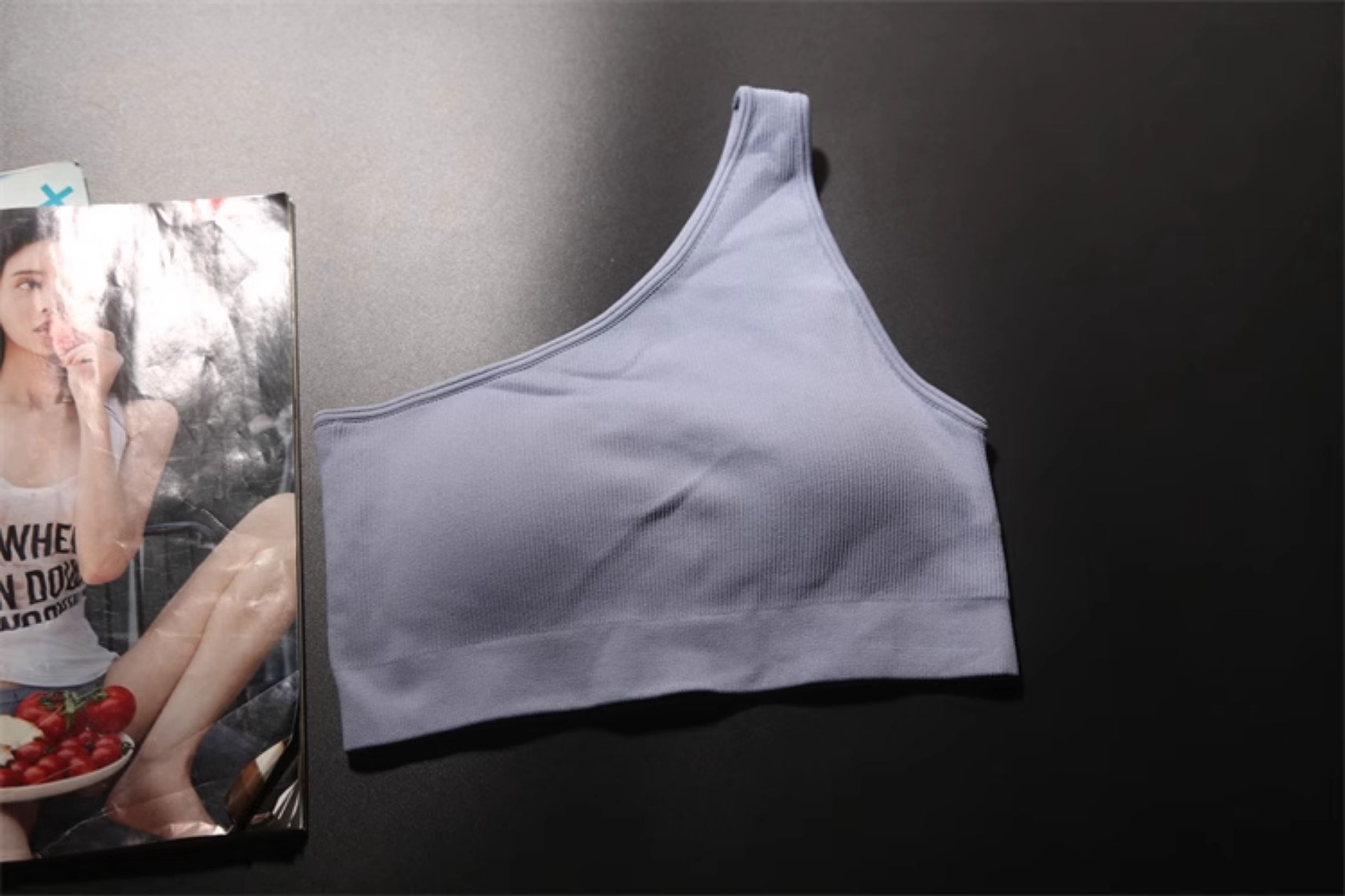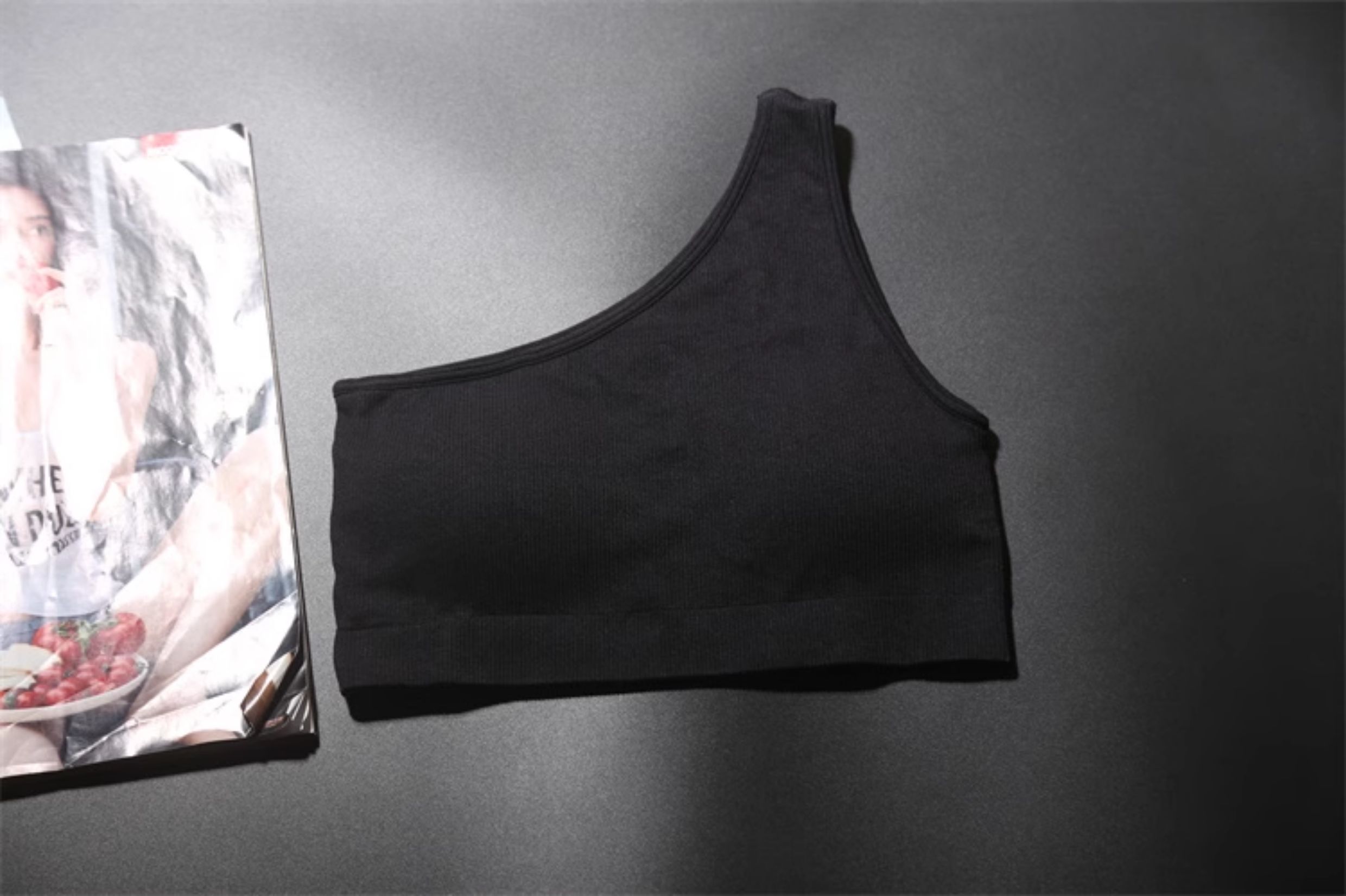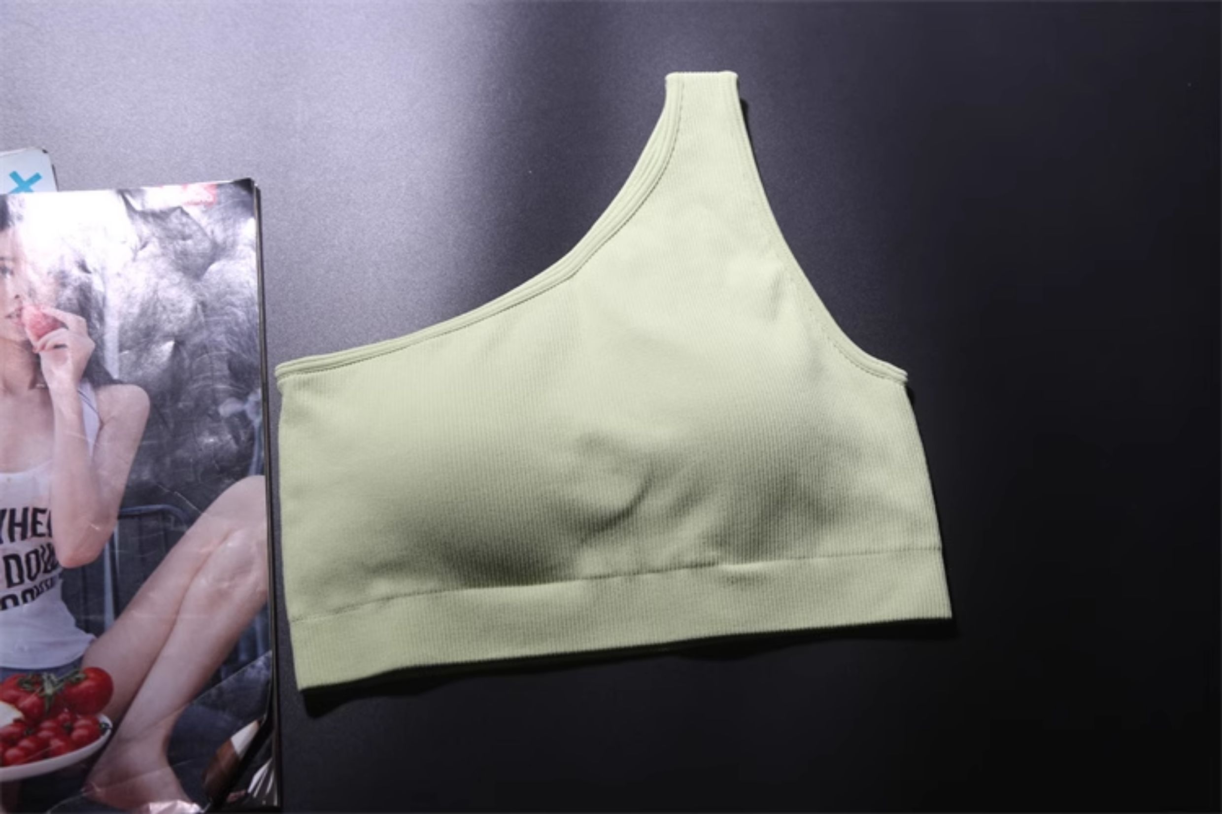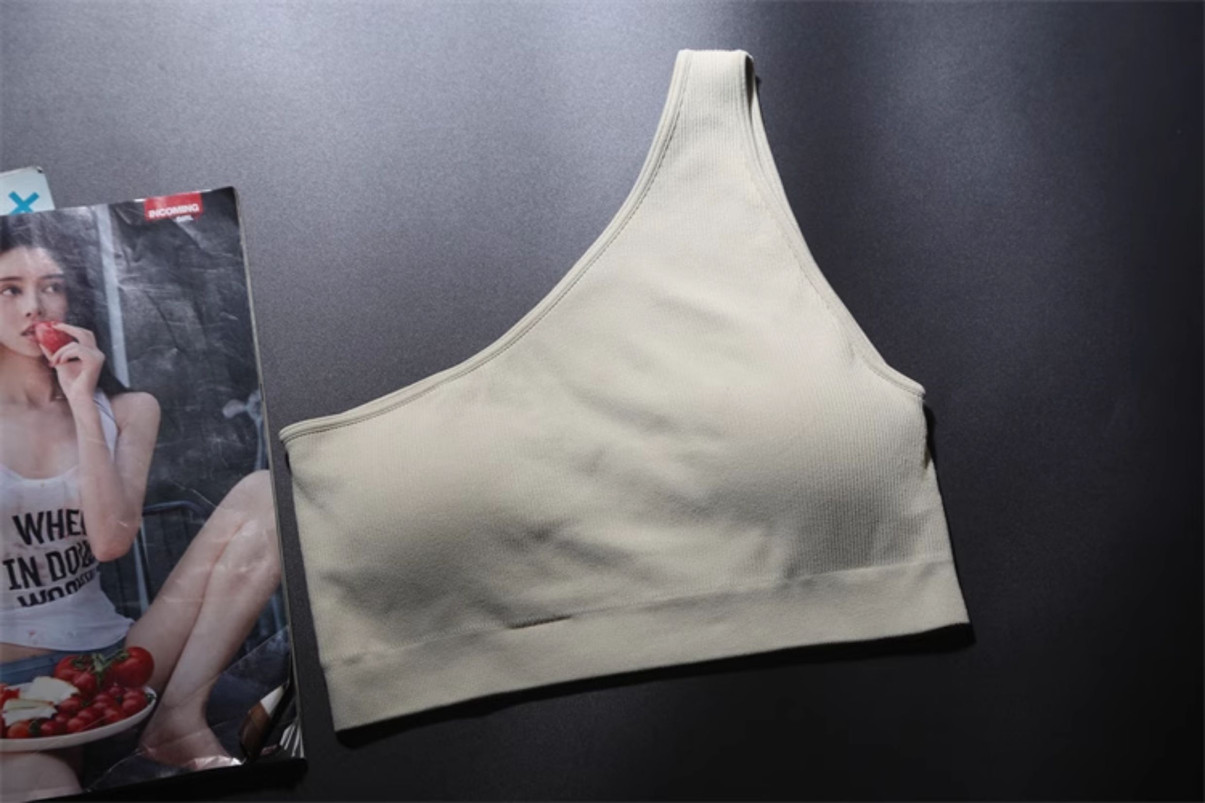 欧美牛货!单肩运动文胸女美背防震跑步聚拢斜肩背心健身瑜伽内衣