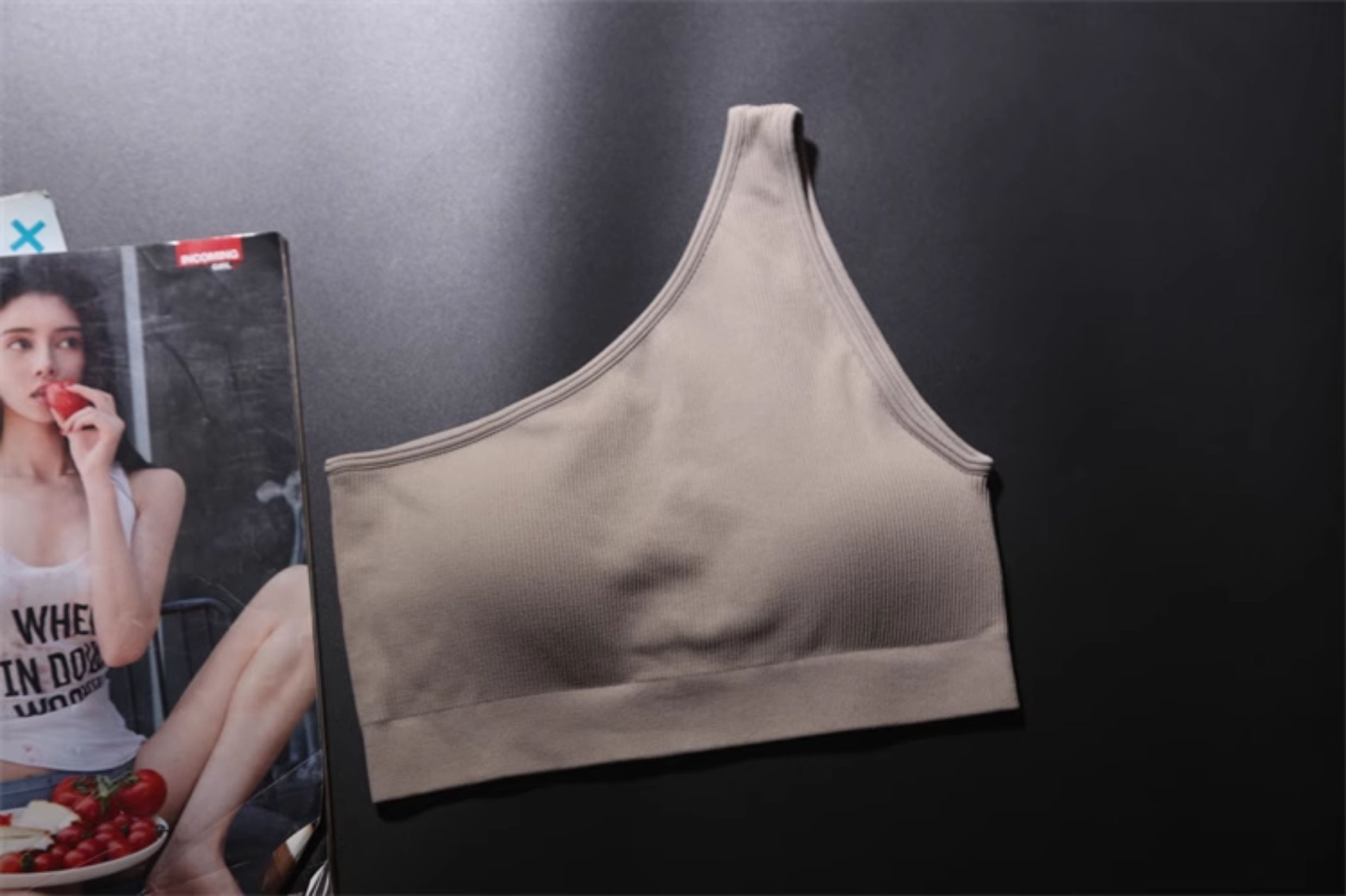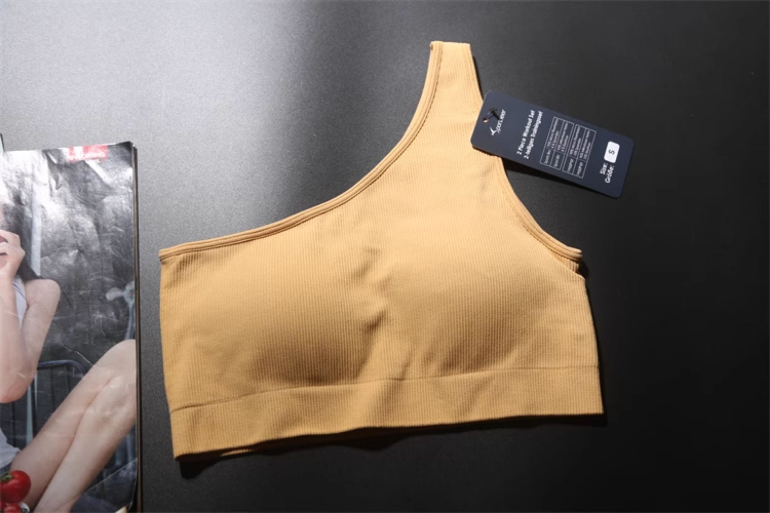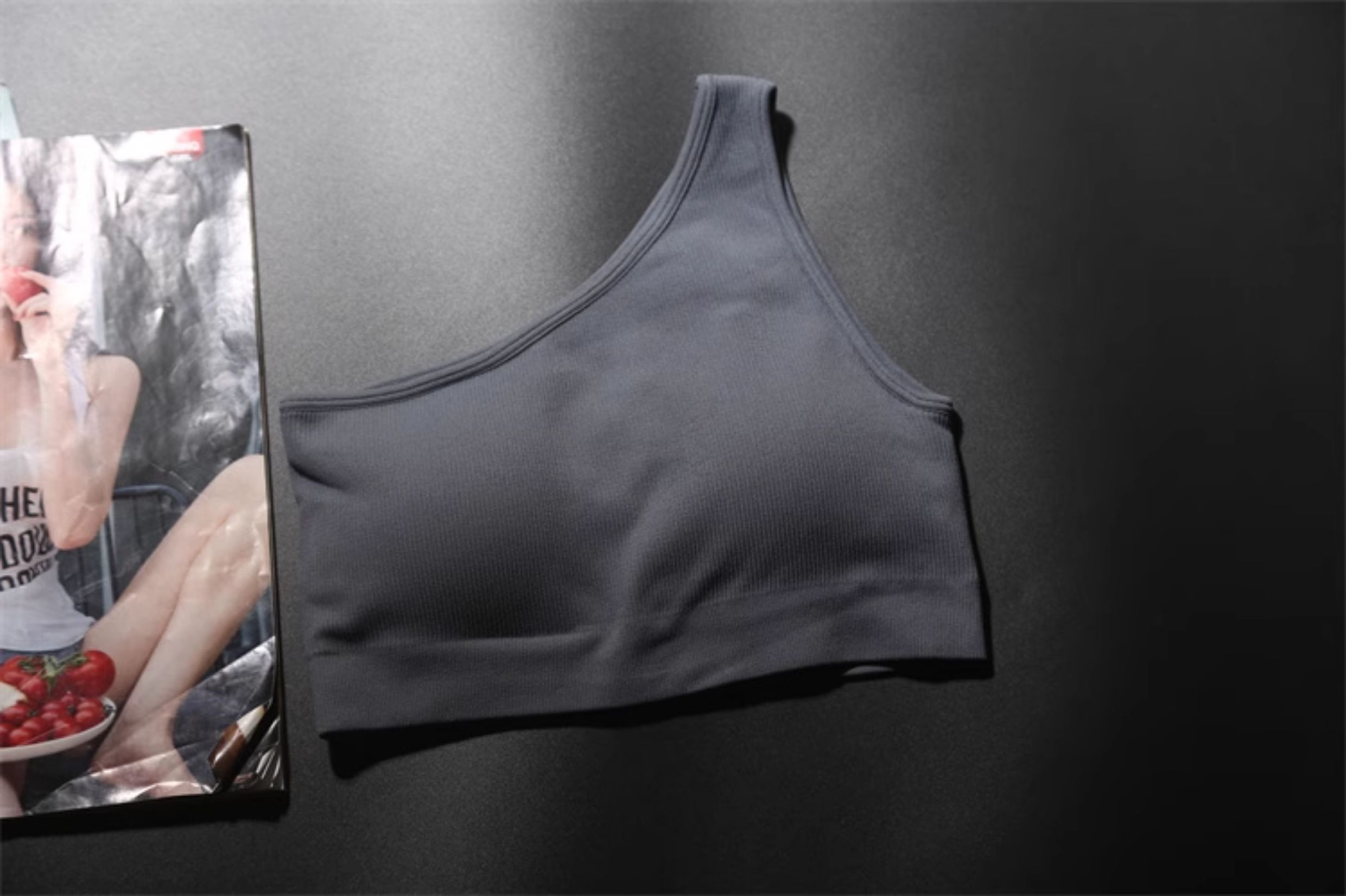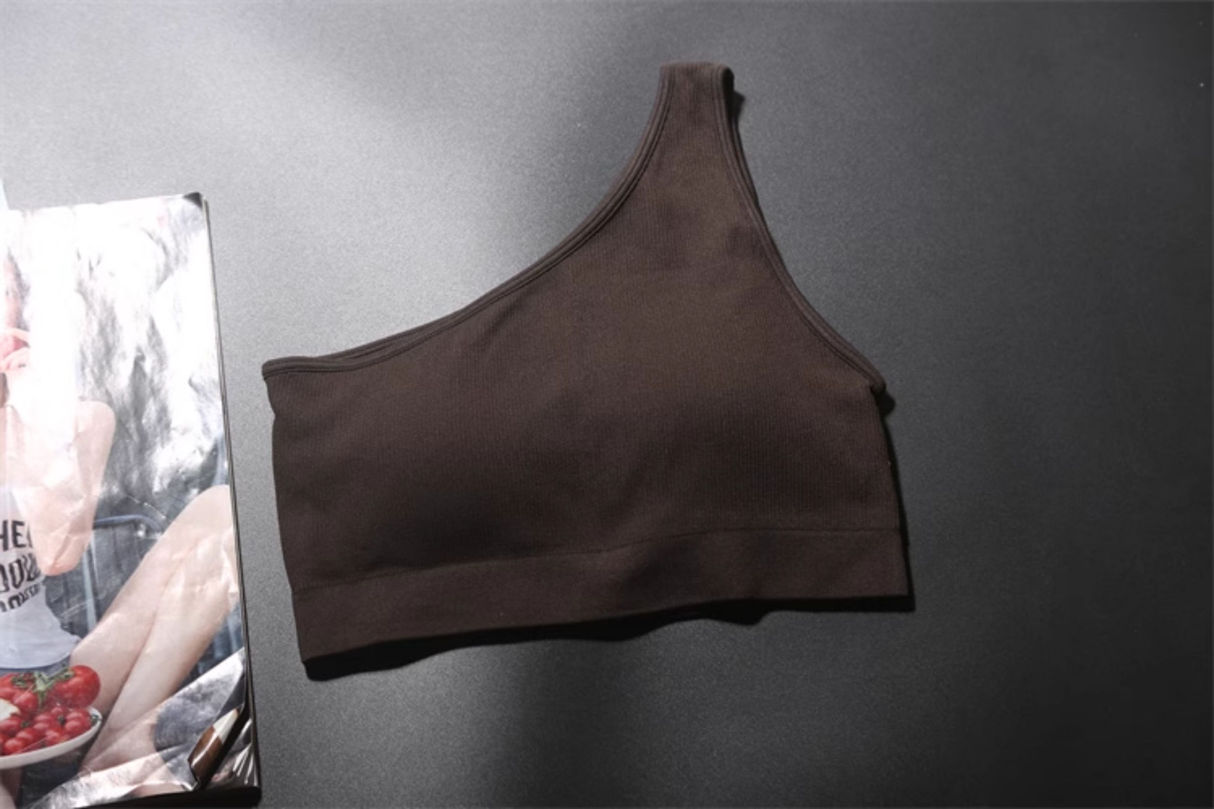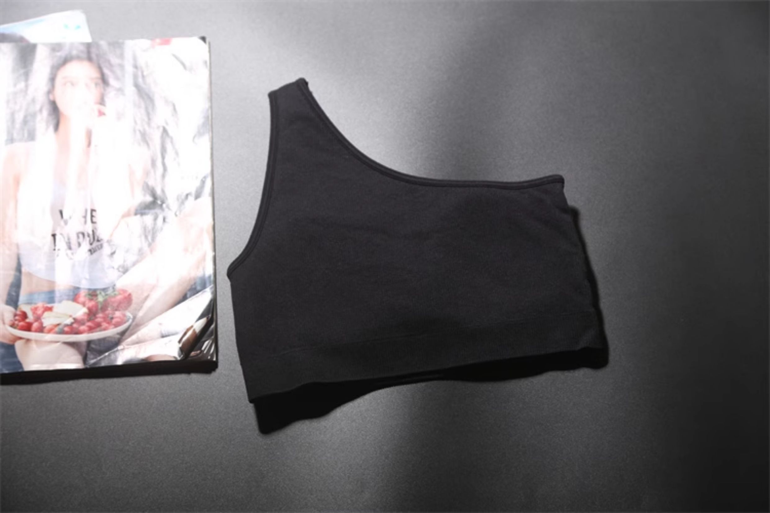 欧美牛货!单肩运动文胸女美背防震跑步聚拢斜肩背心健身瑜伽内衣