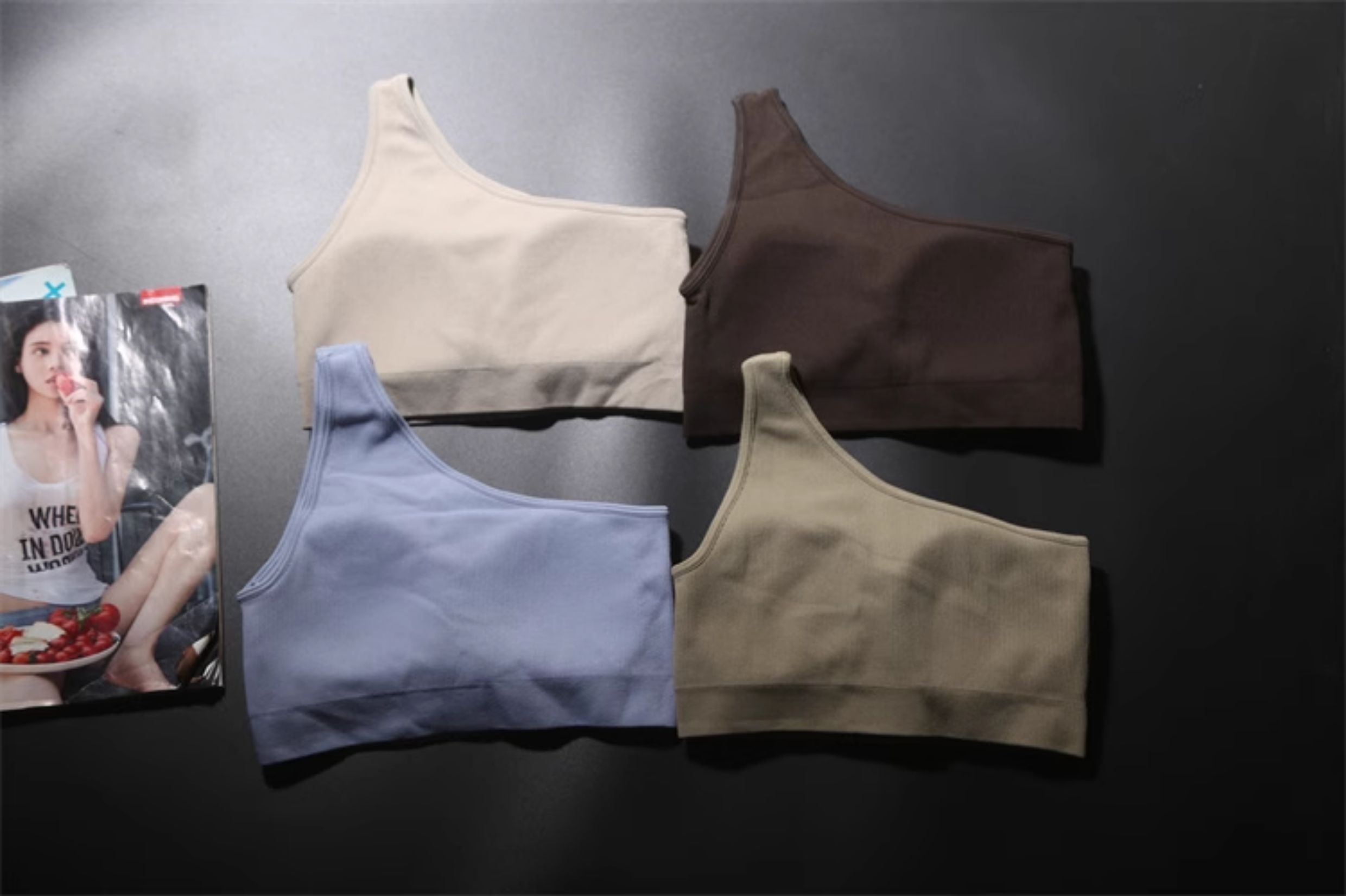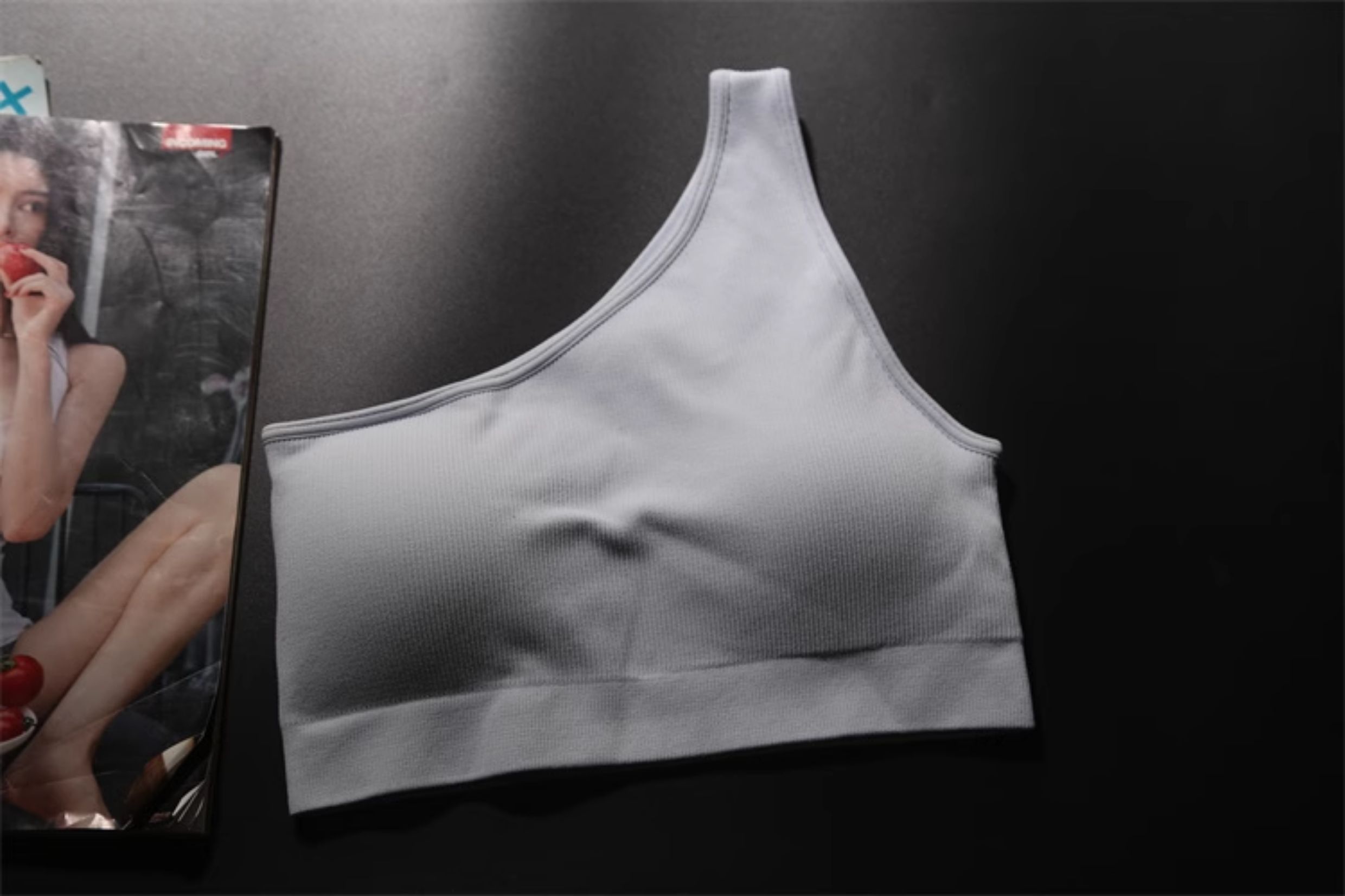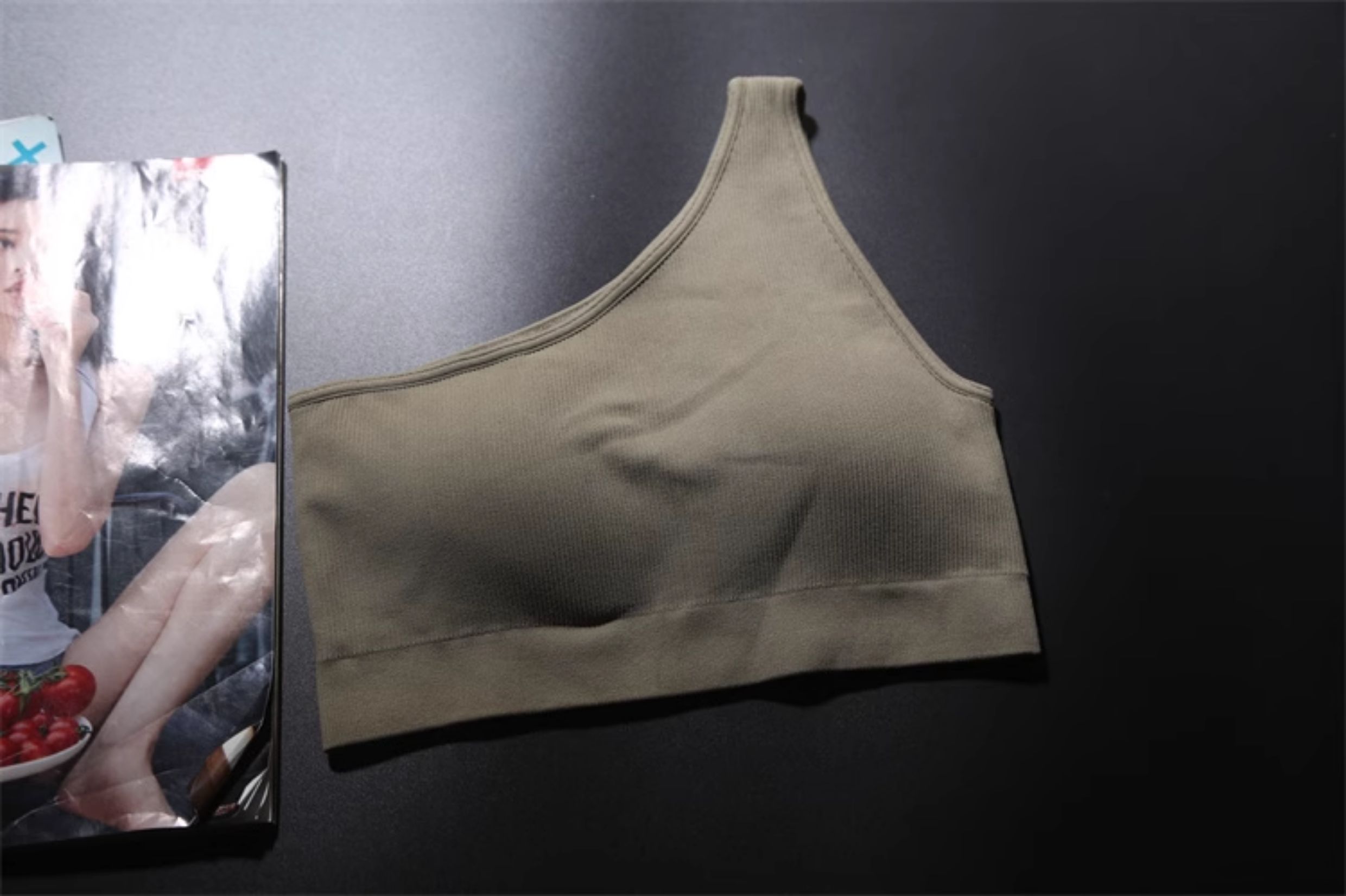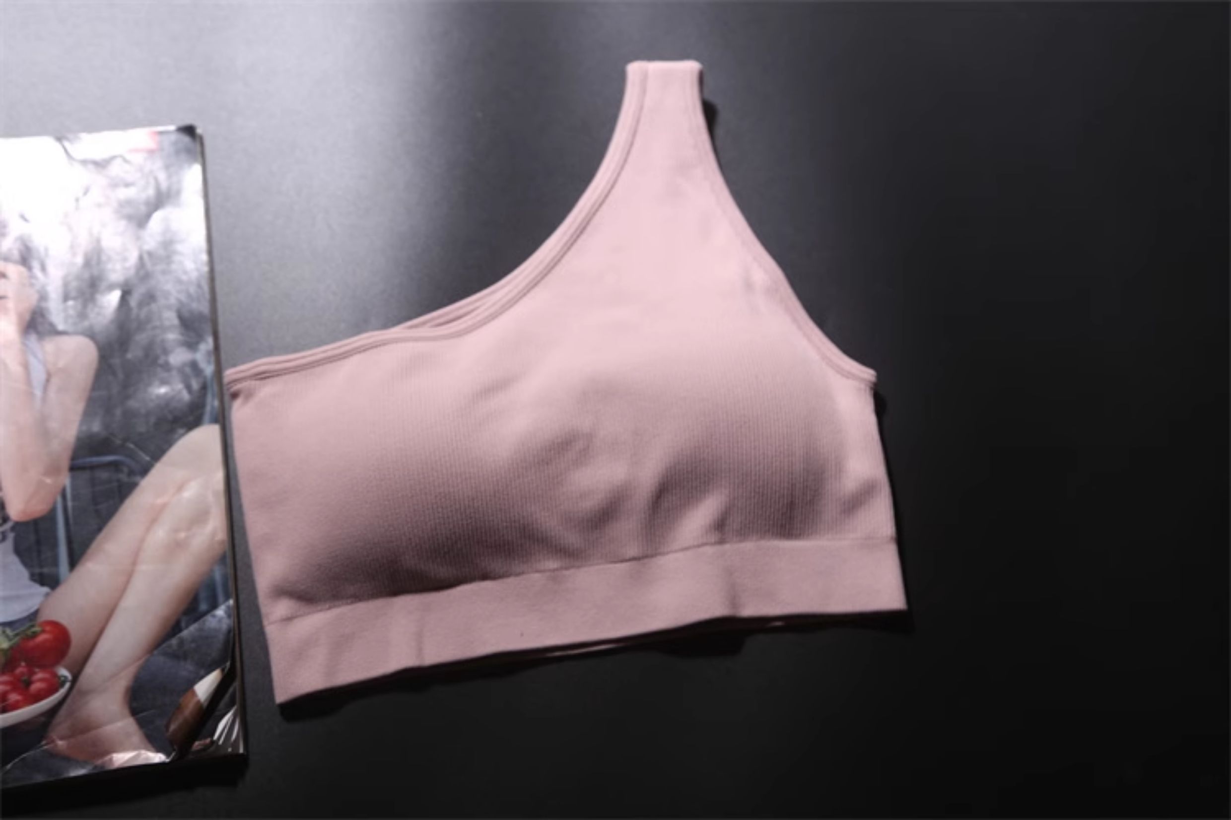 欧美牛货!单肩运动文胸女美背防震跑步聚拢斜肩背心健身瑜伽内衣