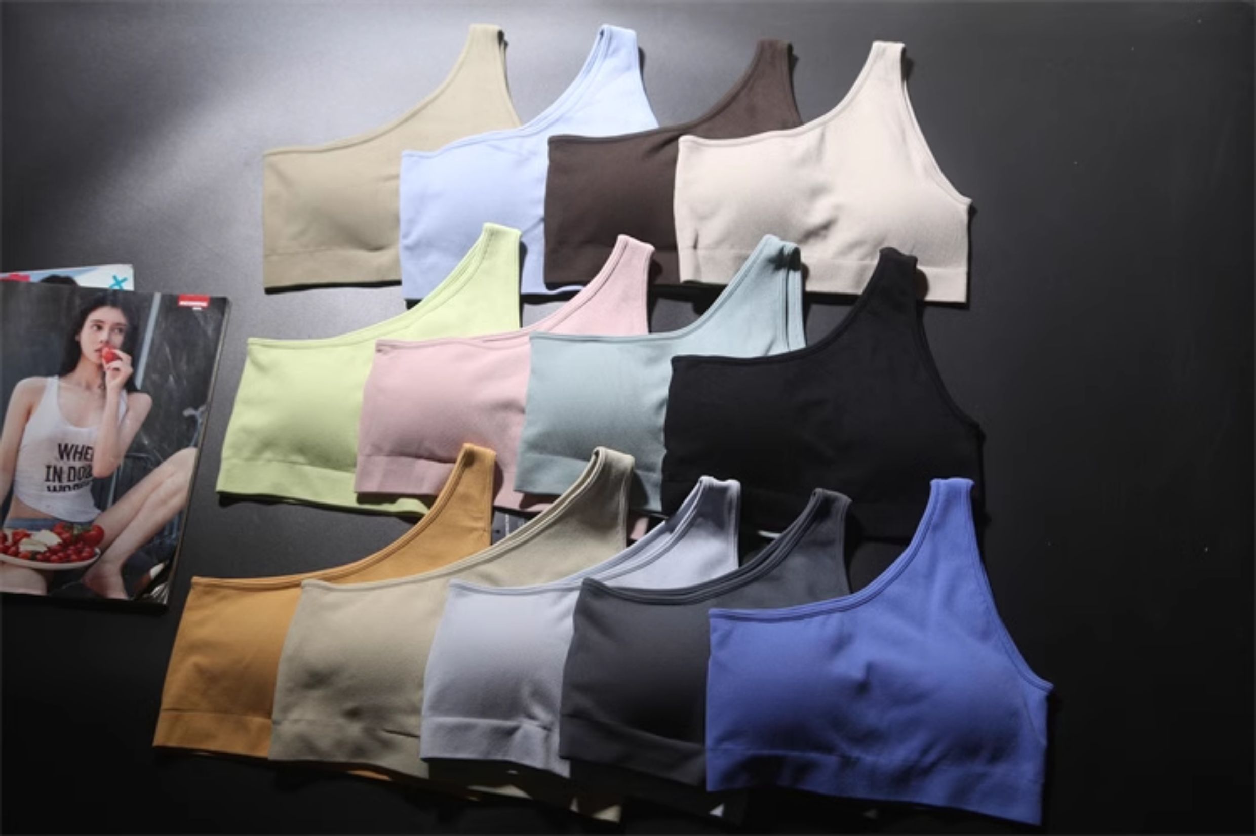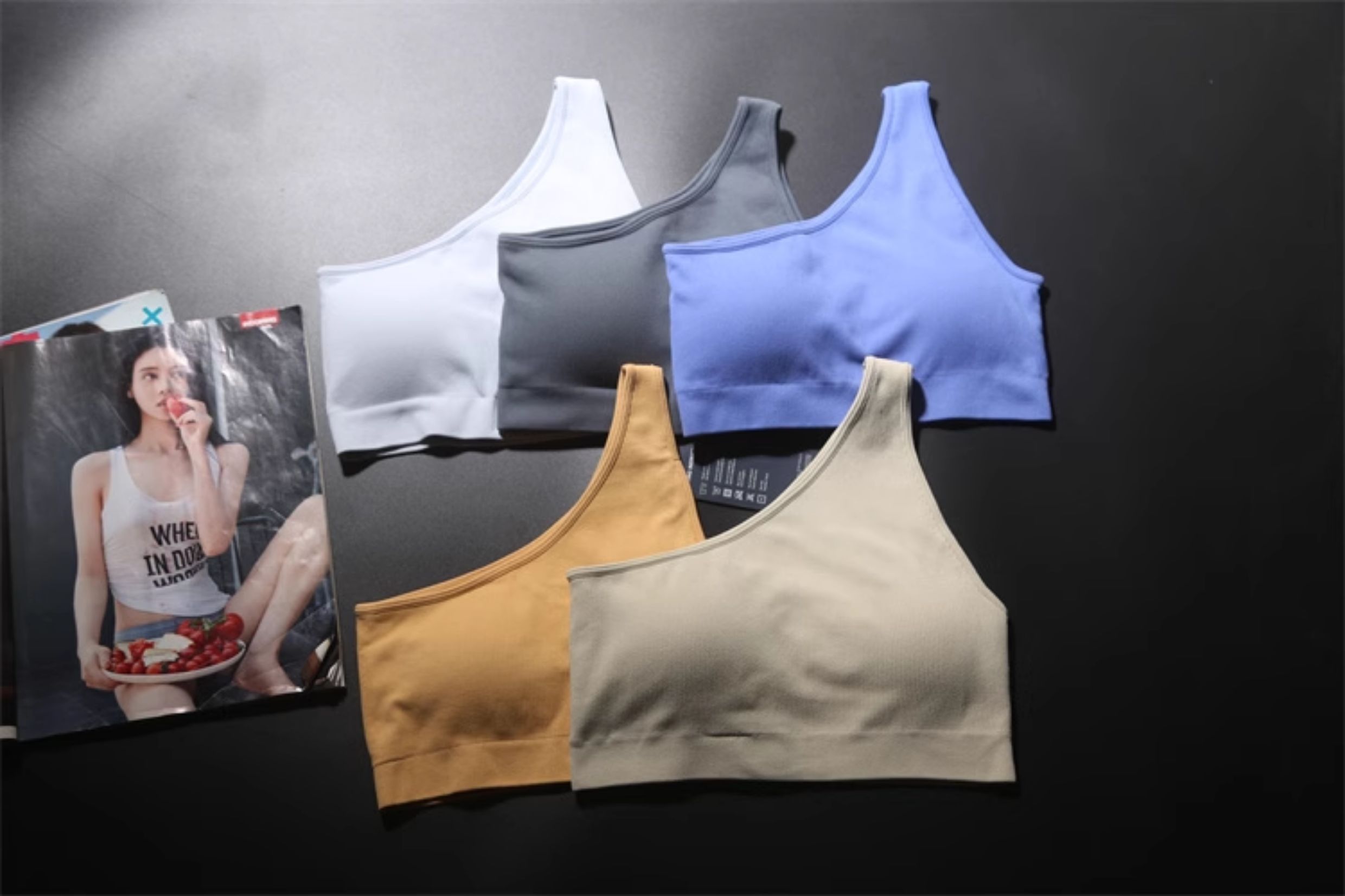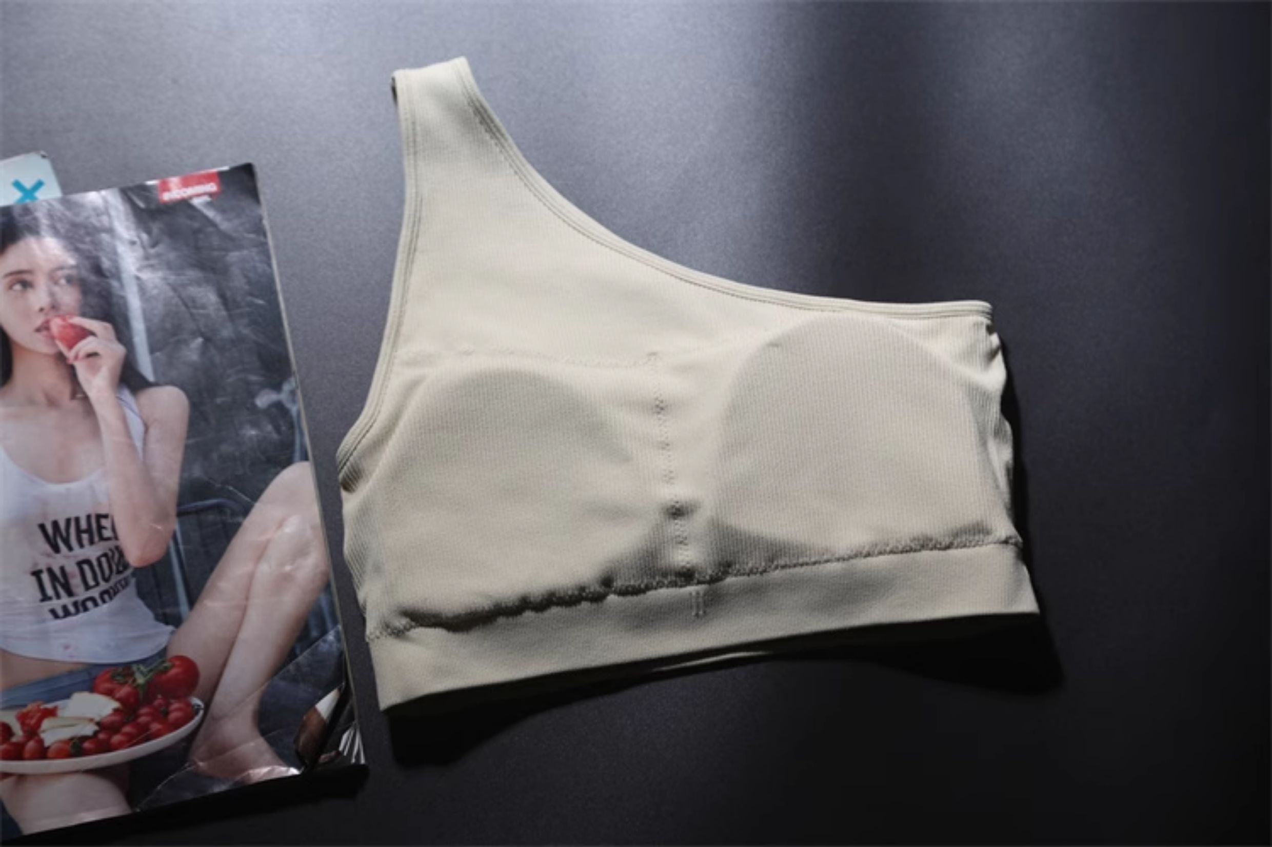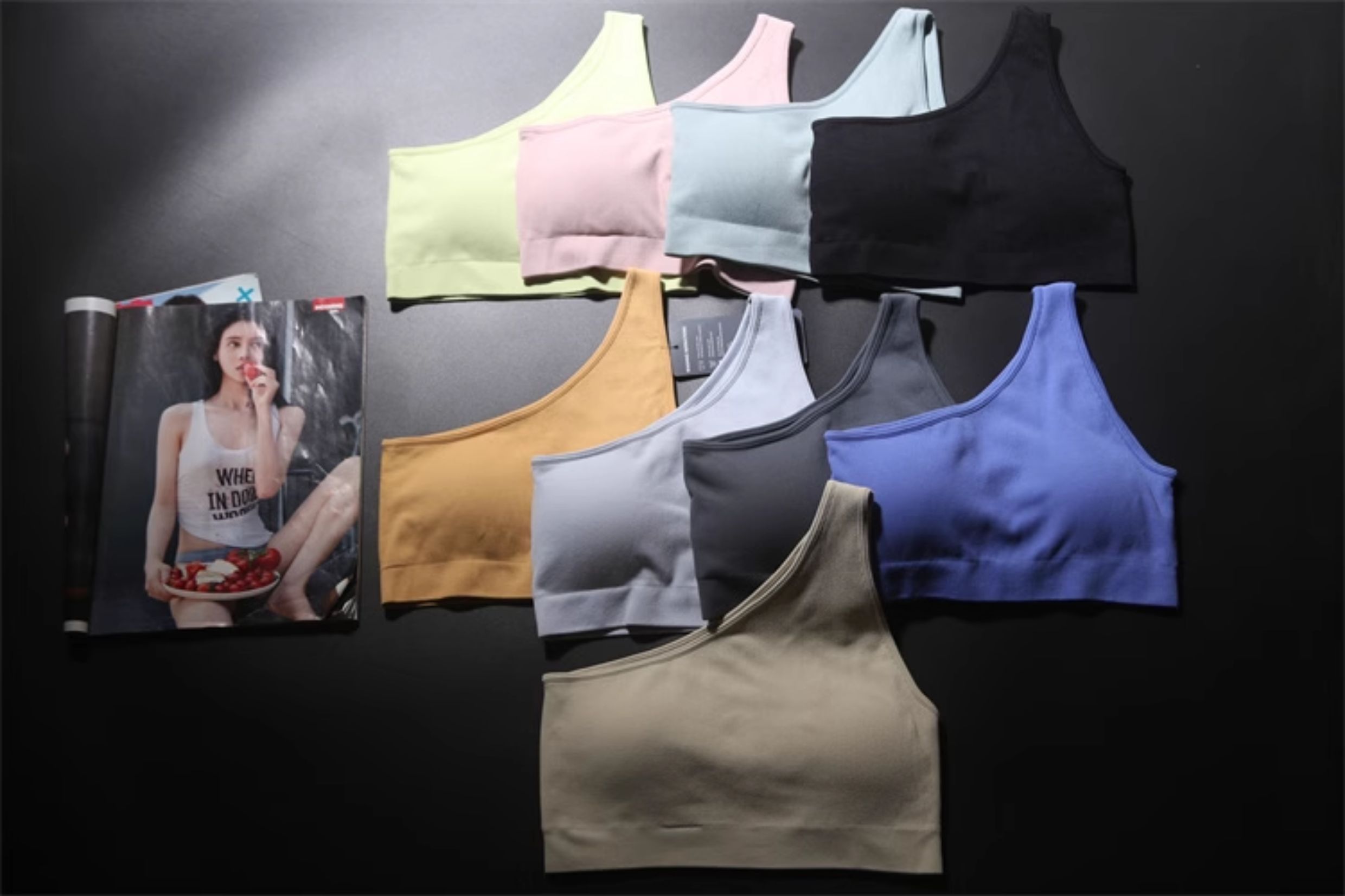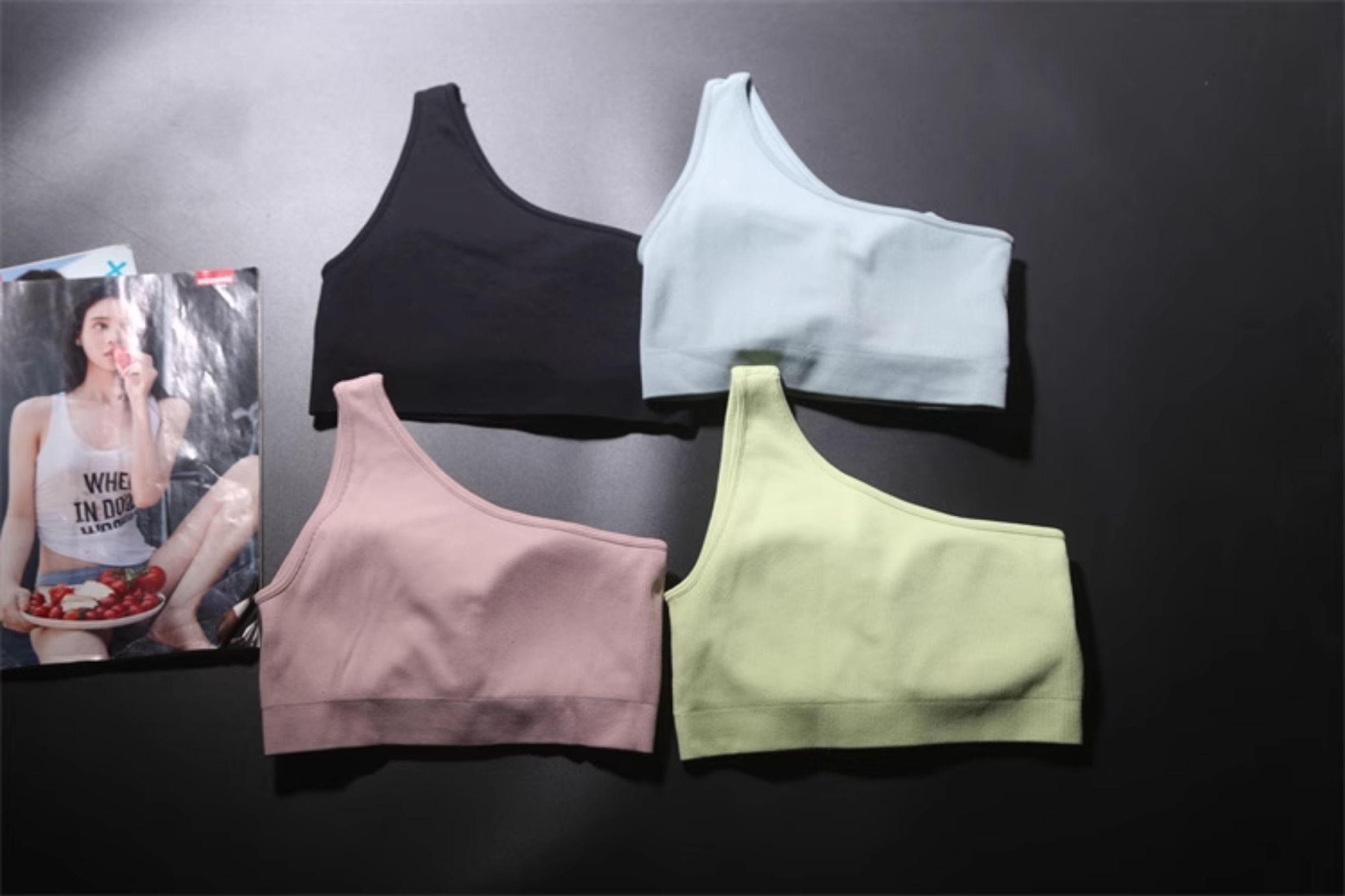 欧美牛货!单肩运动文胸女美背防震跑步聚拢斜肩背心健身瑜伽内衣