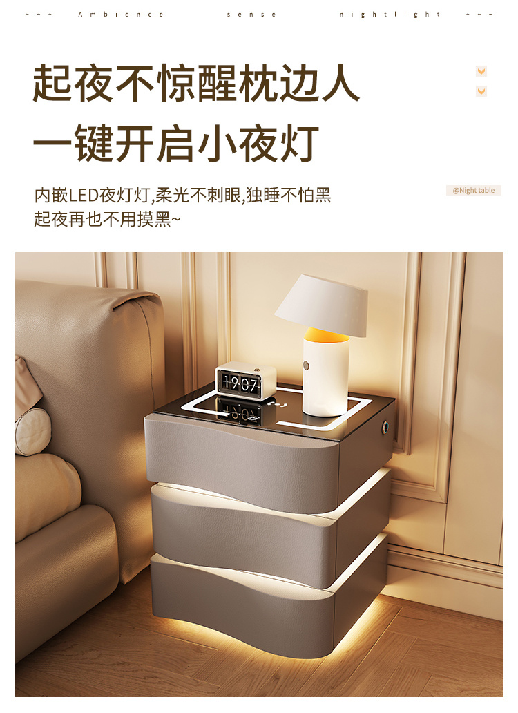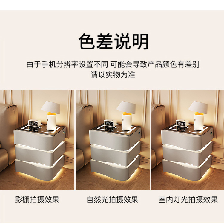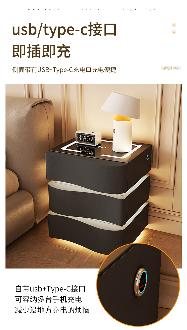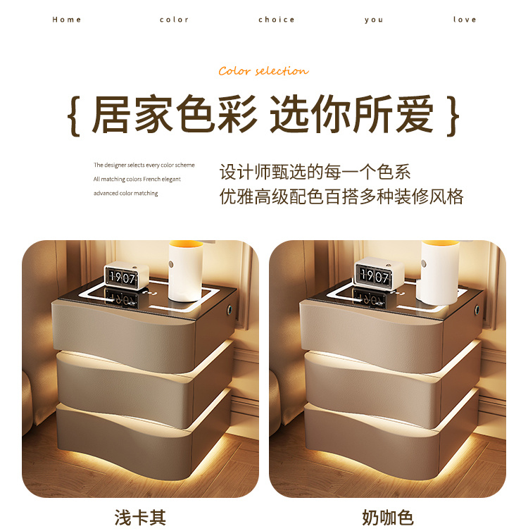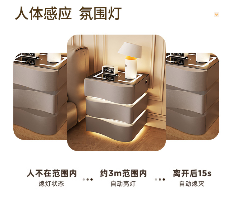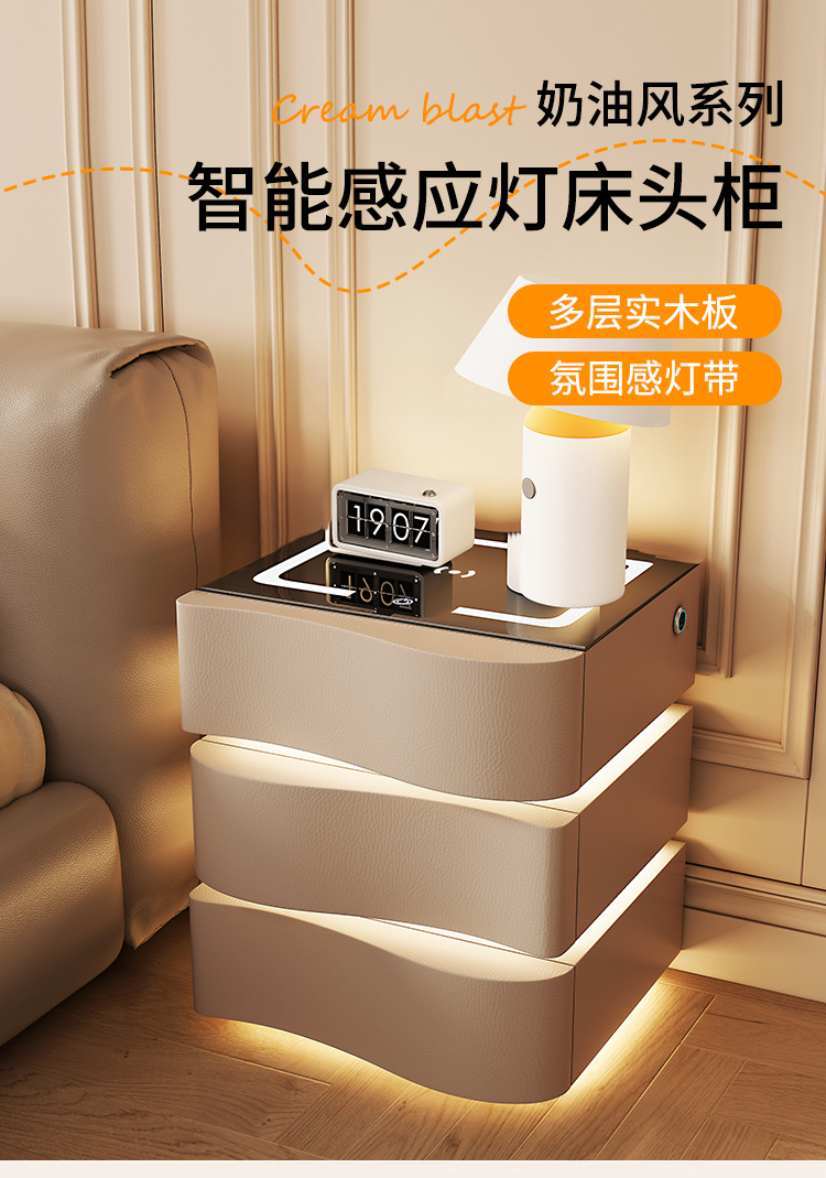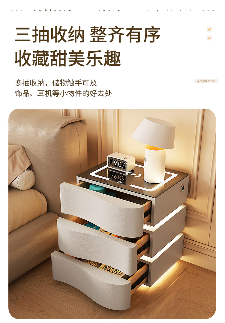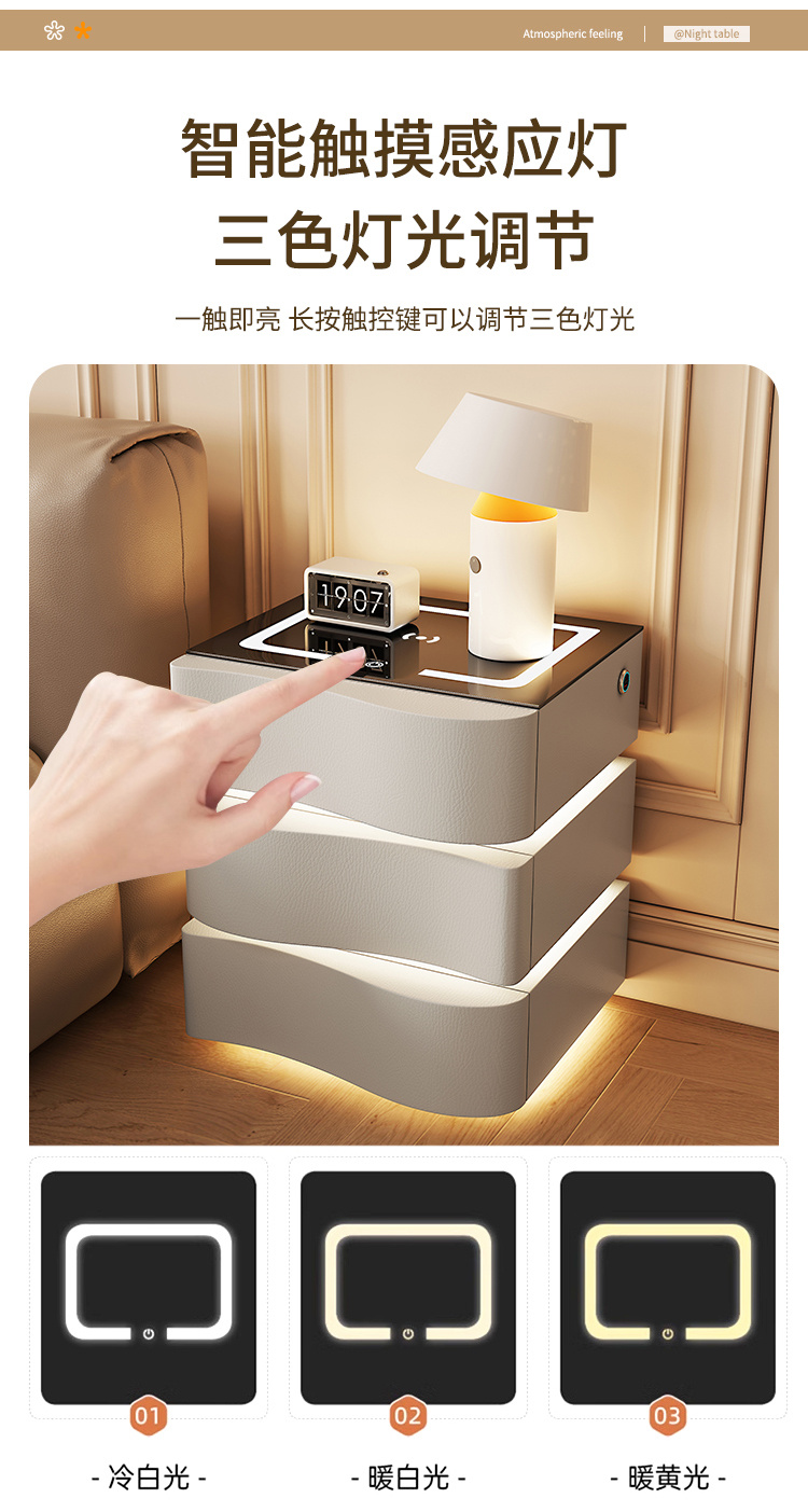 三抽智能床头柜创意家用简约现代多功能卧室带感应灯高级感床边柜