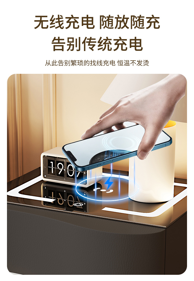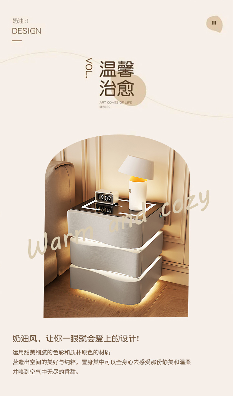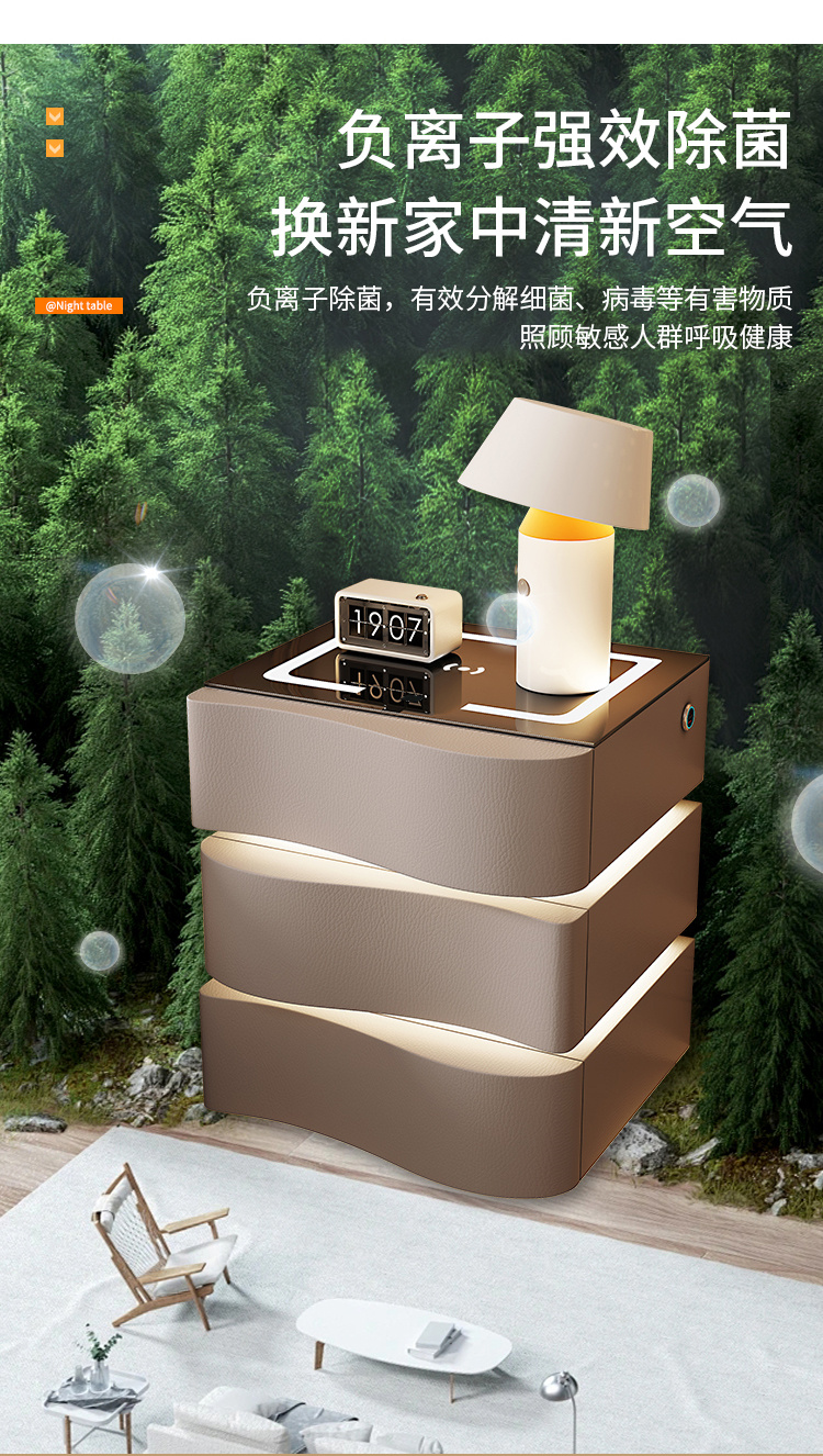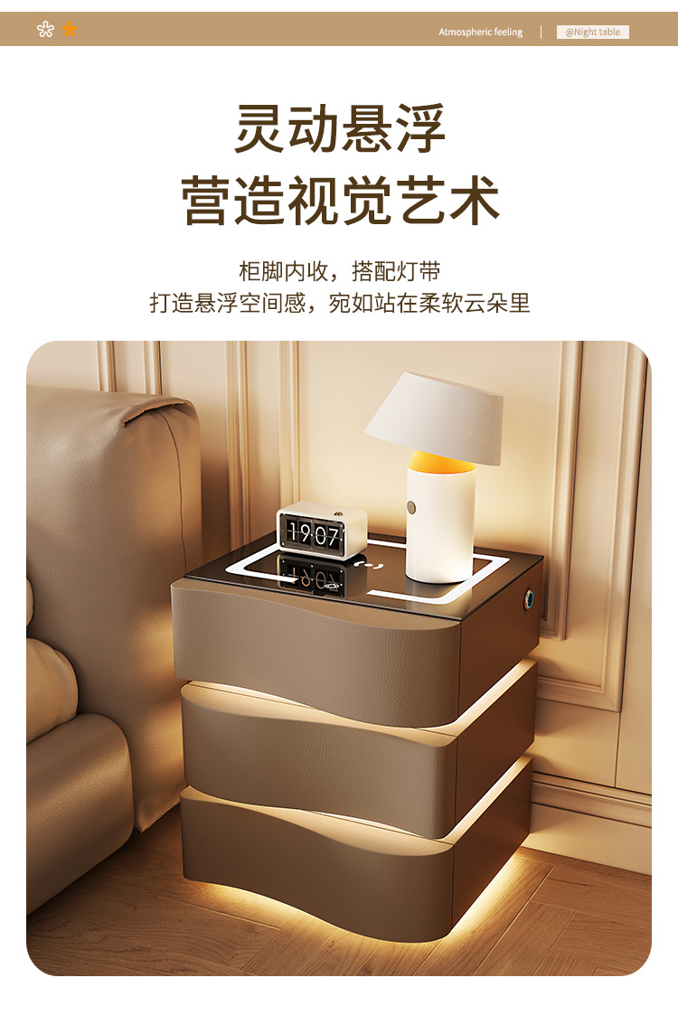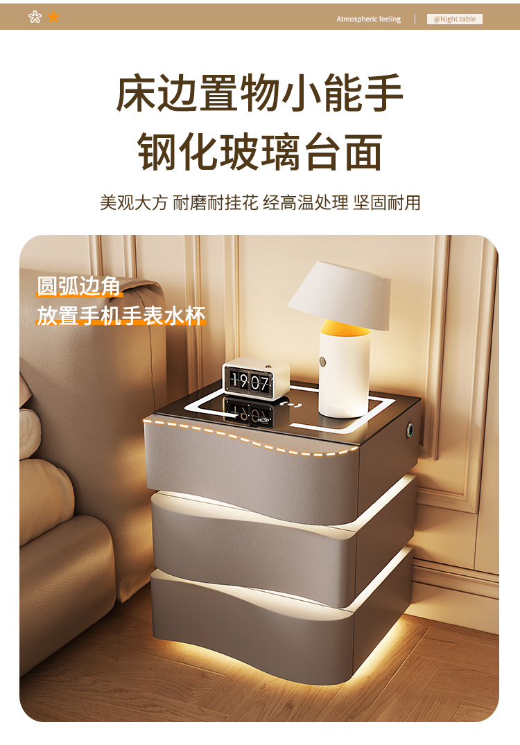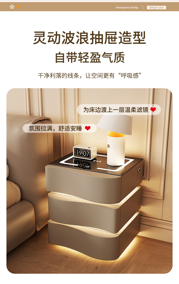 三抽智能床头柜创意家用简约现代多功能卧室带感应灯高级感床边柜
