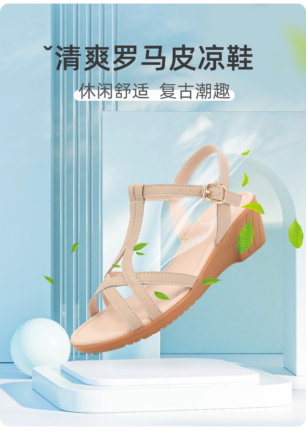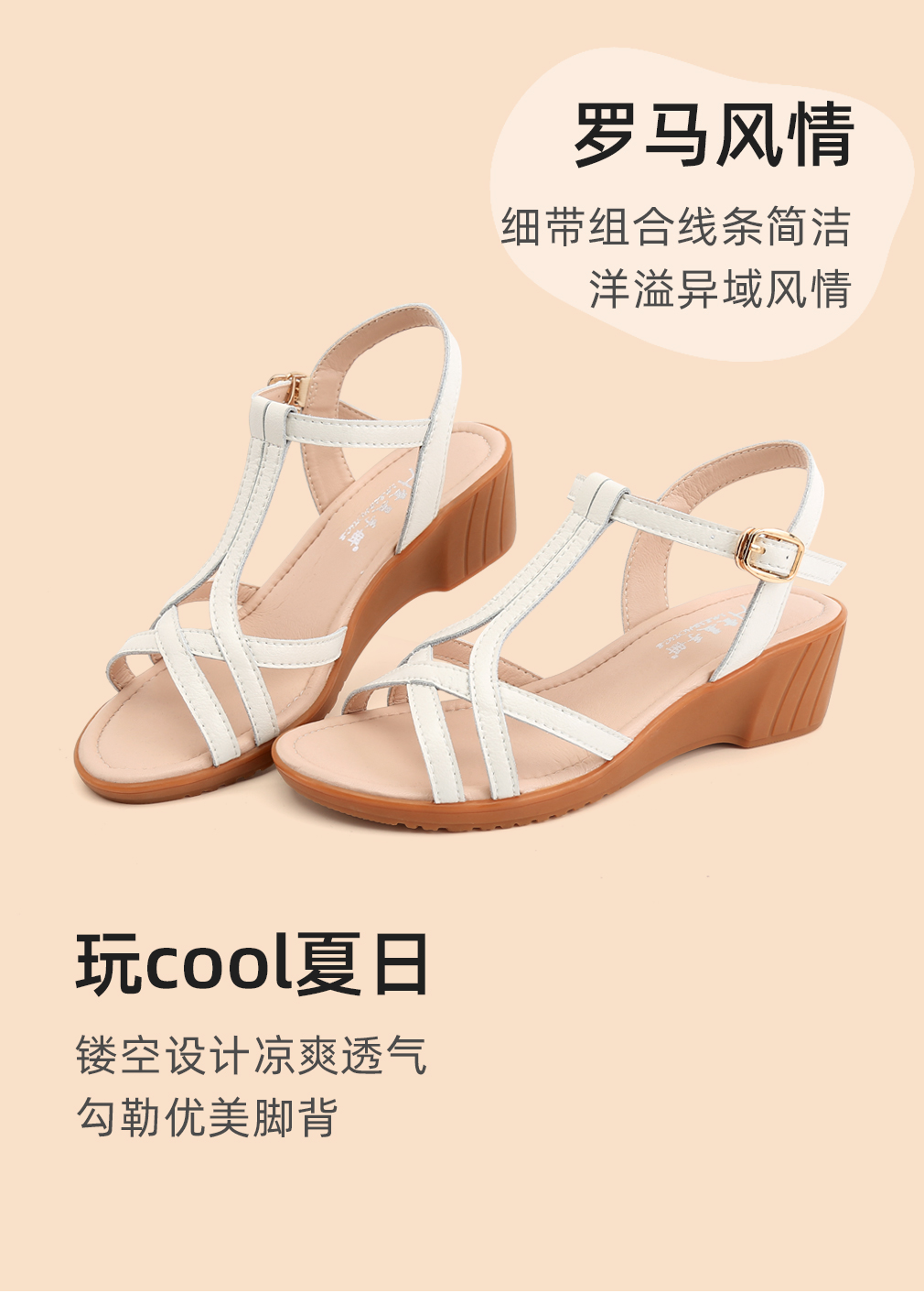 时装妈妈鞋凉鞋女款2025新款坡跟软底女式凉皮鞋单鞋夏季女鞋大码