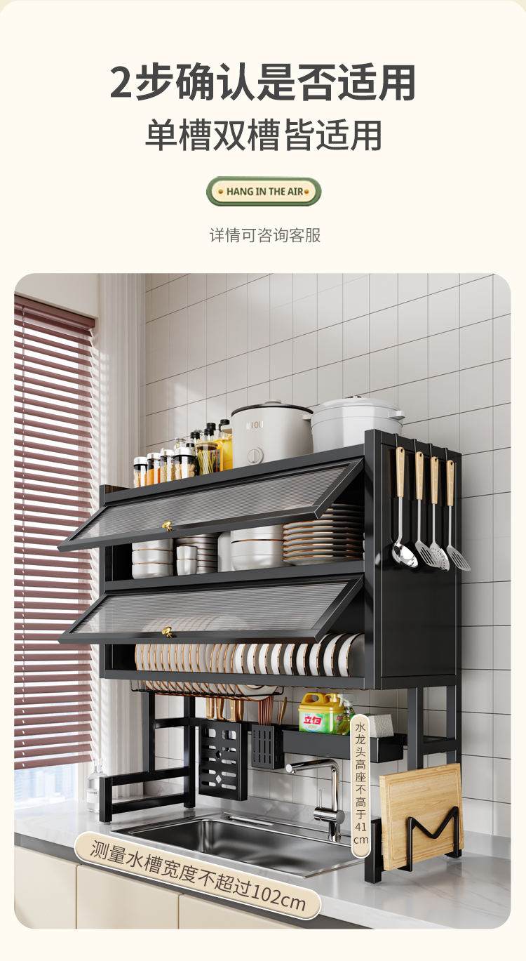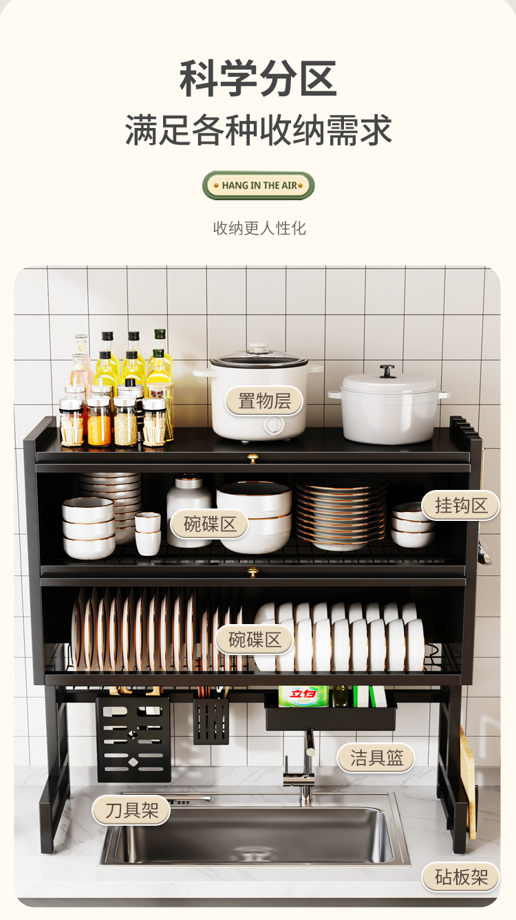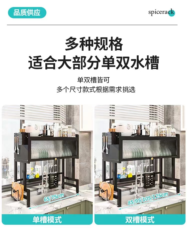 厨房水槽置物架洗碗槽台面防尘碗柜收纳多功能餐具储物沥水架双层