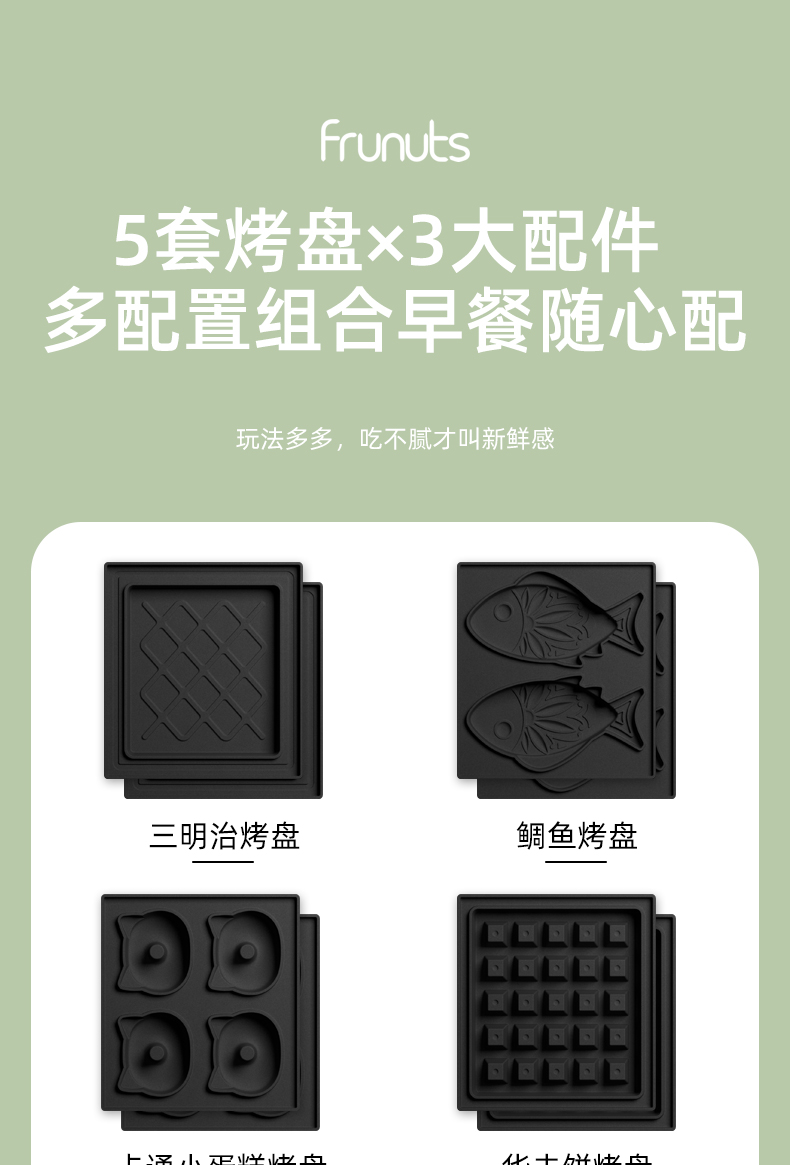 frunuts三明治早餐机多功能轻食机家用小型华夫饼机烤吐司面包机