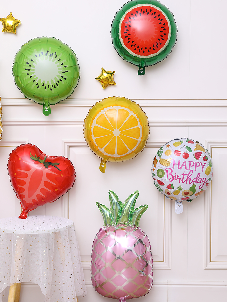 水果气球铝膜卡通菠萝草莓18寸派对装饰宝宝生日布置儿童气球装饰