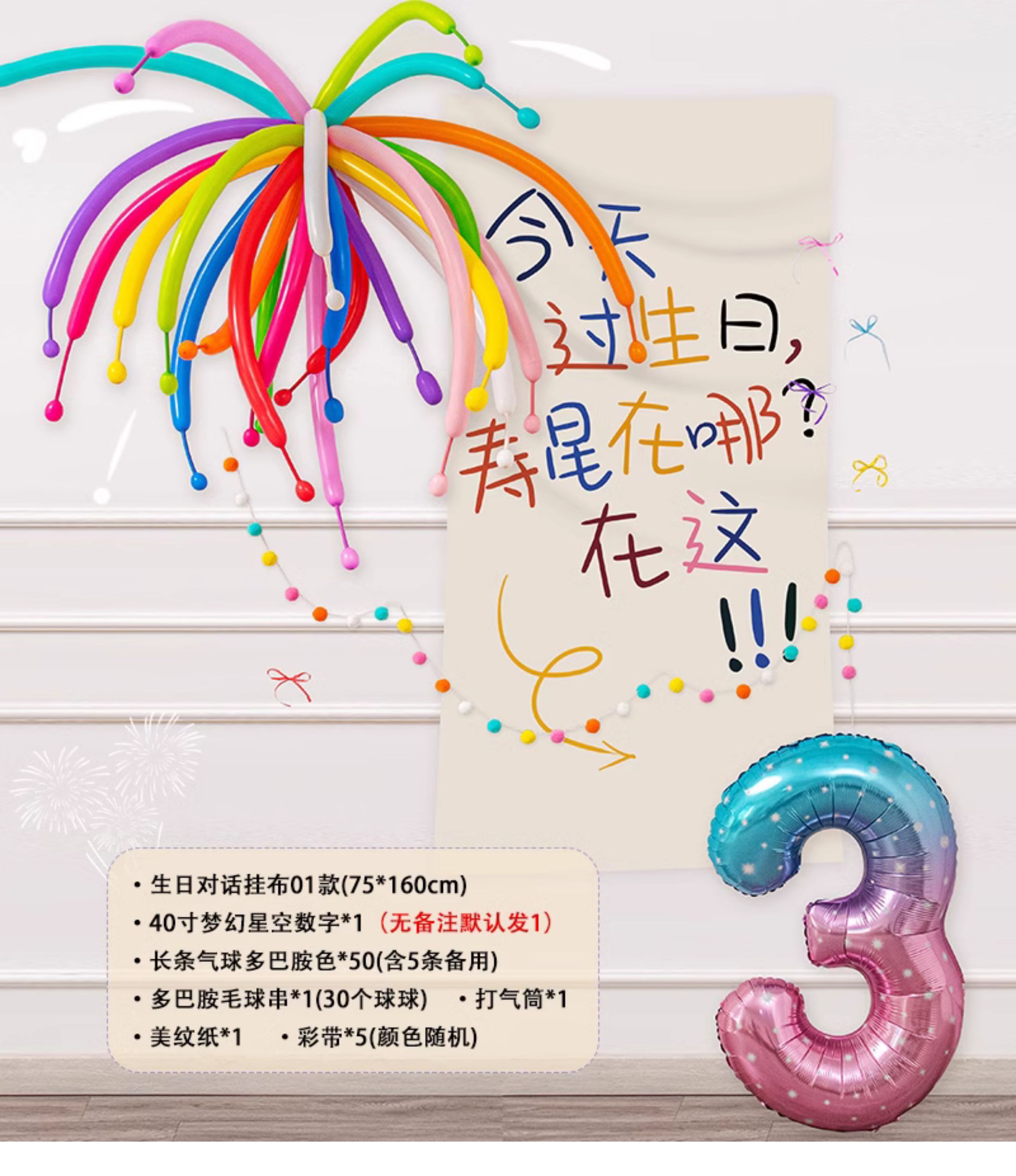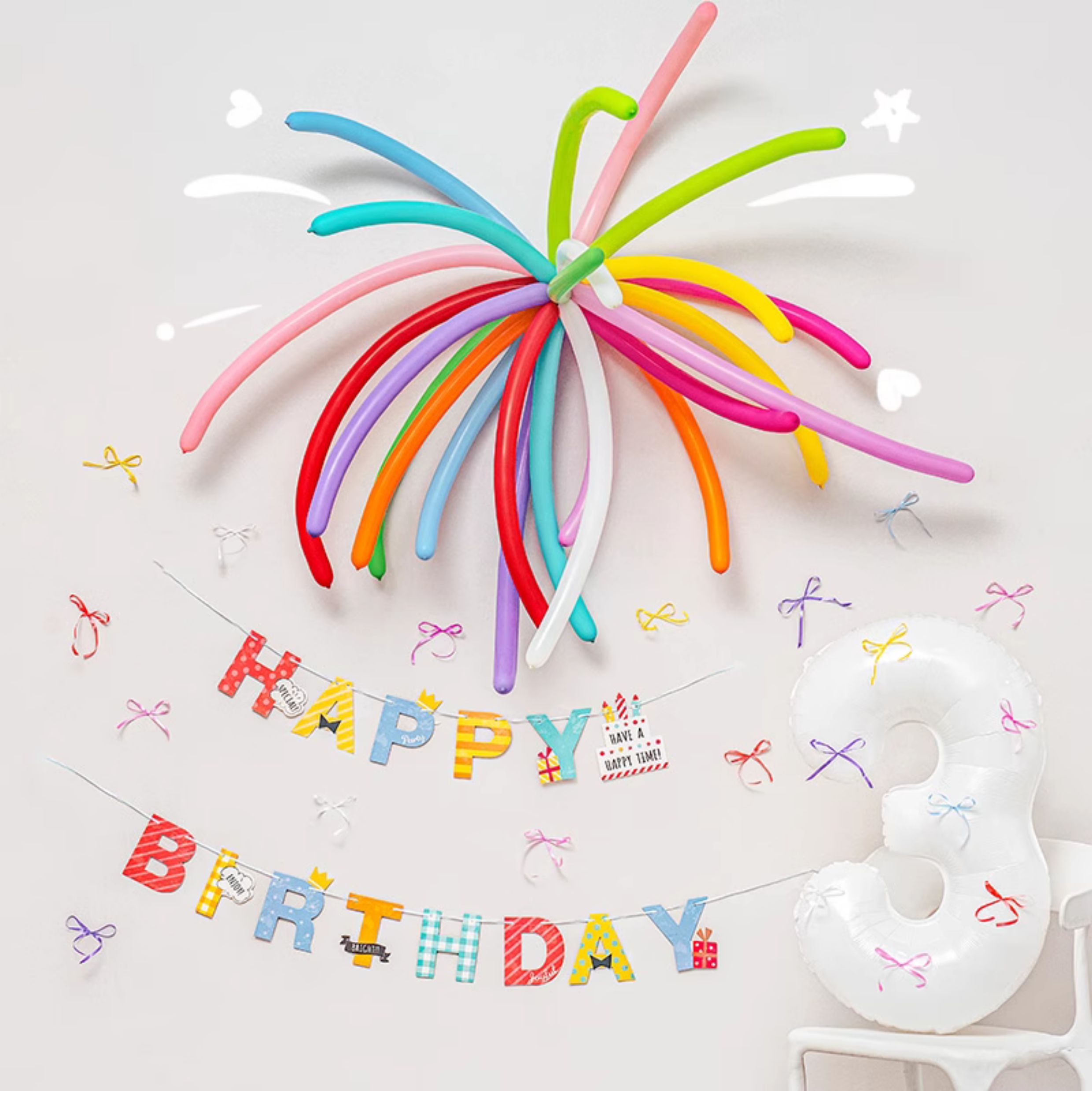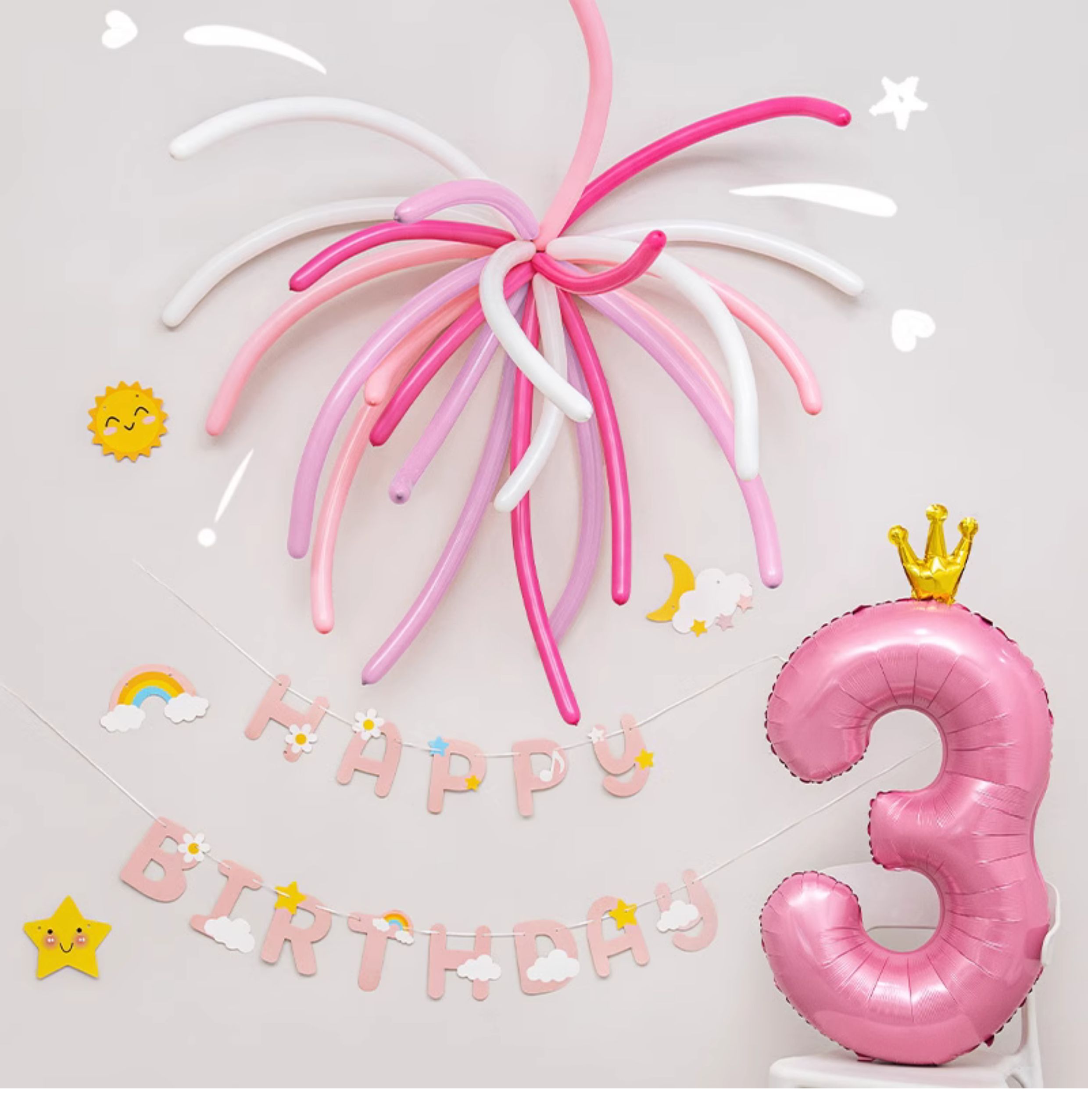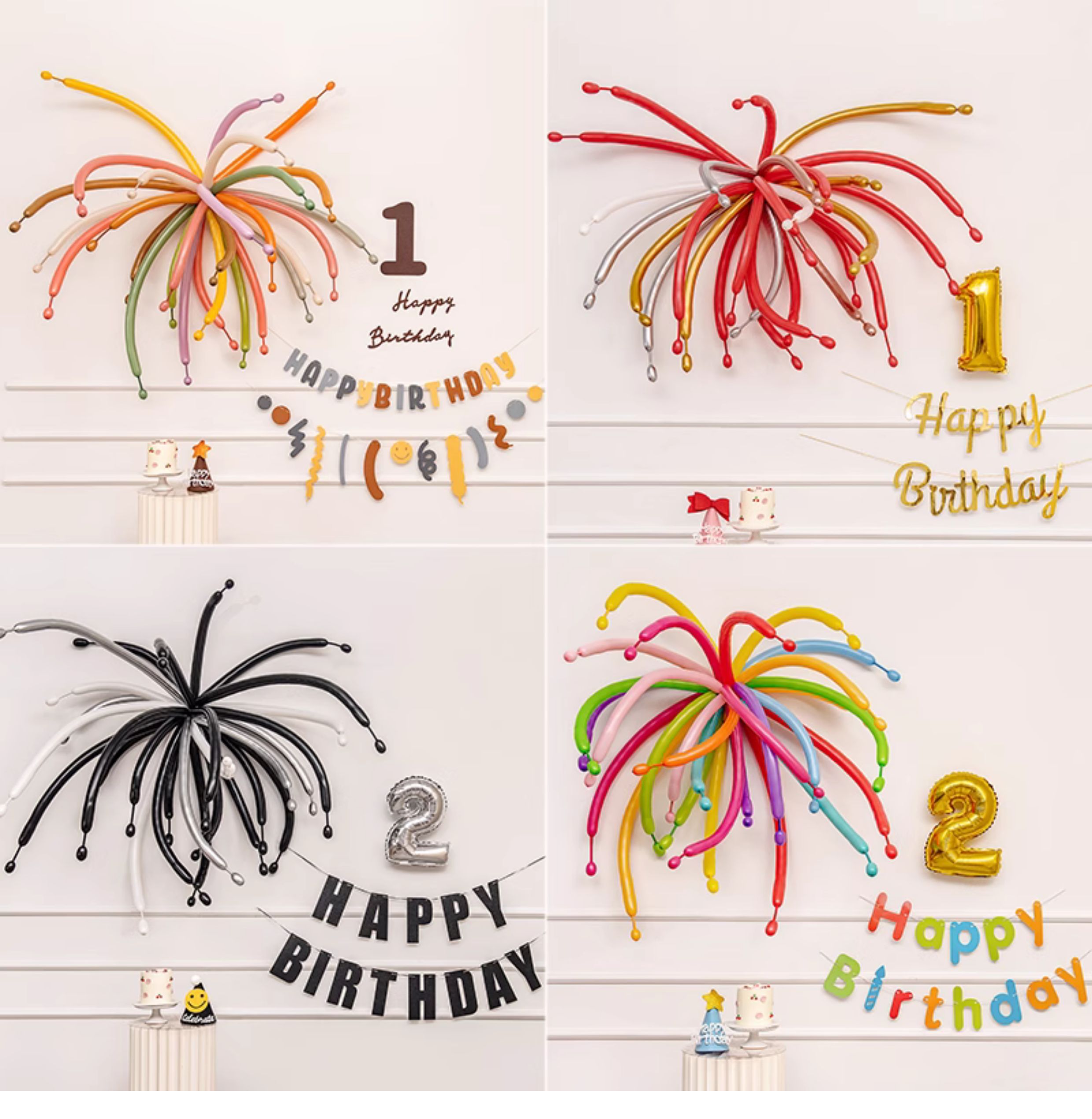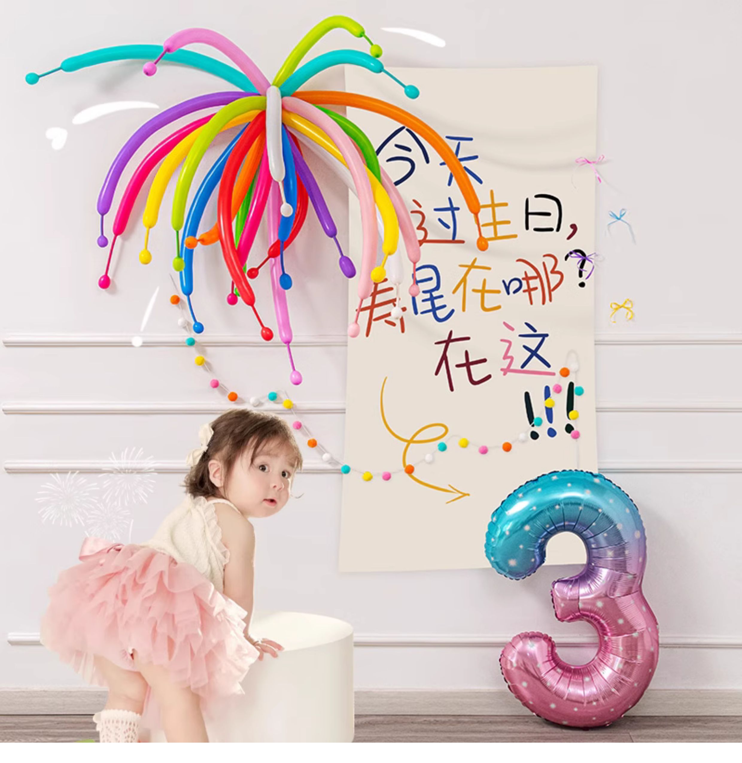 烟花长条气球生日派对挂布条幅创意儿童男女孩装饰布置多巴胺彩色