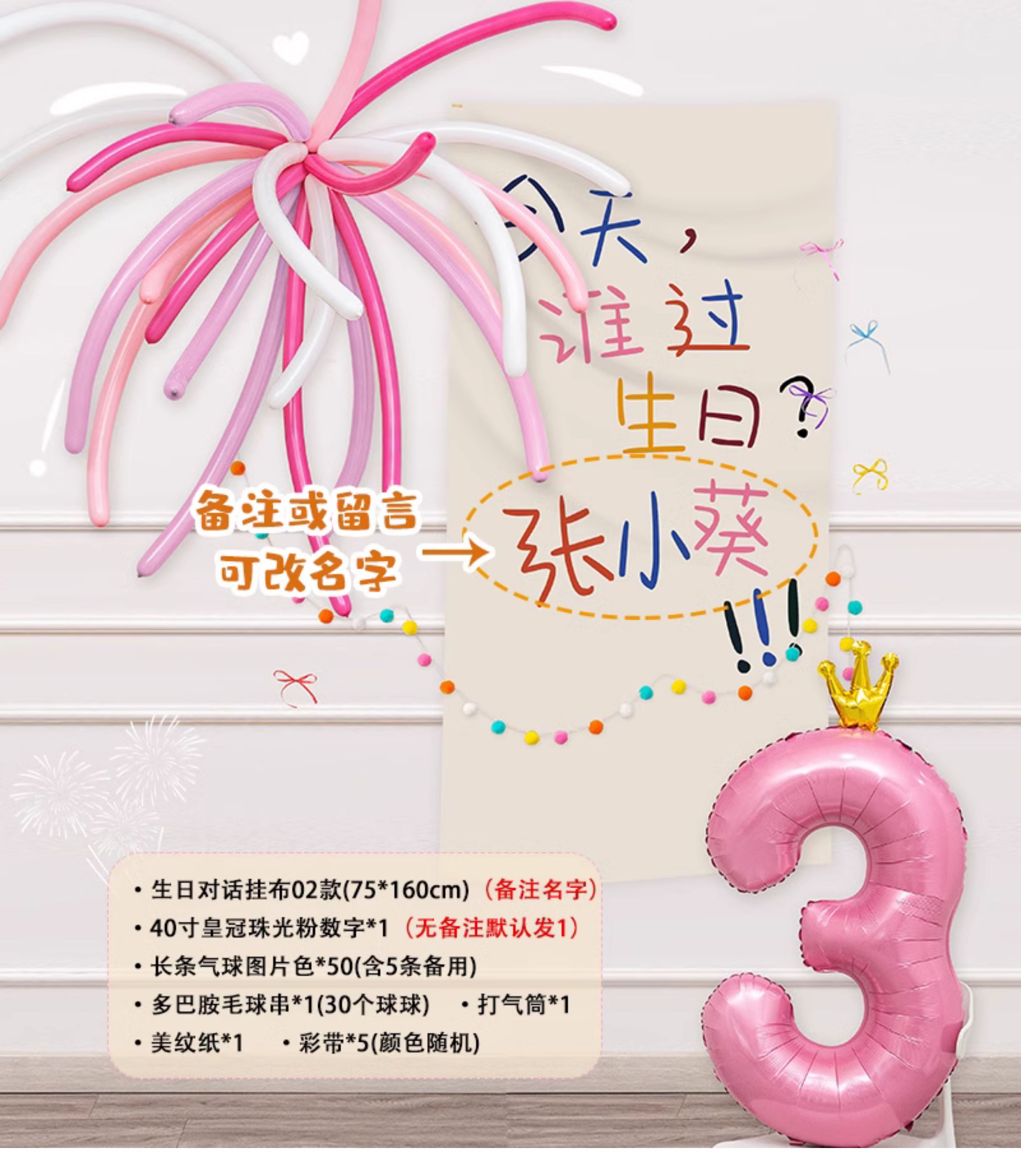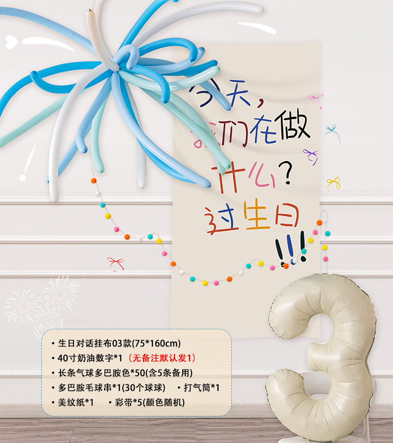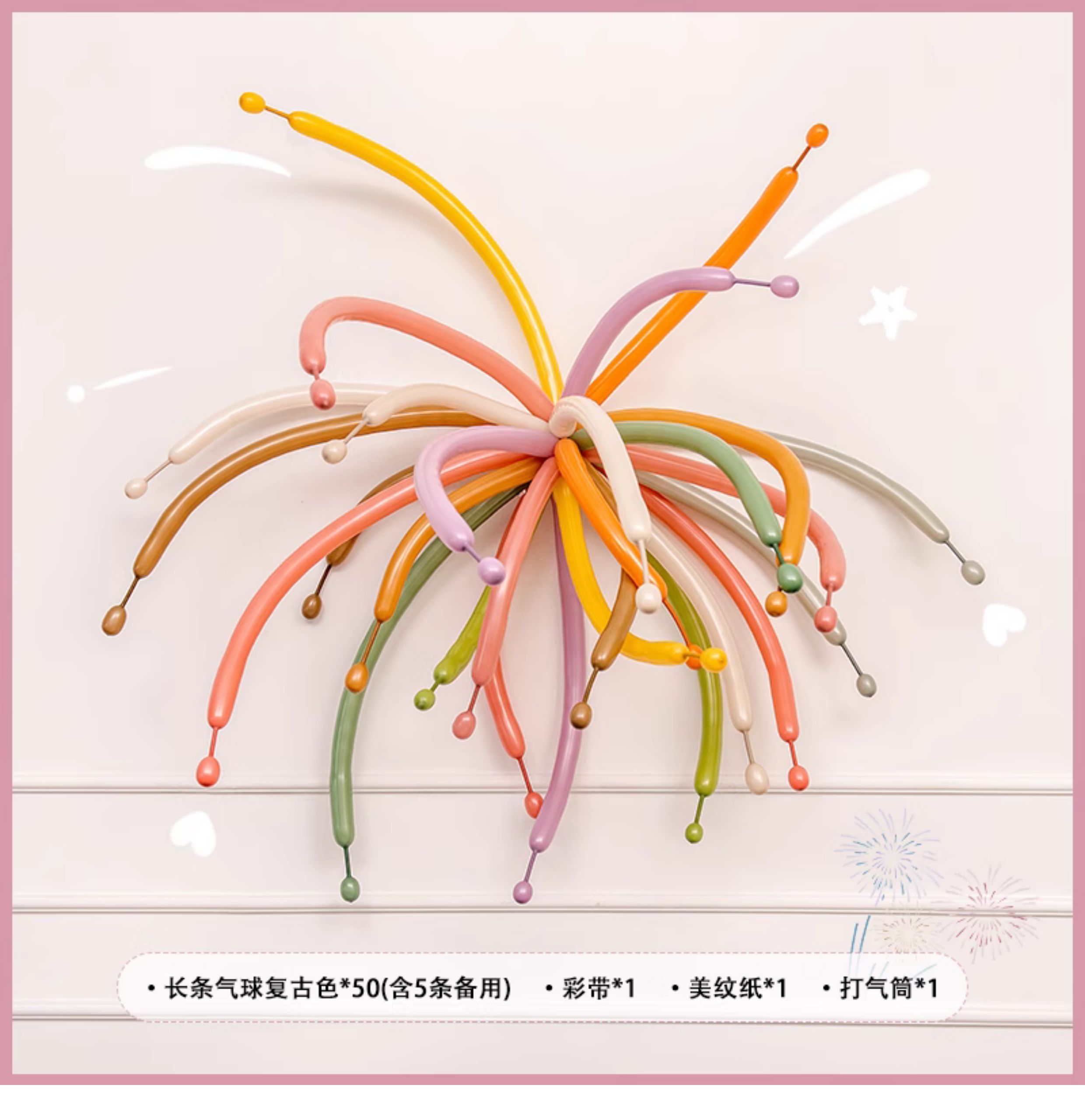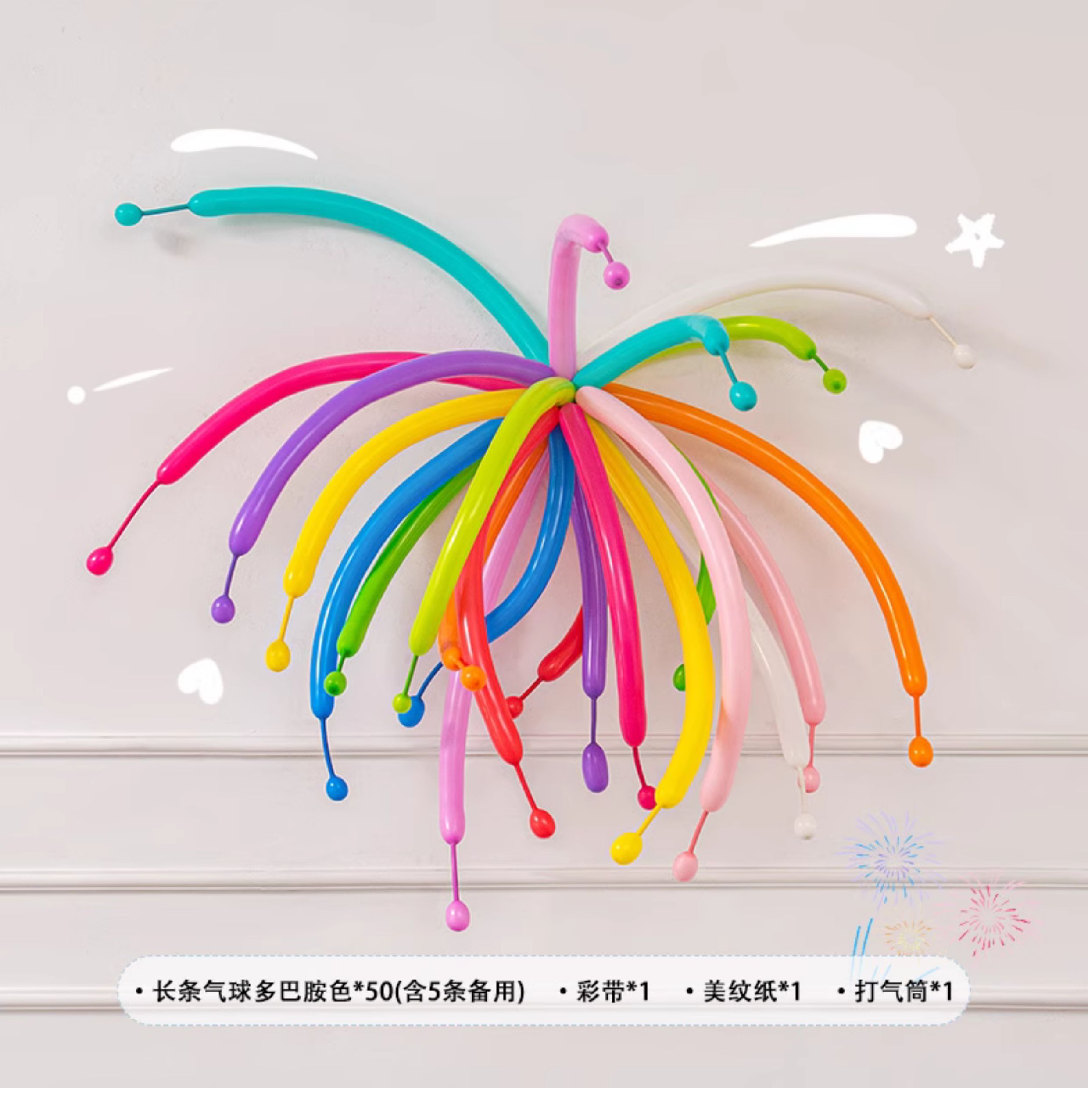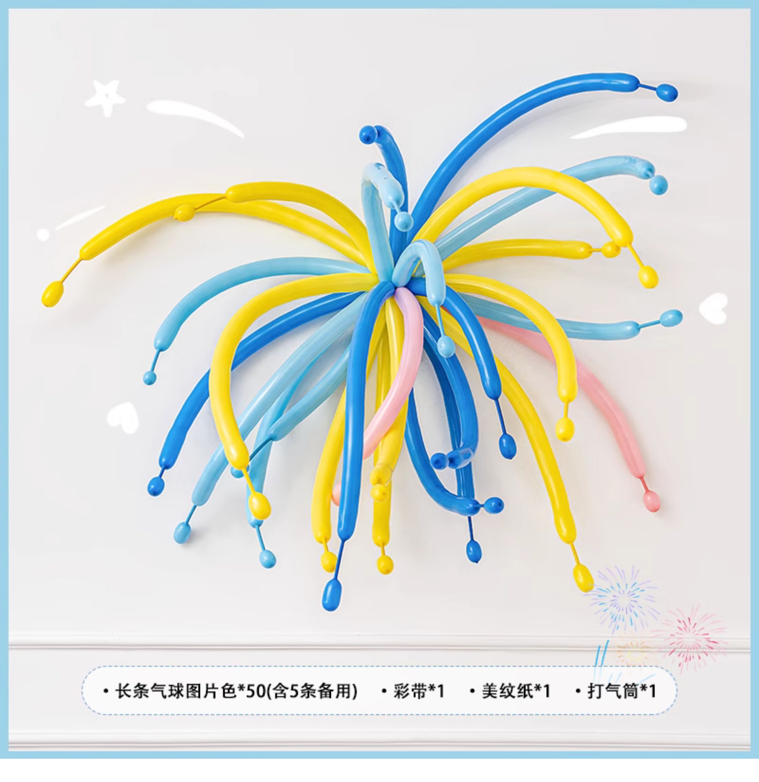 烟花长条气球生日派对挂布条幅创意儿童男女孩装饰布置多巴胺彩色