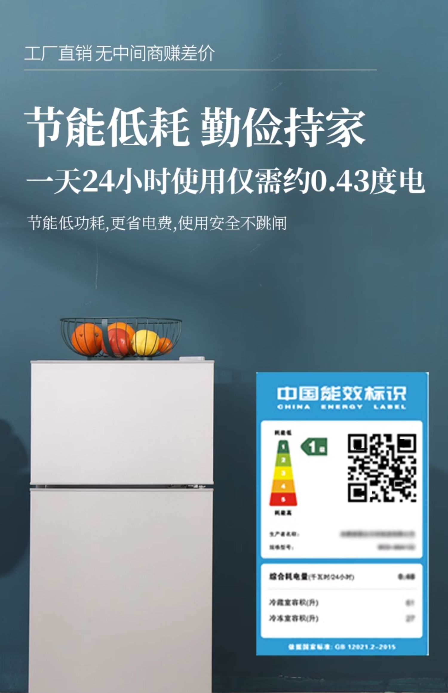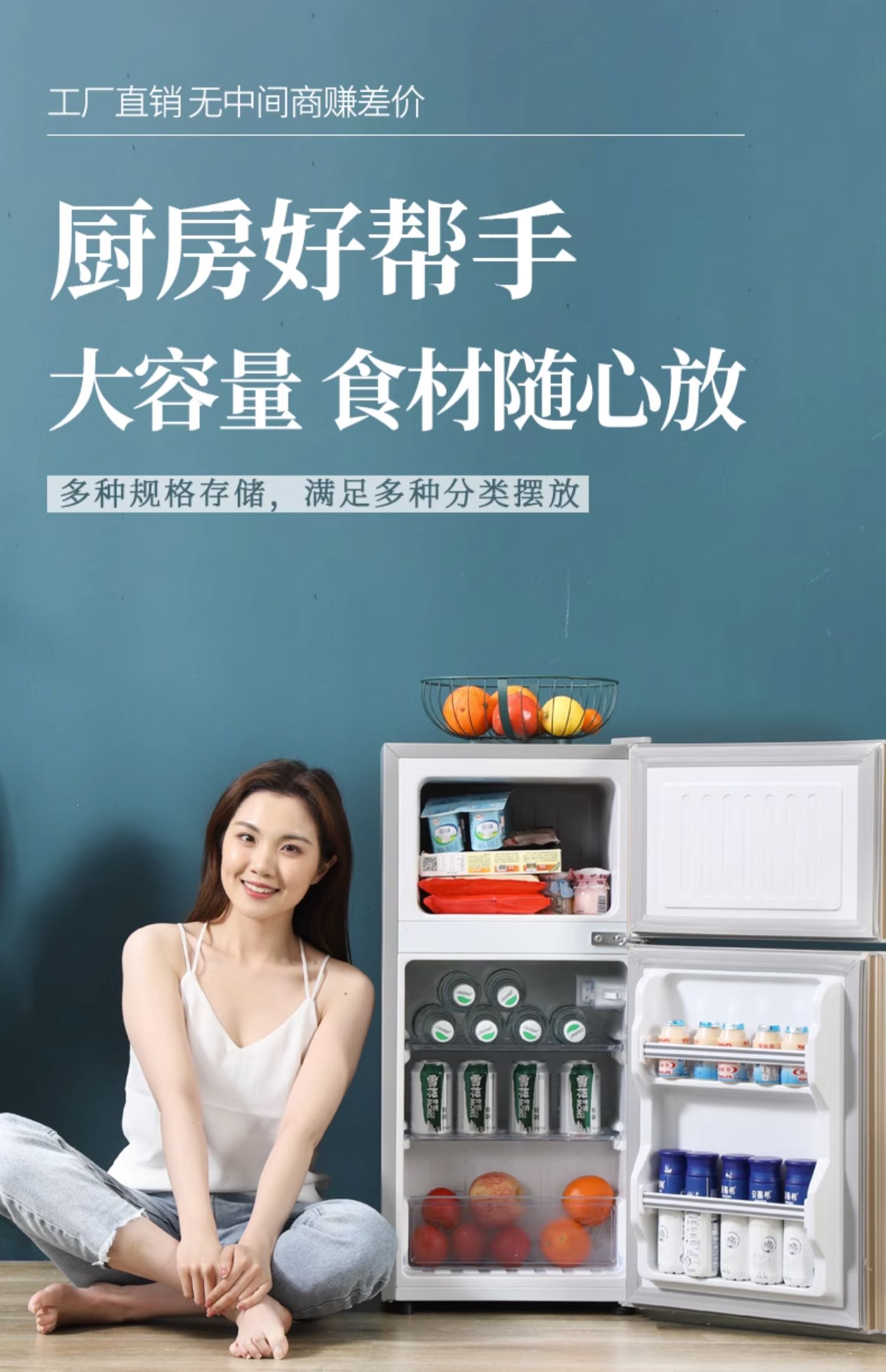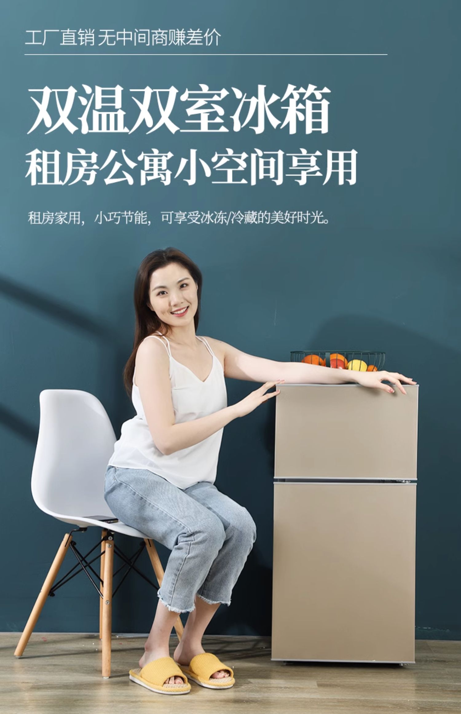 小冰箱小型家用宿舍出租房迷你双开门电冰箱一级能效节能冷冻冷藏