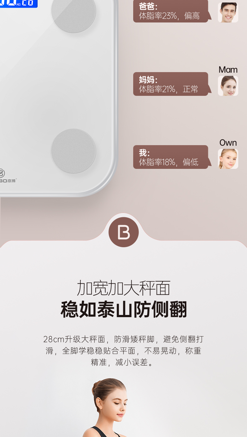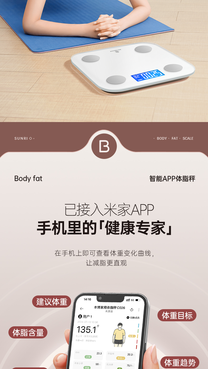 本博体重秤体脂秤家用精准充电体重称智能电子秤减肥专用的人体秤