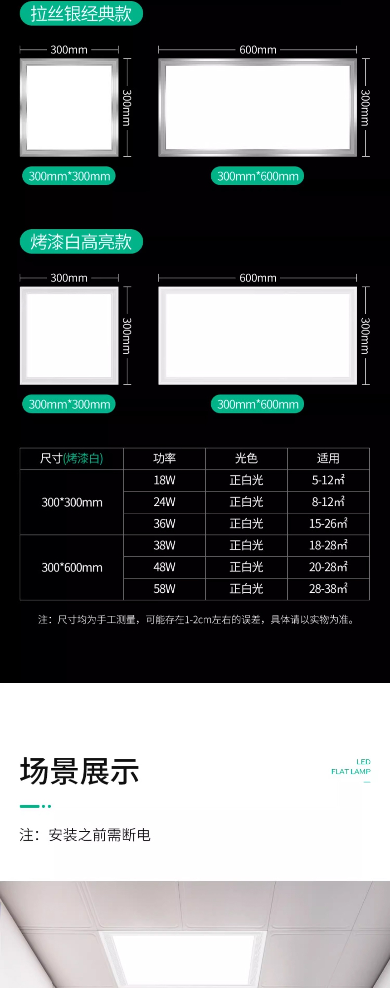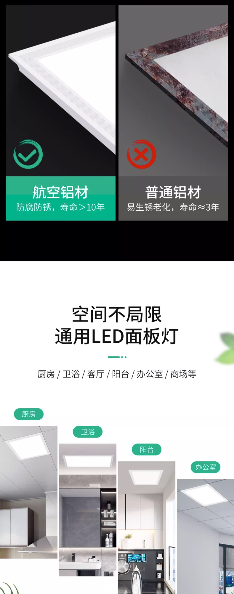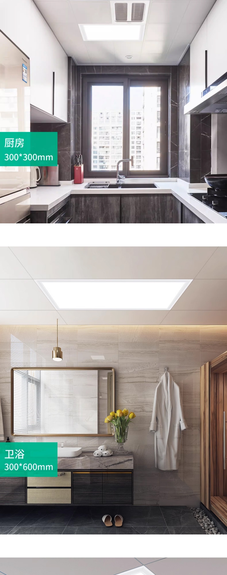 卫生间浴室集成吊顶led灯嵌入式厨房天花平板灯铝扣板厨卫吸顶灯