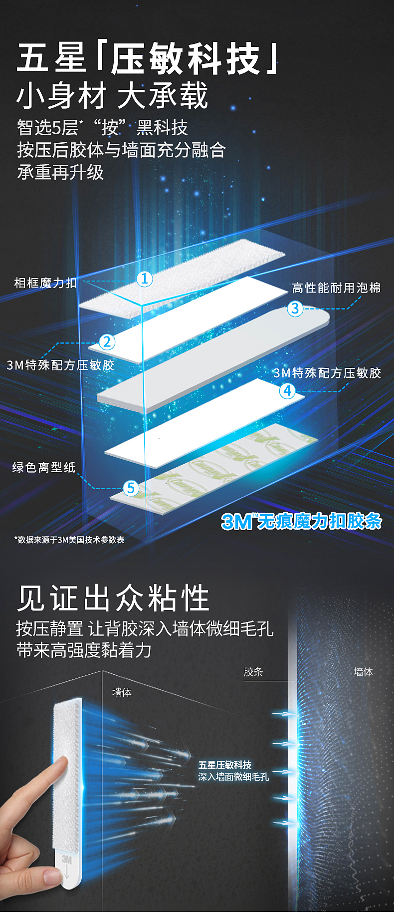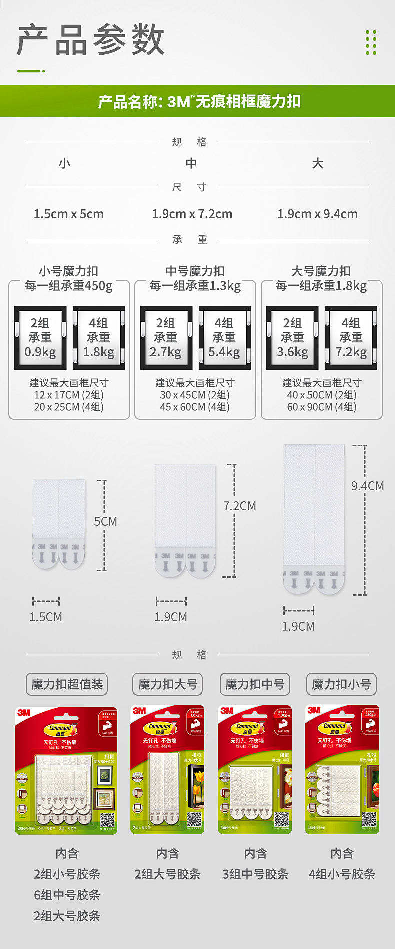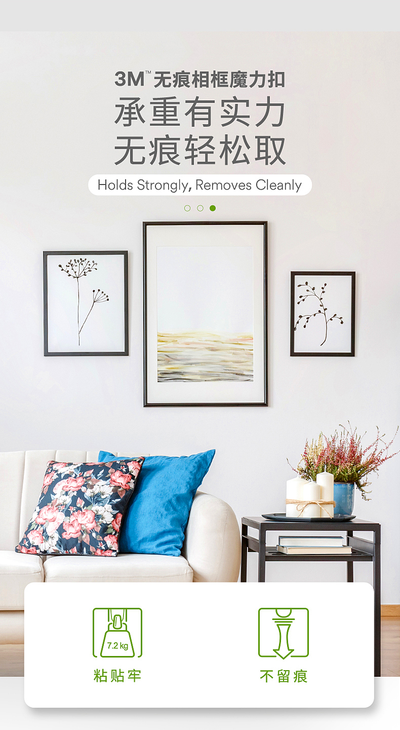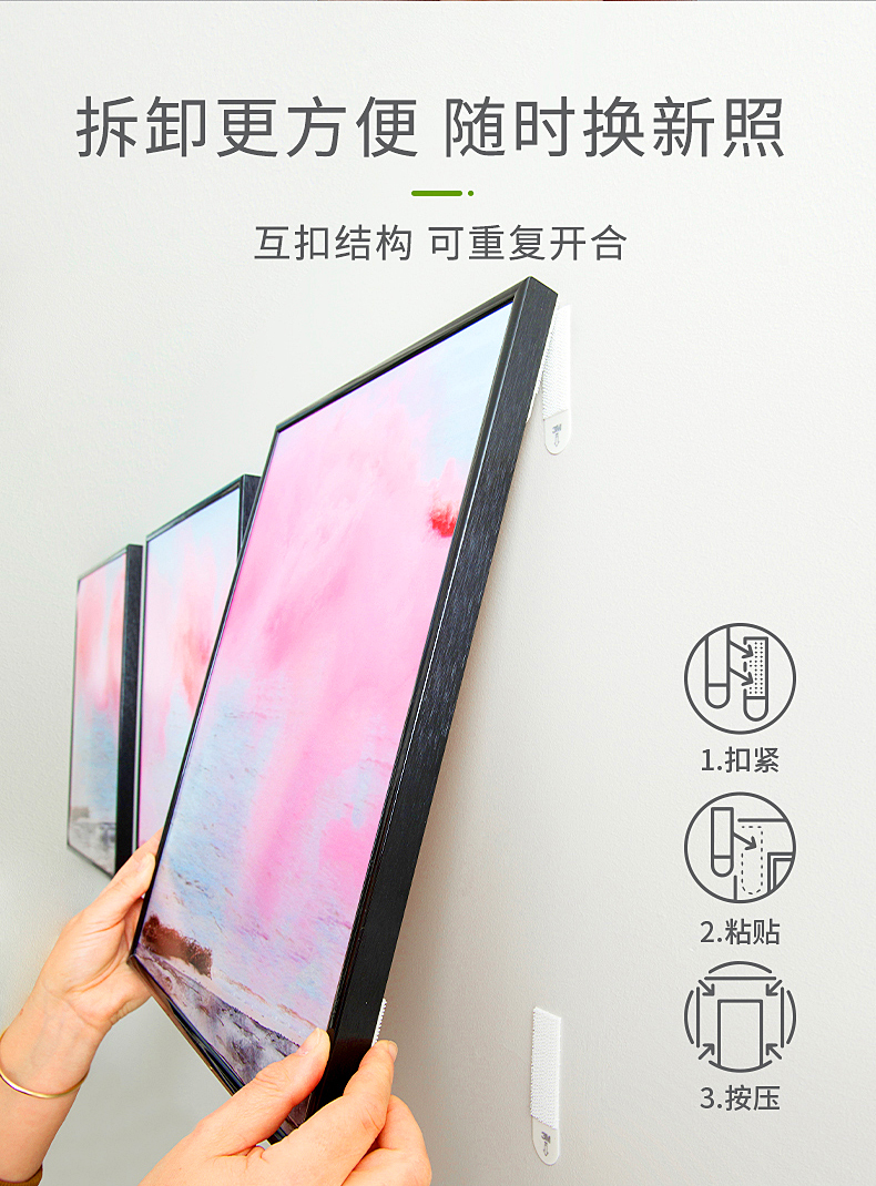 3m无痕胶魔术贴高曼魔力扣挂钩粘胶相框免打孔照片墙挂画双面胶条