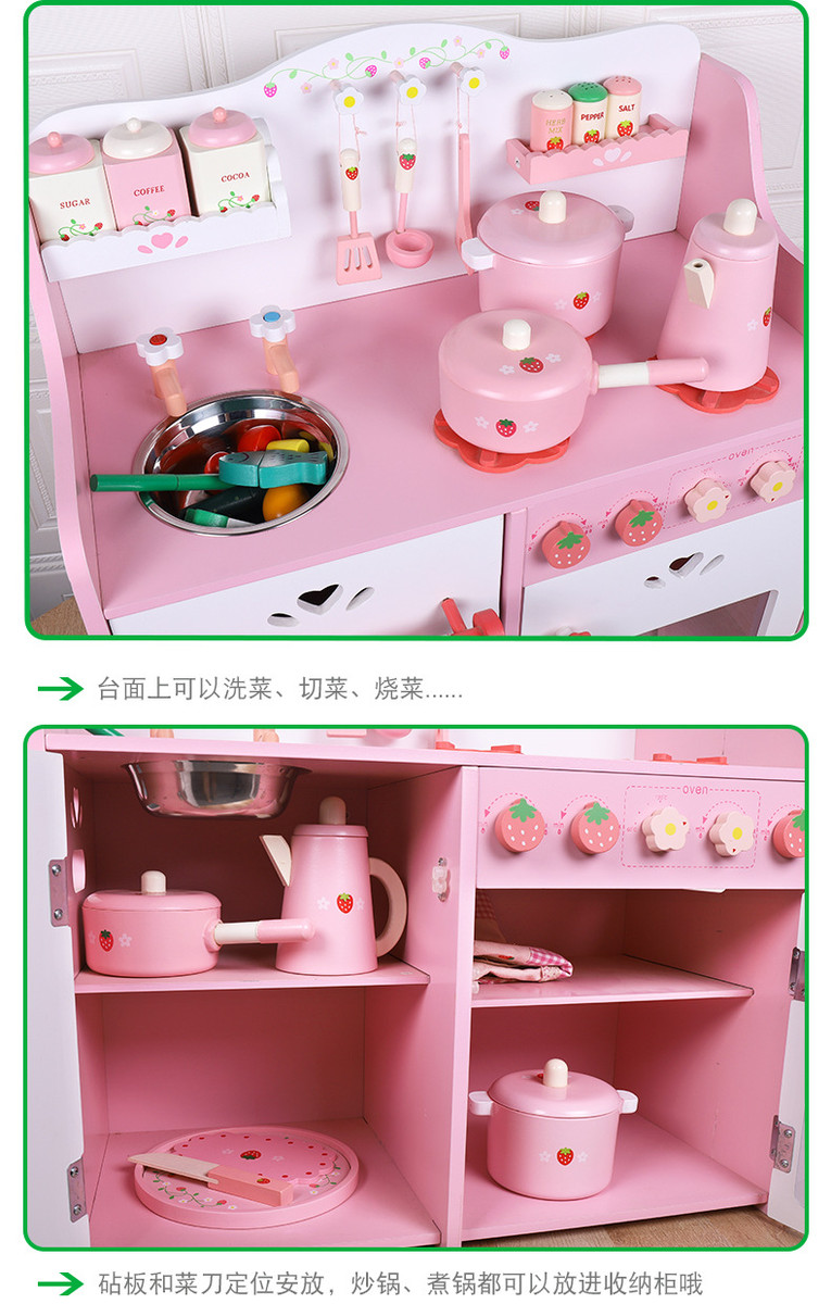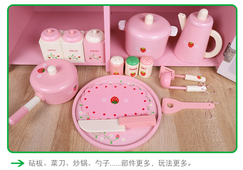 新款草莓仿真围裙厨房套装 儿童过家家切切看女孩木制做饭玩具