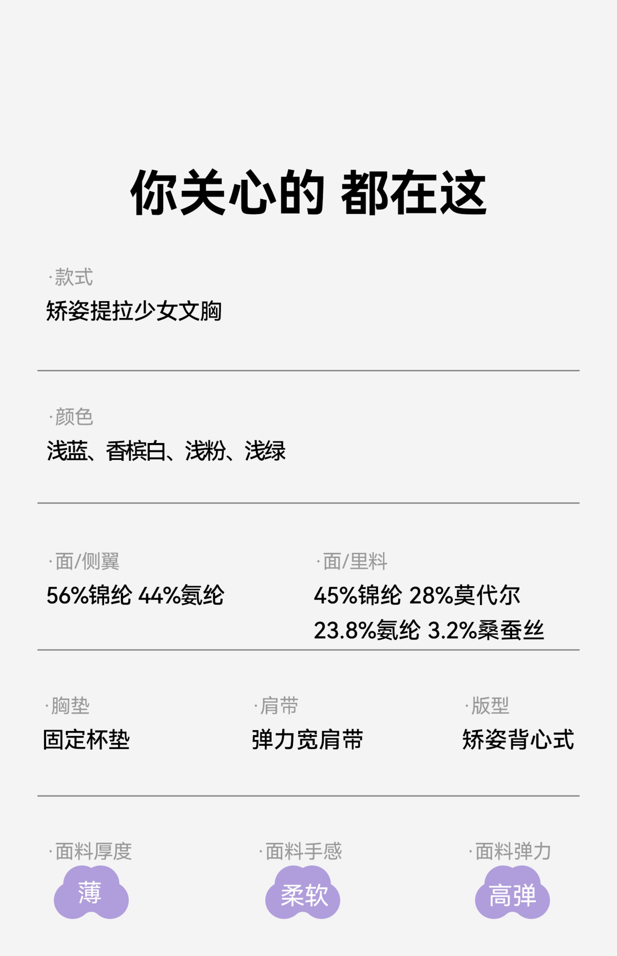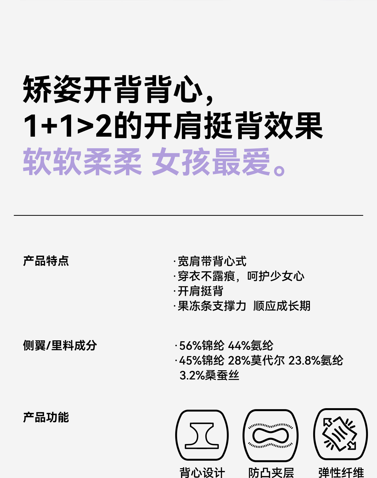 棉小内提拉矫姿少女内衣学生运动防震矫正驼背儿童文胸发育期背心