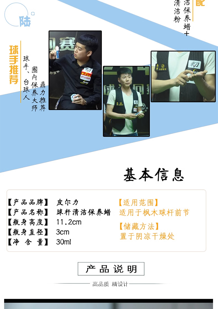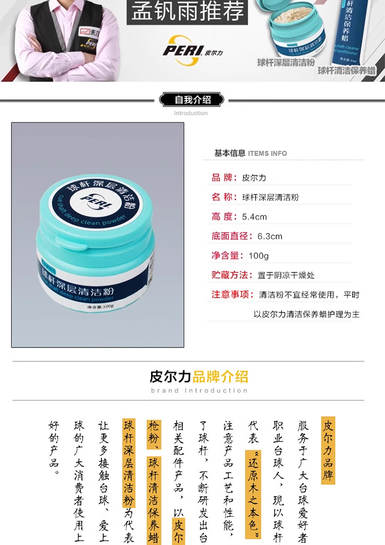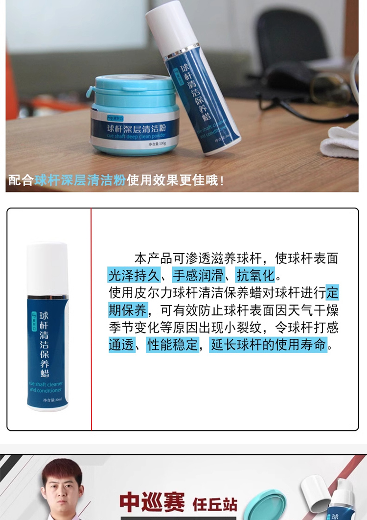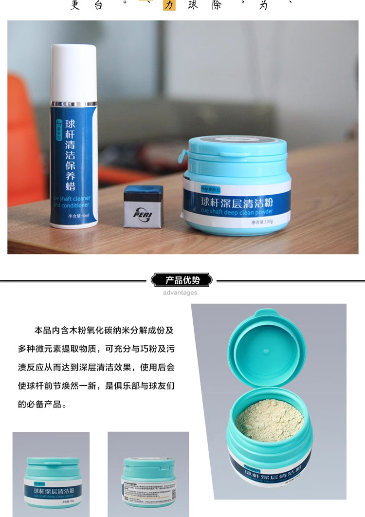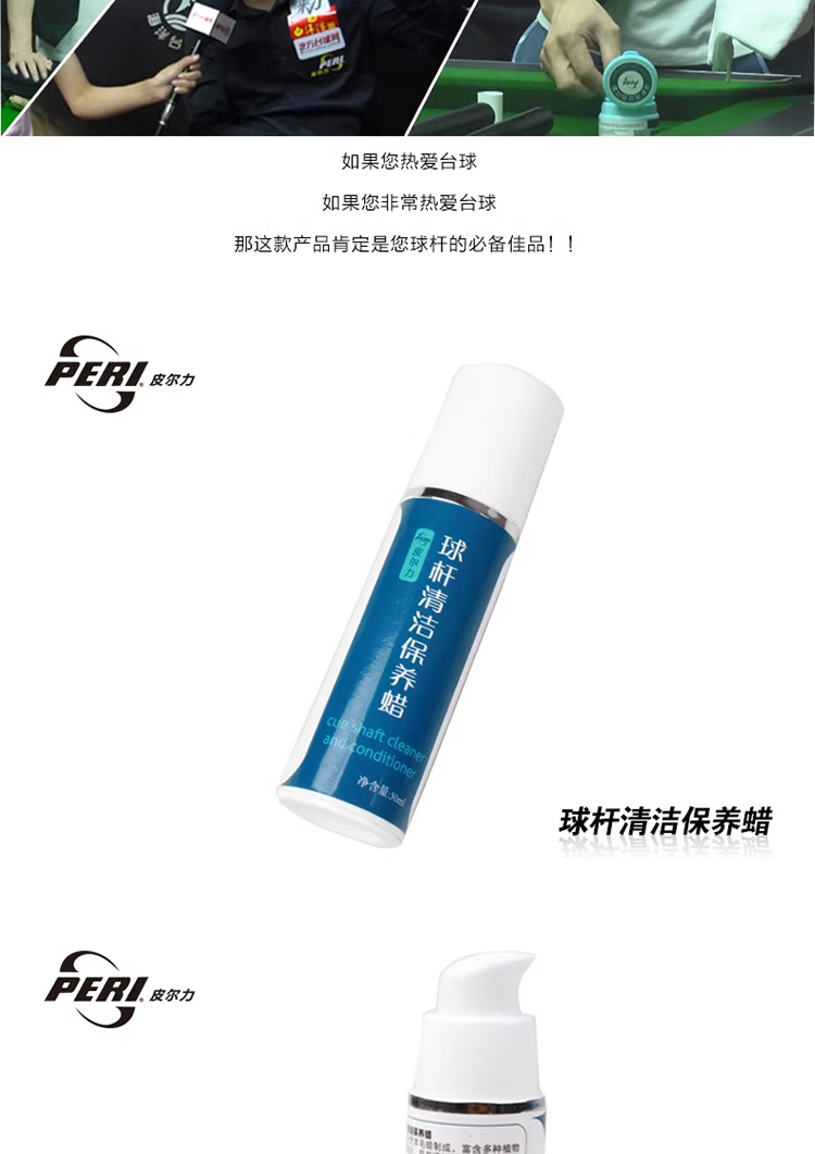 PERI皮尔力台球杆清洁套装保养蜡清洁粉中式黑八九球杆桌球杆用品