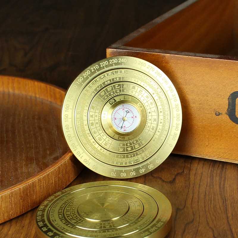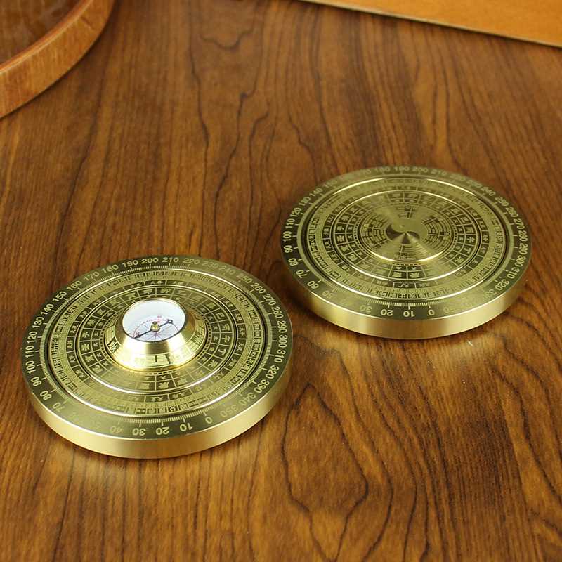 黄铜八卦转转指尖陀螺金属工艺品户外求生指南针纯铜罗盘摆件