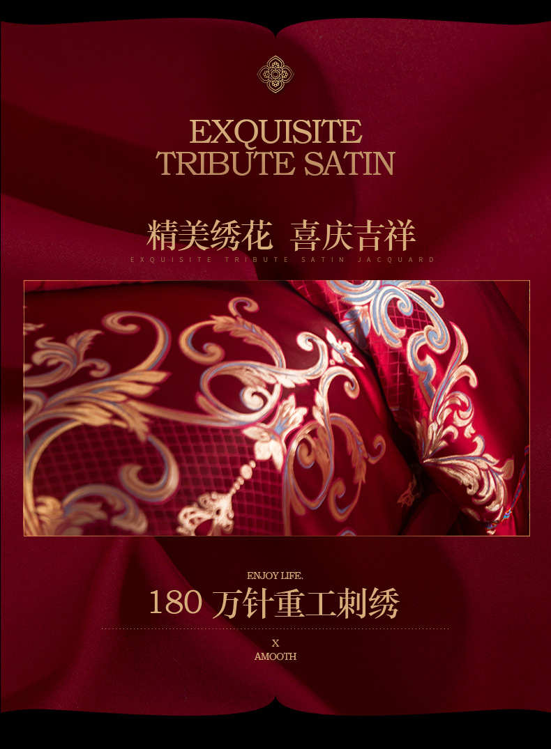 床上用品四件套高档欧式婚庆贡缎提花大红色喜庆被套结婚多件套
