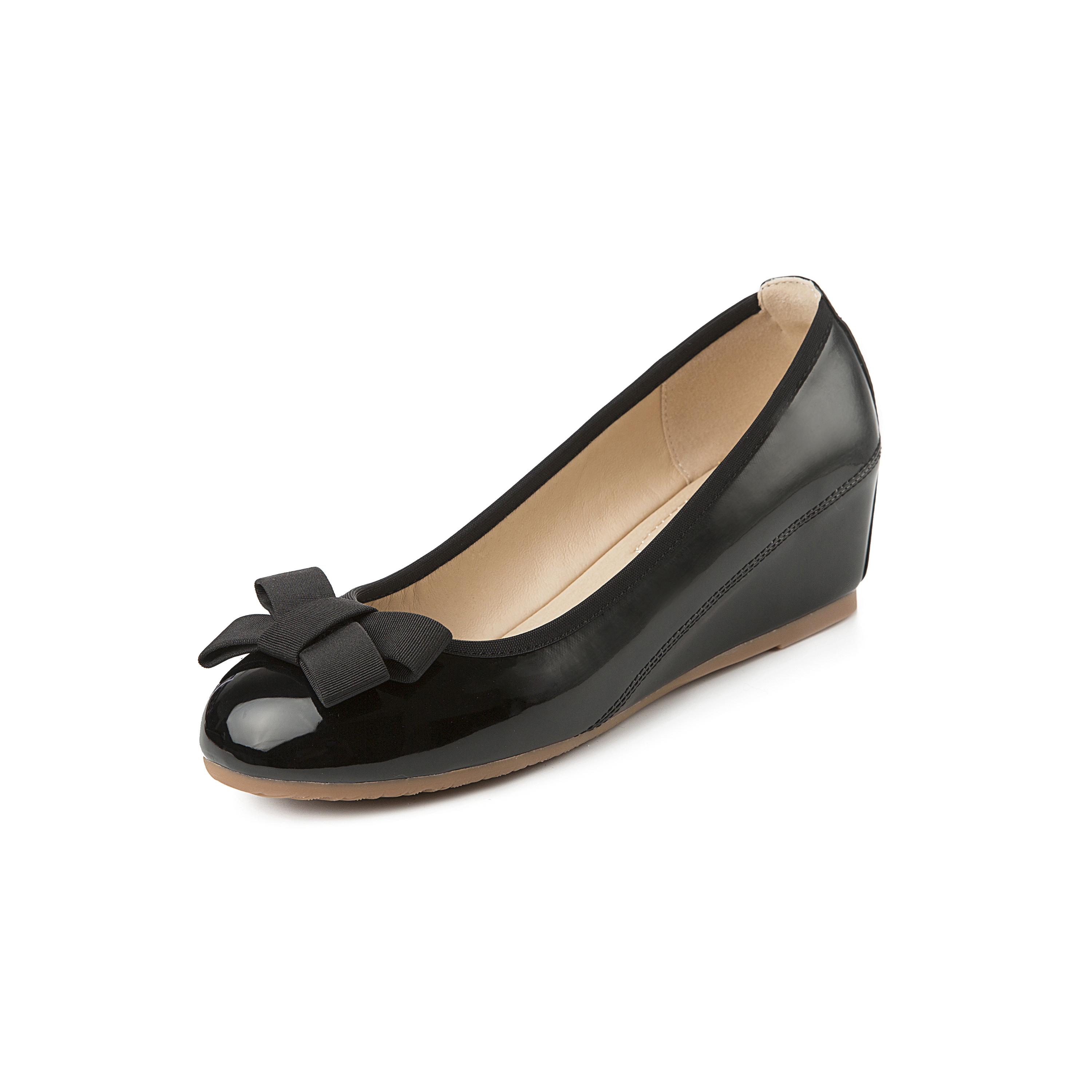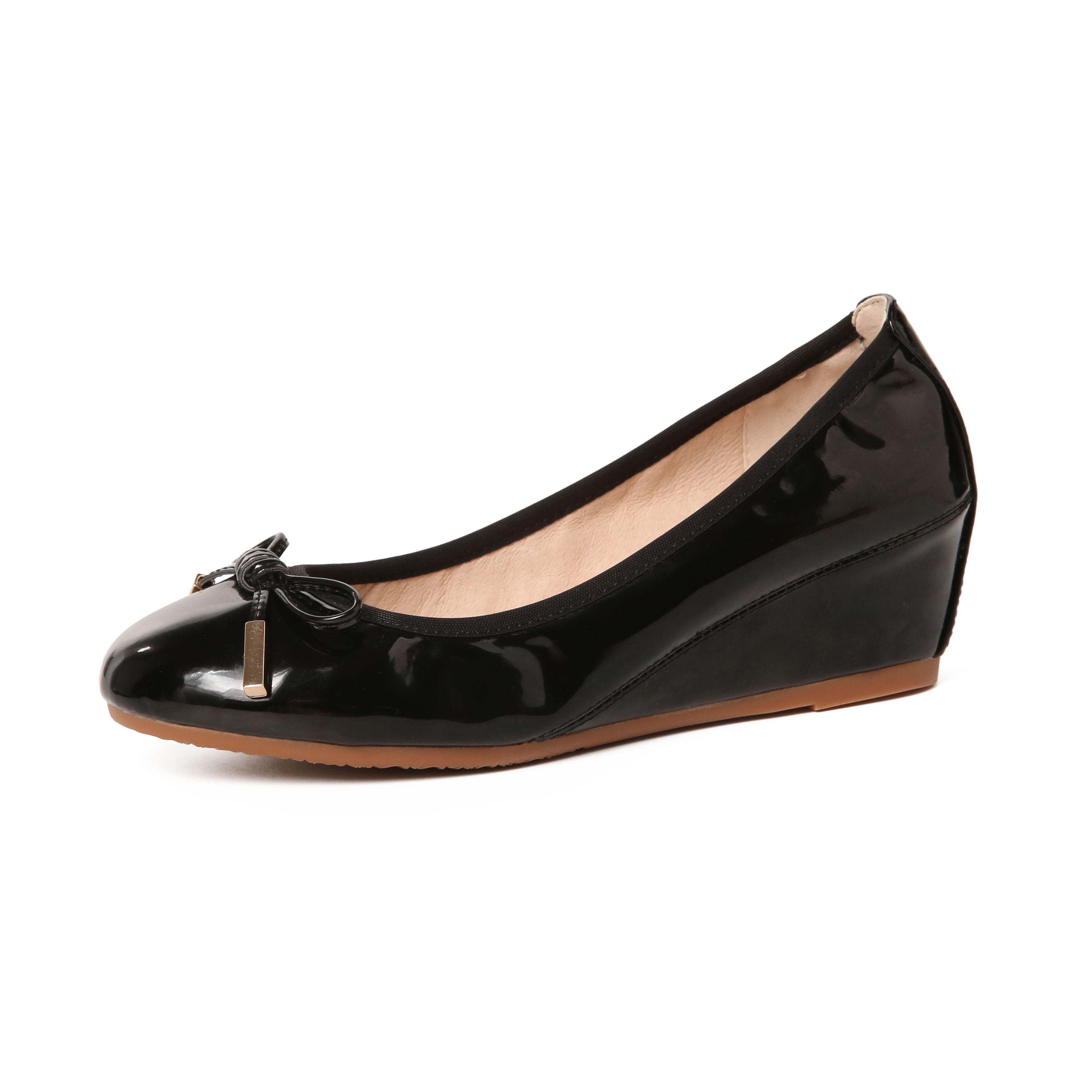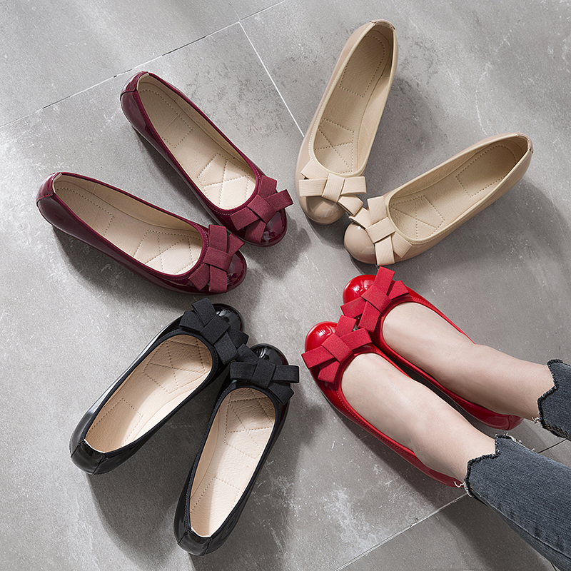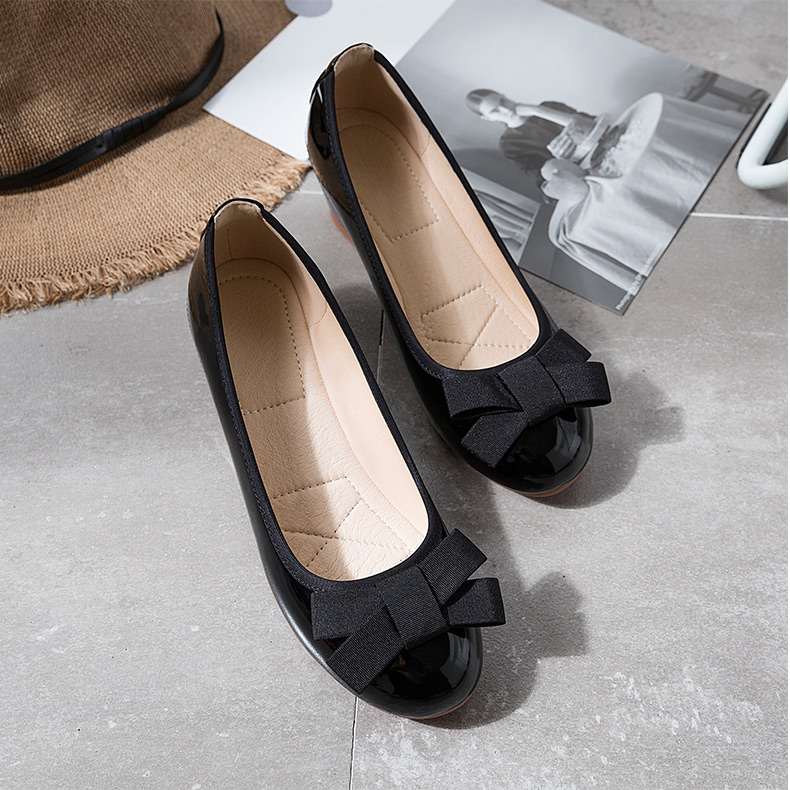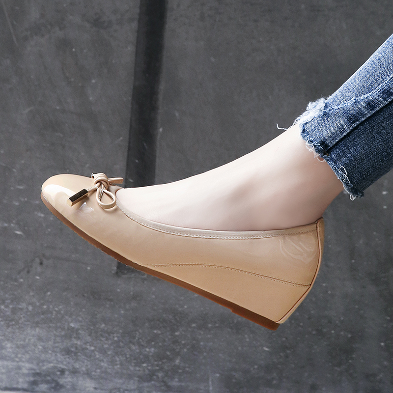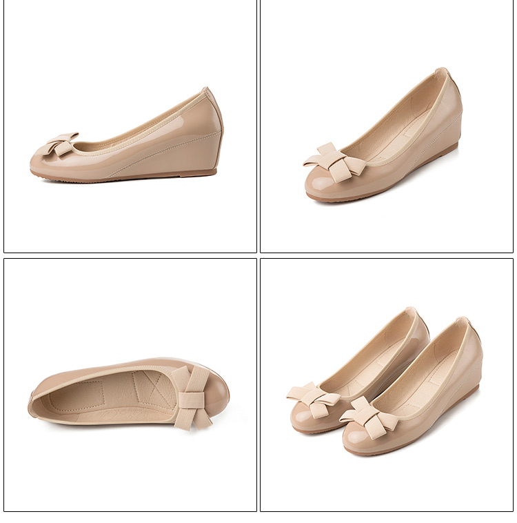 内增高坡跟软底鞋女中跟单鞋蝴蝶结真皮酒红色小码蛋卷豆豆鞋船鞋