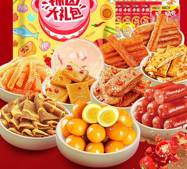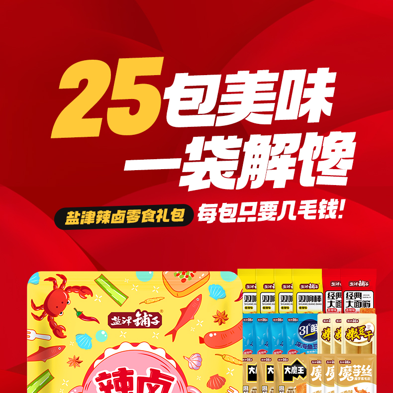 盐津铺子零食大礼包辣子鸡豆干休闲小吃批发