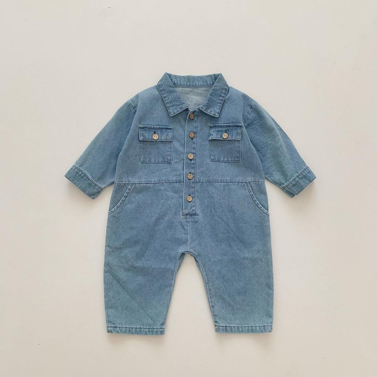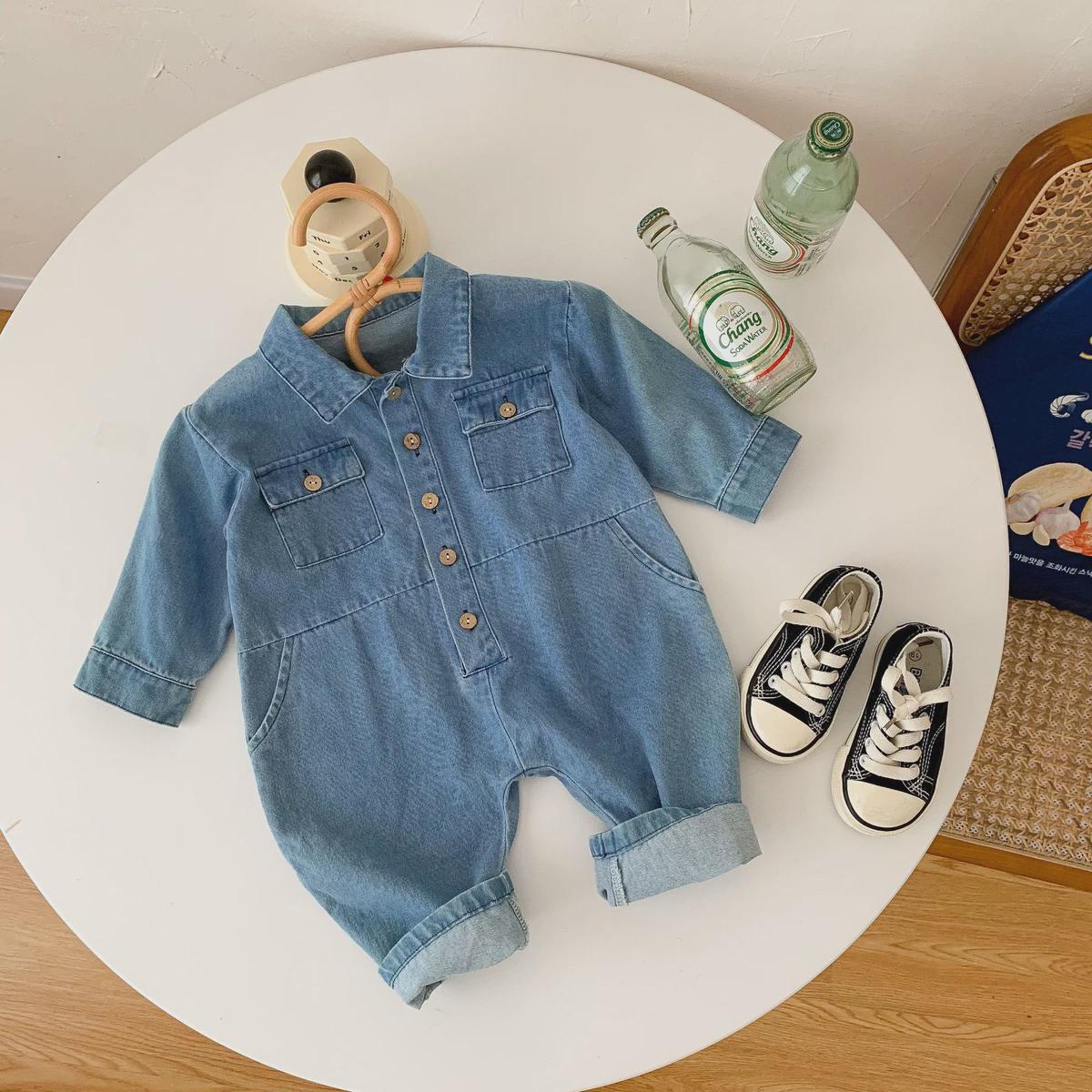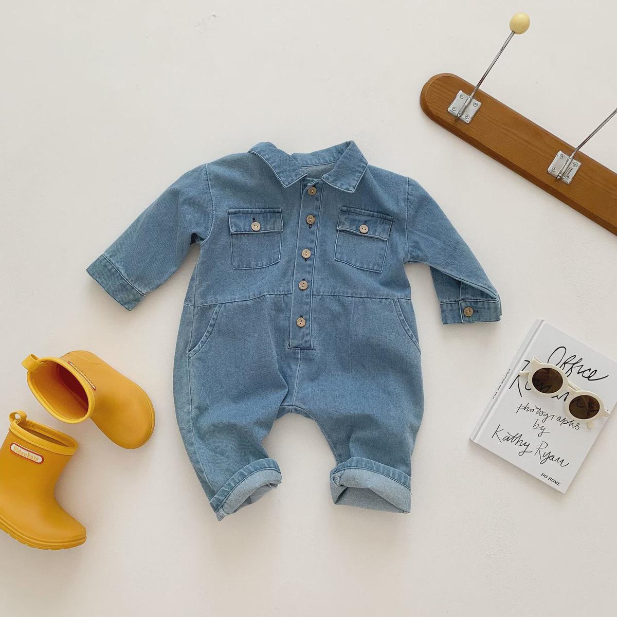 宝宝连体衣女童牛仔连身服男童长袖婴儿春秋装儿童连体哈衣爬服裤