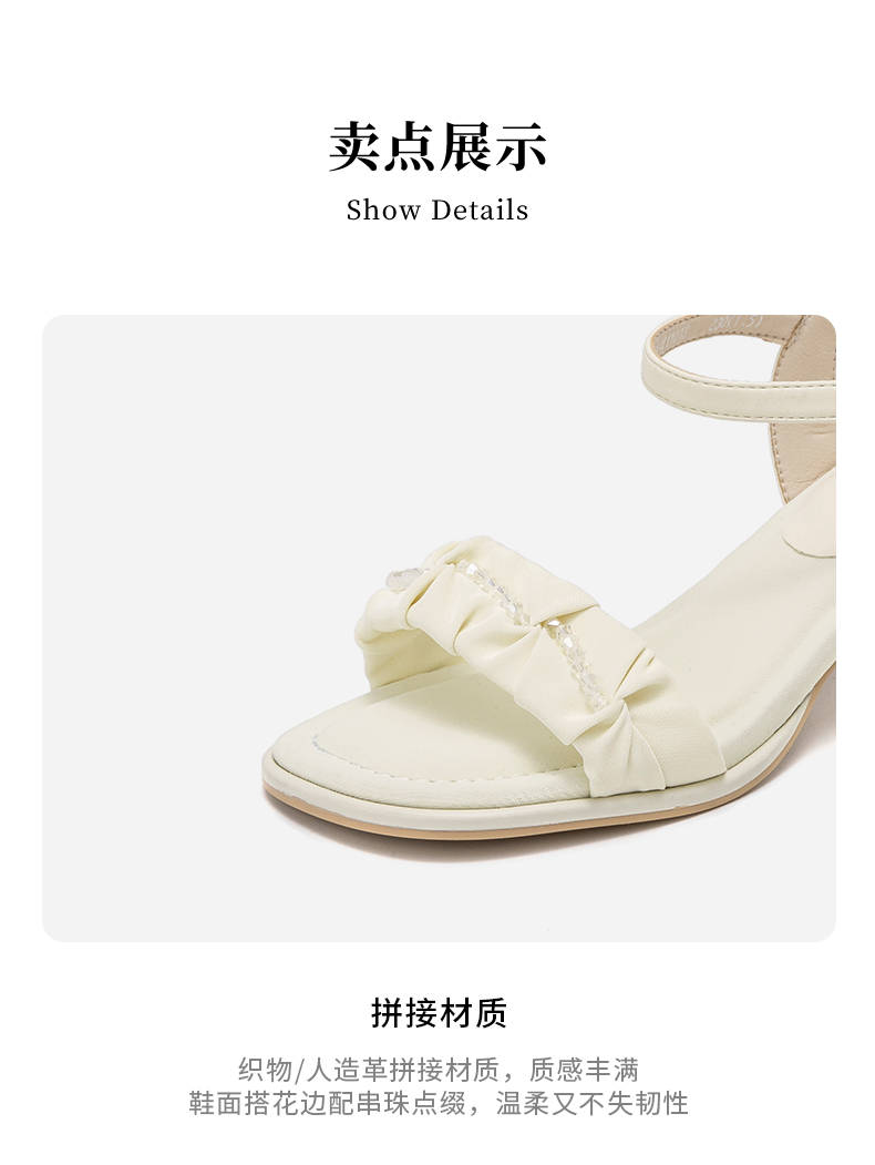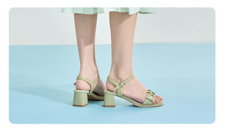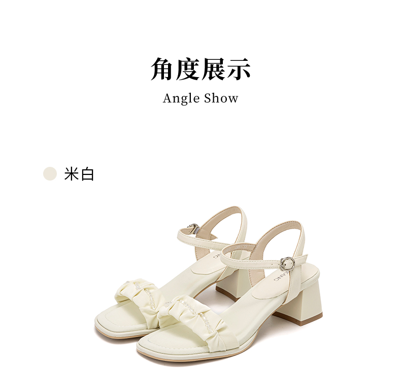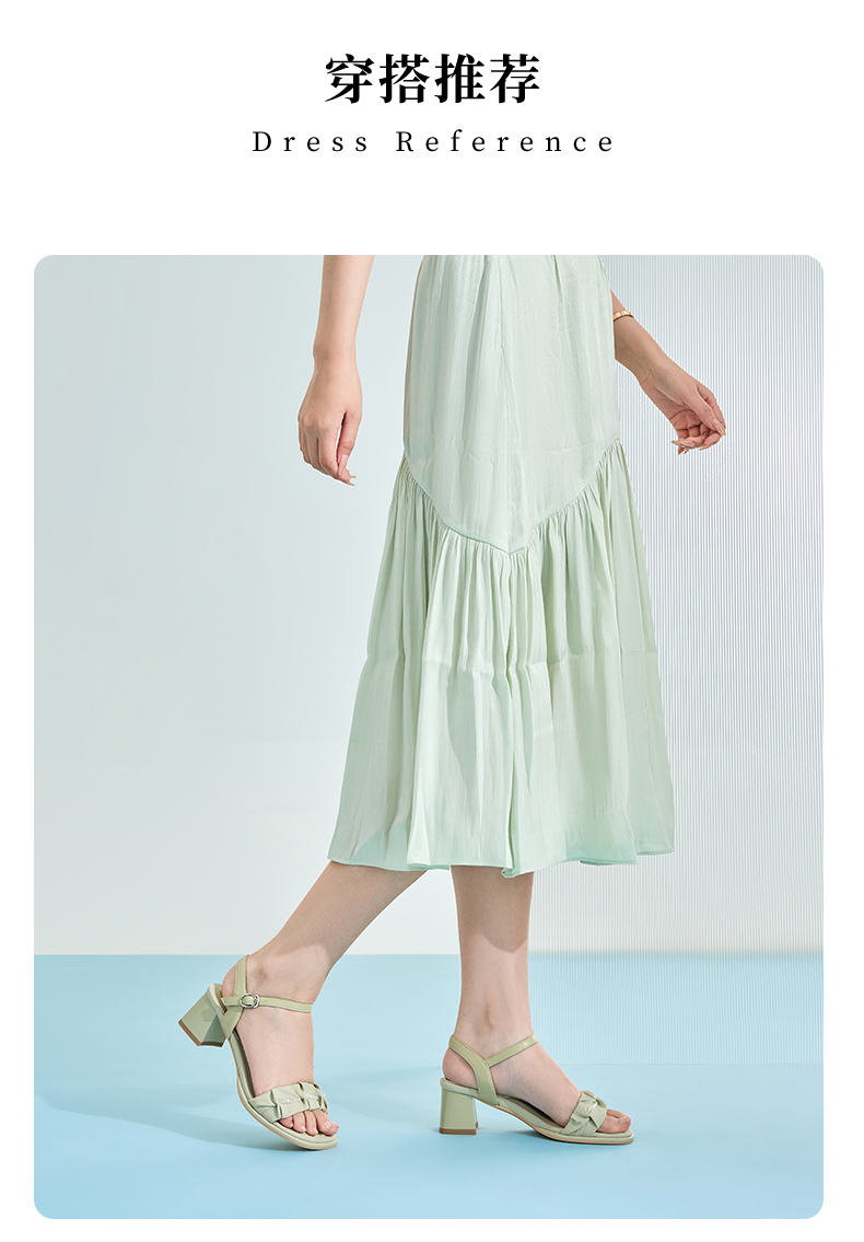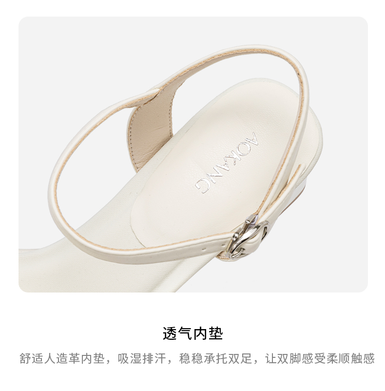 奥康女鞋夏季新款甜美气质仙女风一字带露趾时装凉鞋坡跟舒适单鞋