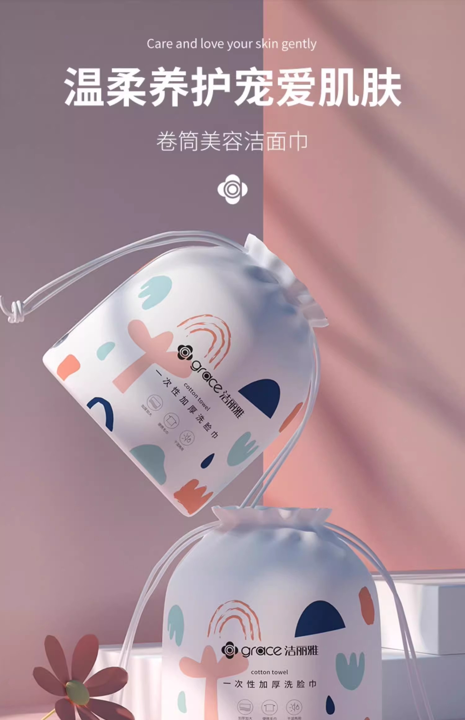洁丽雅洗脸巾一次性卷筒式家庭装擦脸巾女加厚美容院洗面洁面巾纸