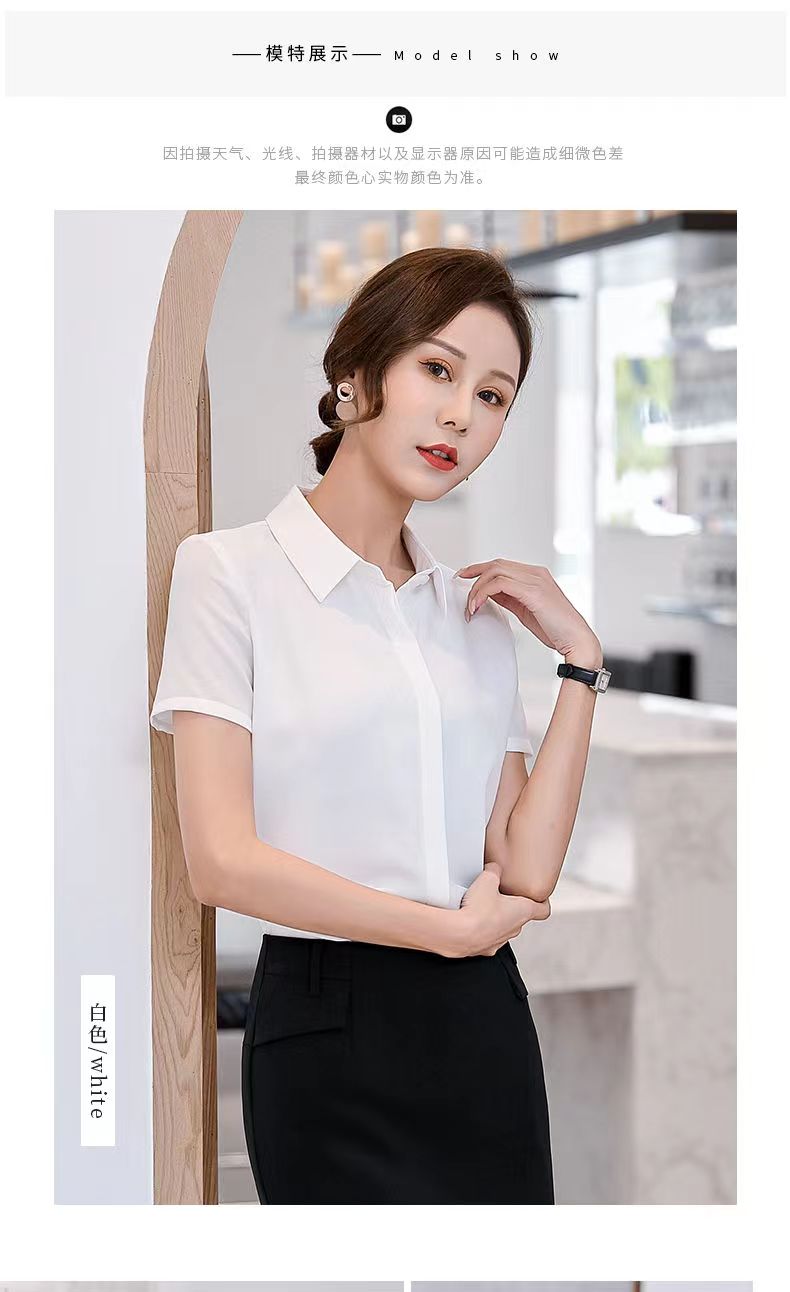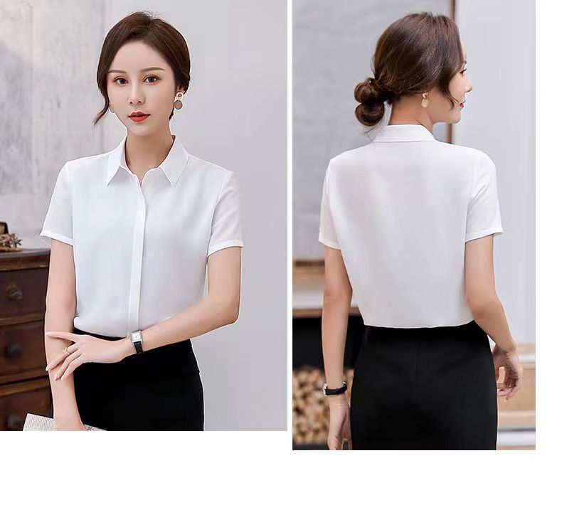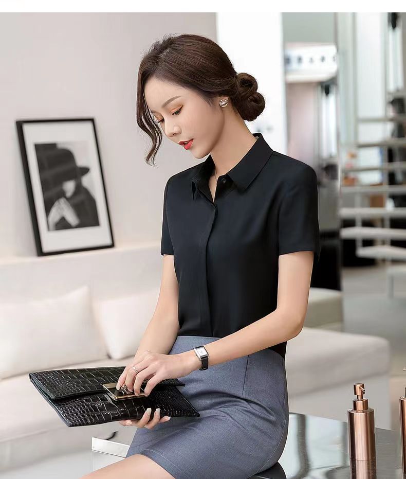 黑衬衫女夏季短袖职业装韩版修身百搭大码工装学生雪纺白衬衣上衣