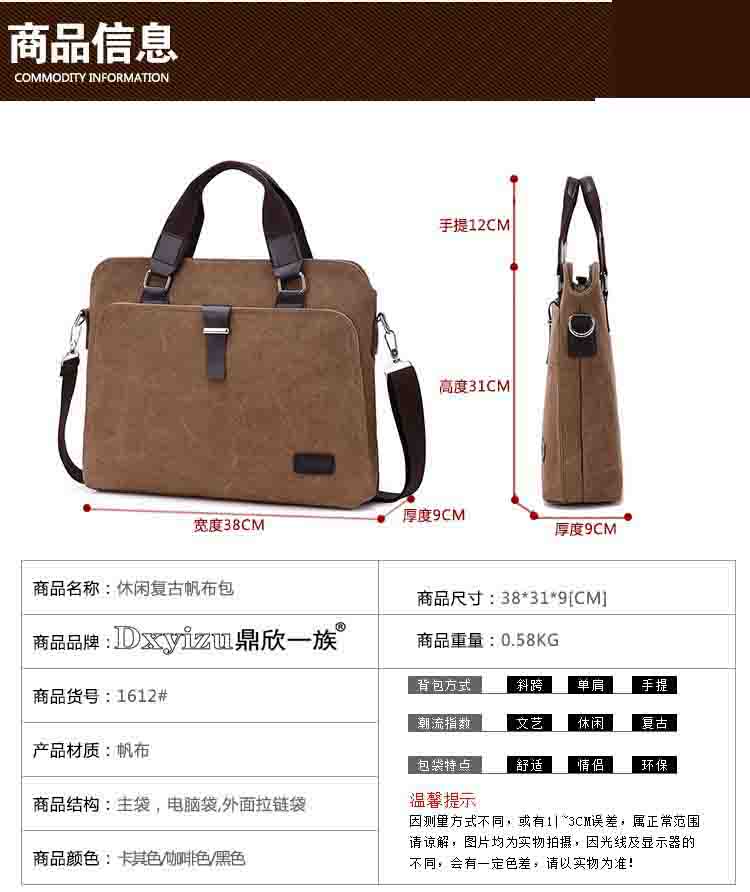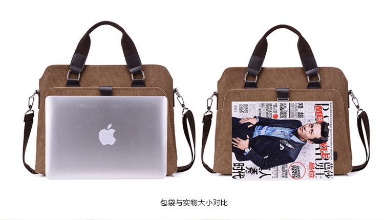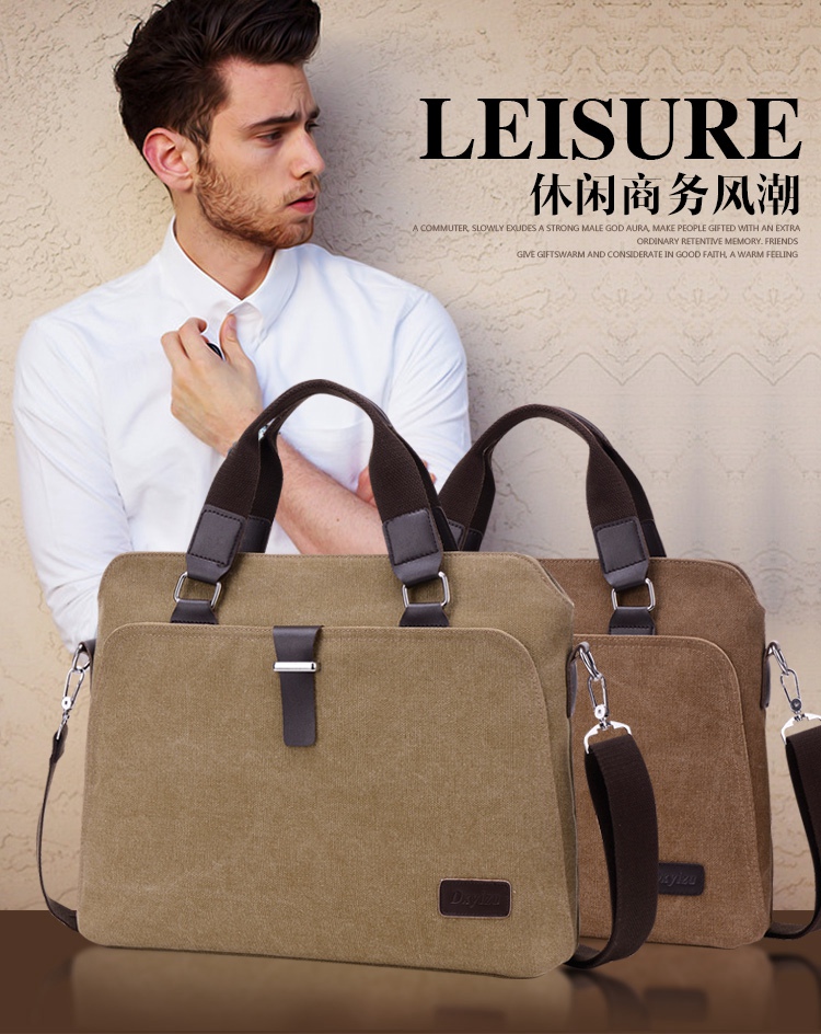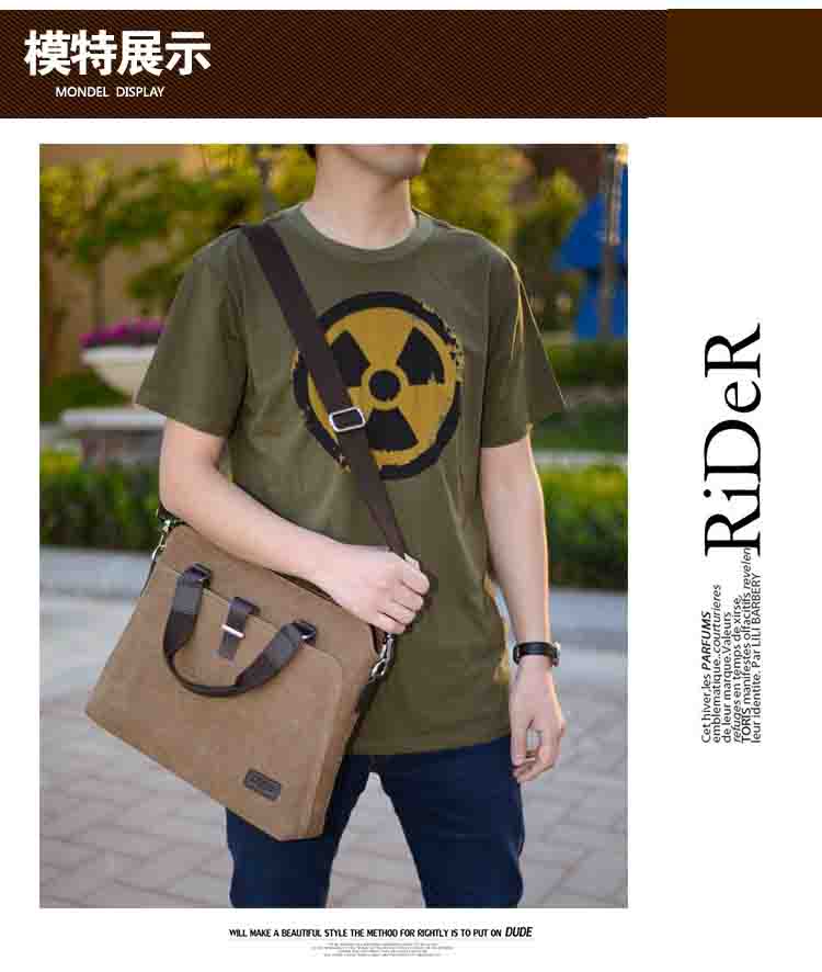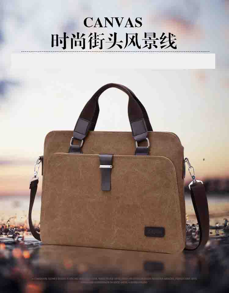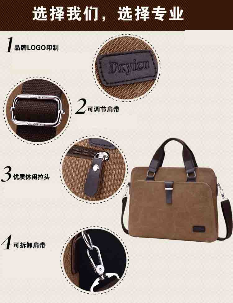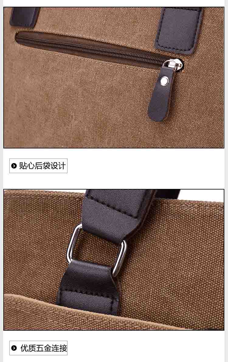 男士手提包时尚休闲帆布包简约商务公文包单肩斜挎包复古潮流男包