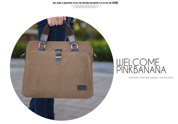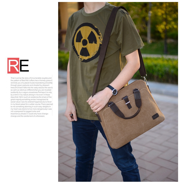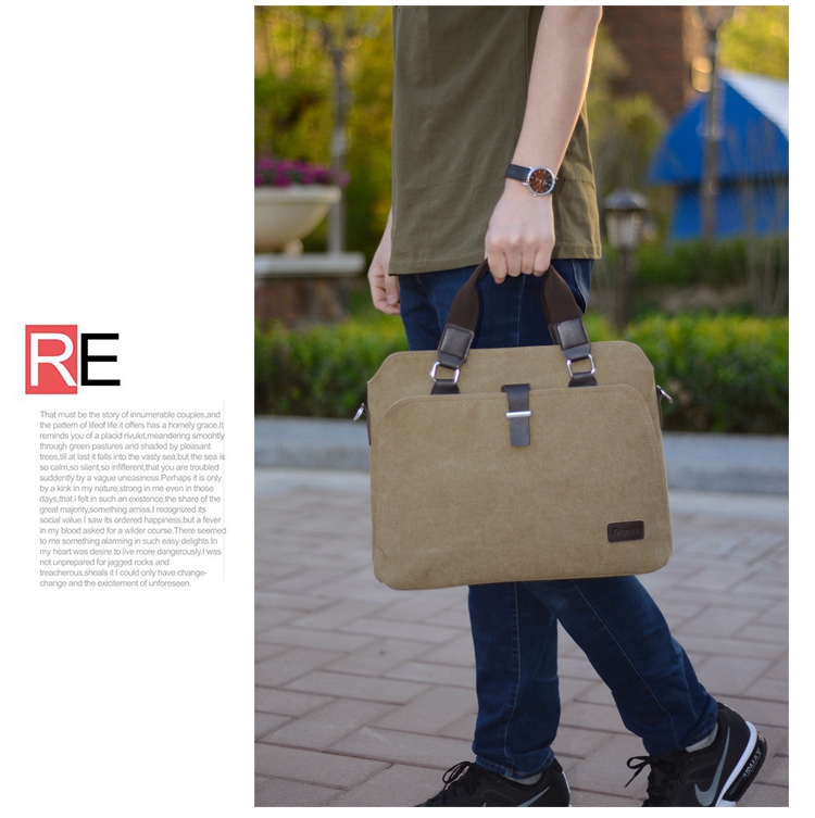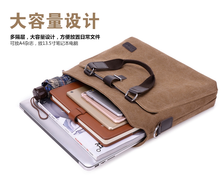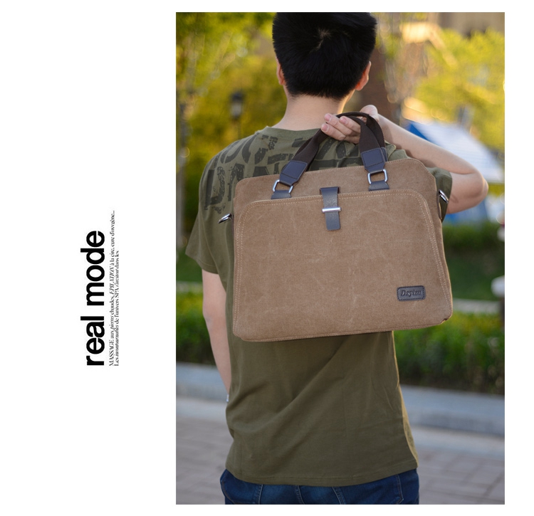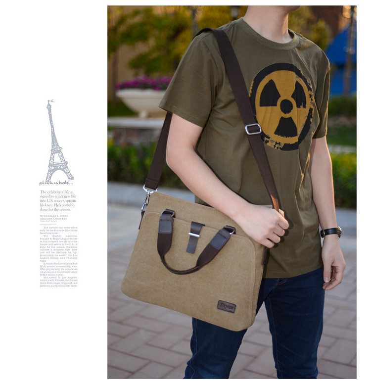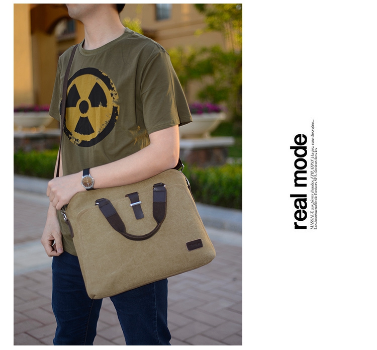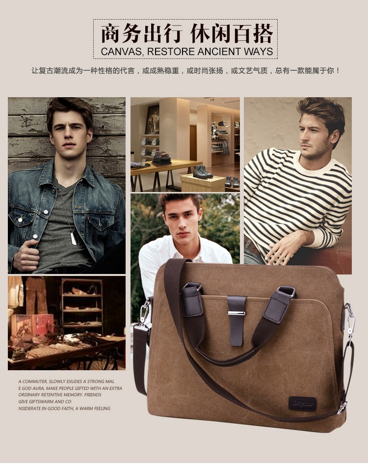 男士手提包时尚休闲帆布包简约商务公文包单肩斜挎包复古潮流男包