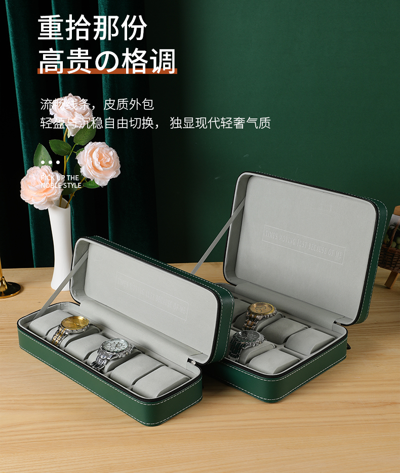 便携式防尘手表收纳盒拉链手表盒腕表首饰盒简约皮质手链展示盒子