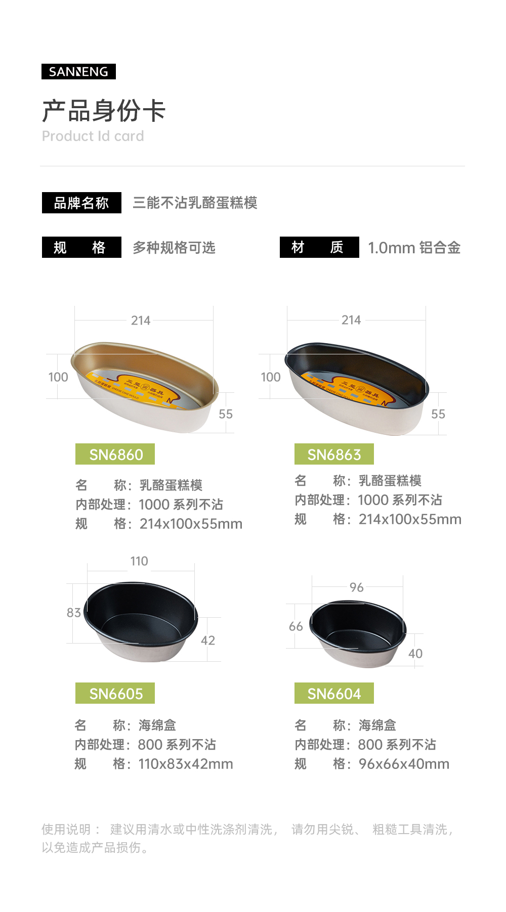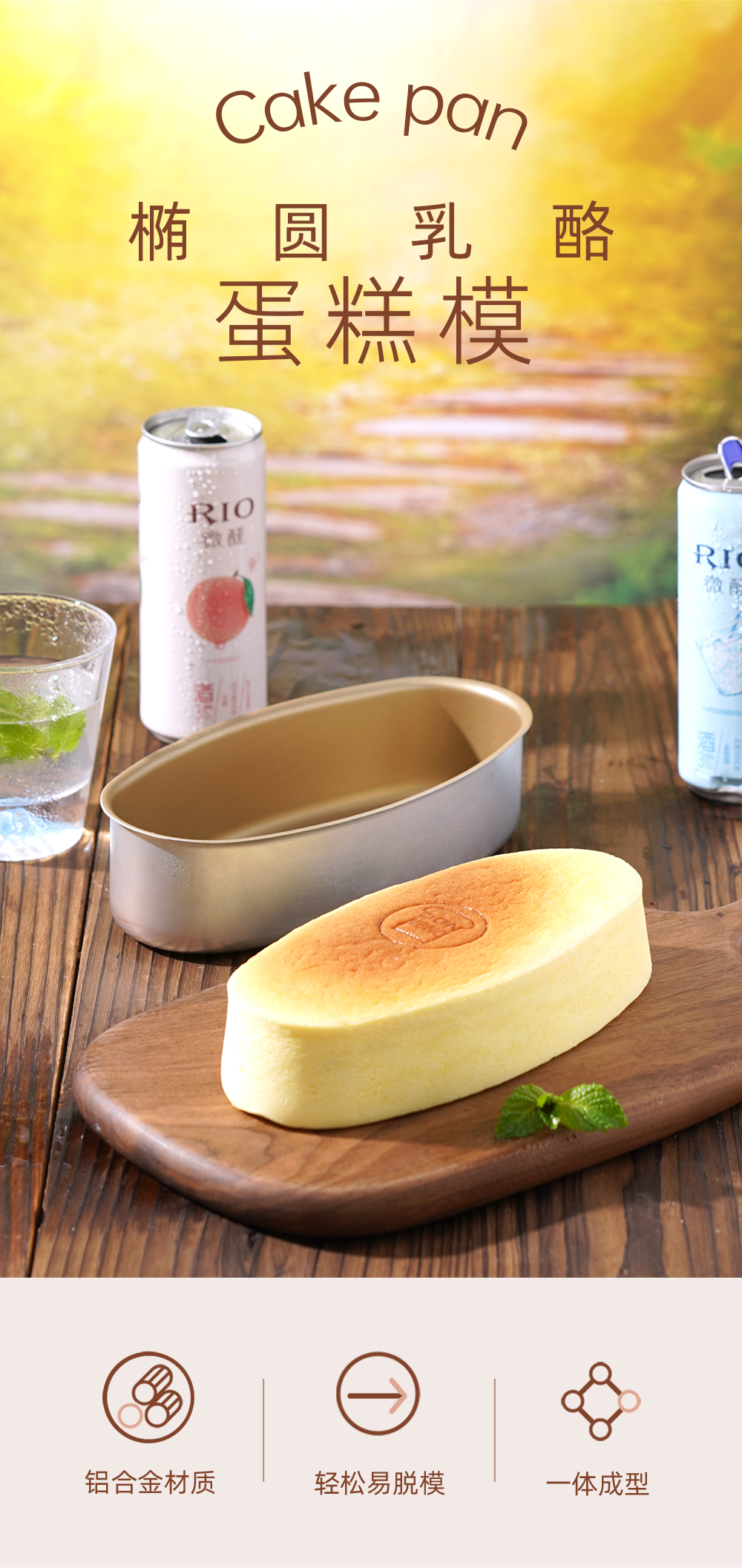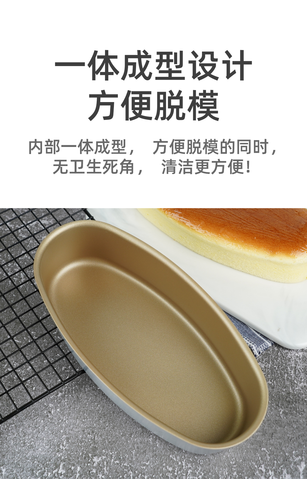 三能芝士乳酪蛋糕模具金色不粘模海绵盒烤箱椭圆家用烘焙蛋糕模具