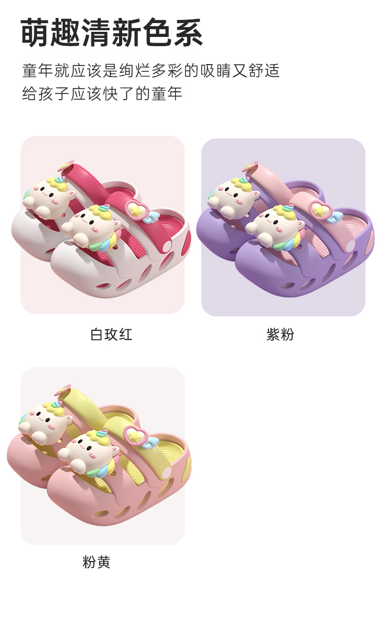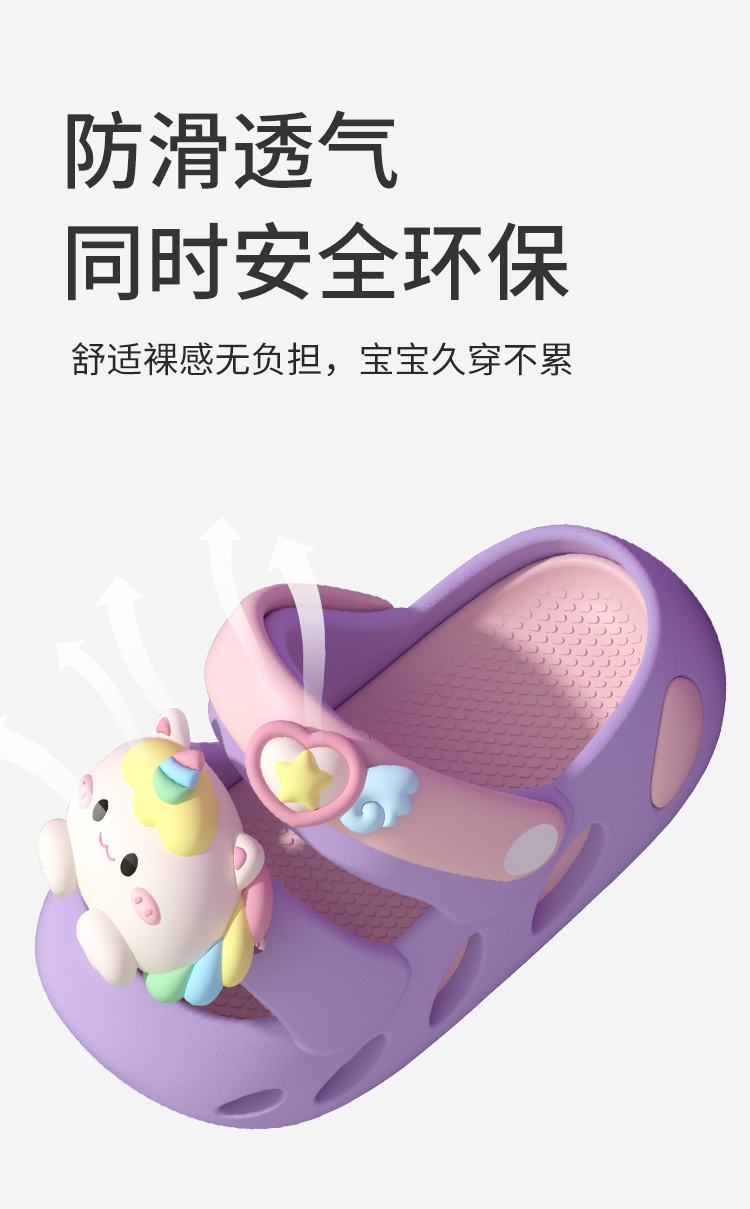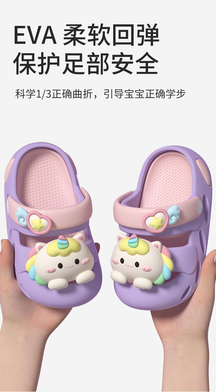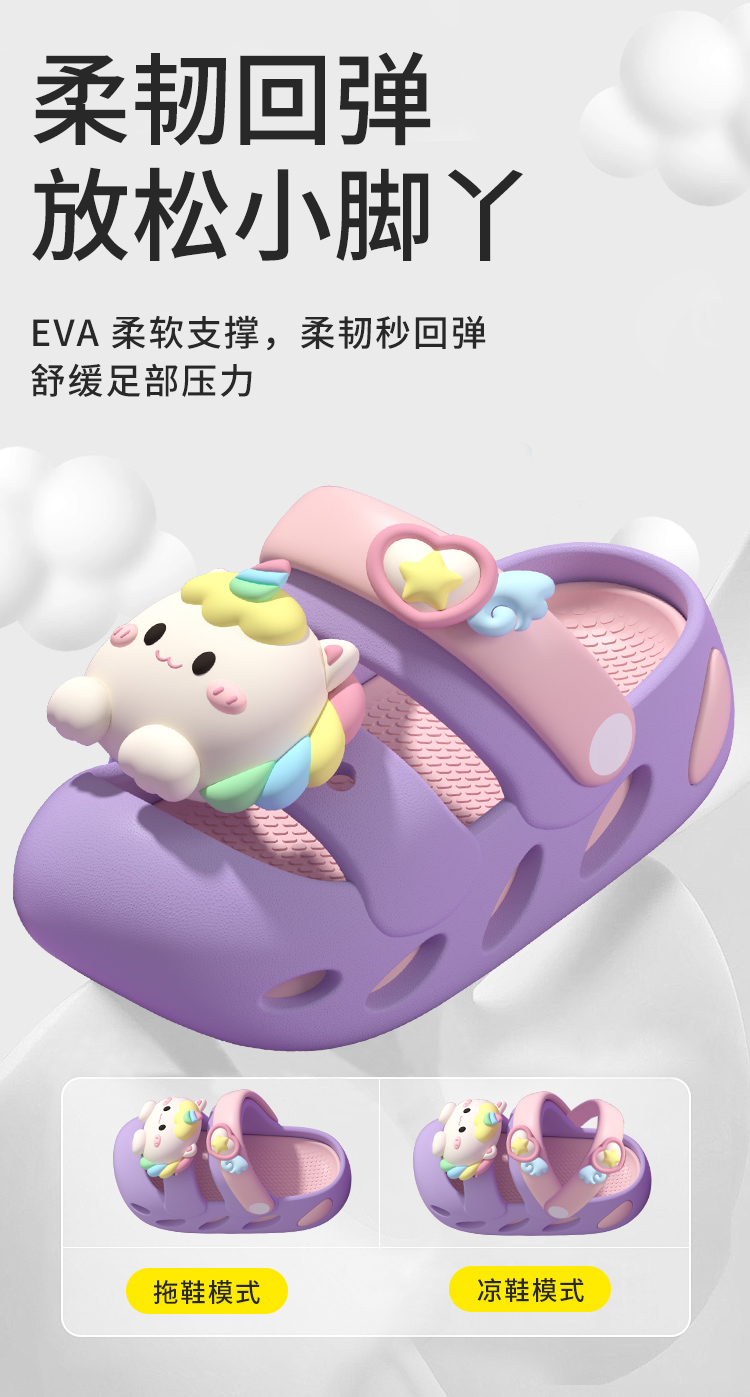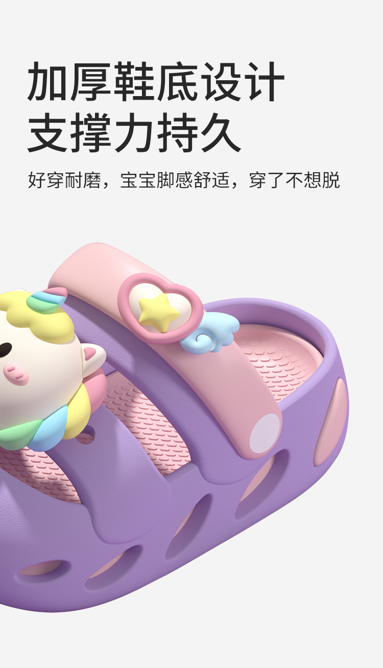 独角兽女童儿童洞洞鞋夏季女孩子宝宝小朋友室内外防滑包头凉拖鞋