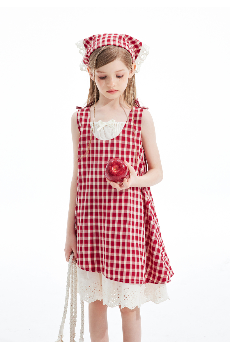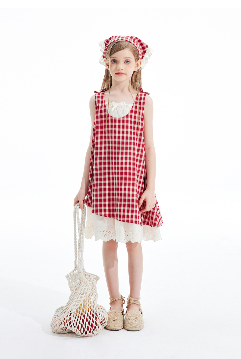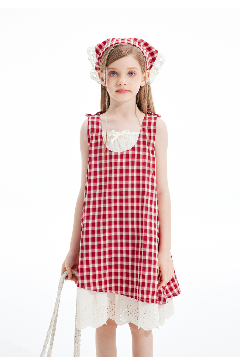 植木童装女童裙子2025夏季新款中大童森系格纹背心裙儿童连衣裙