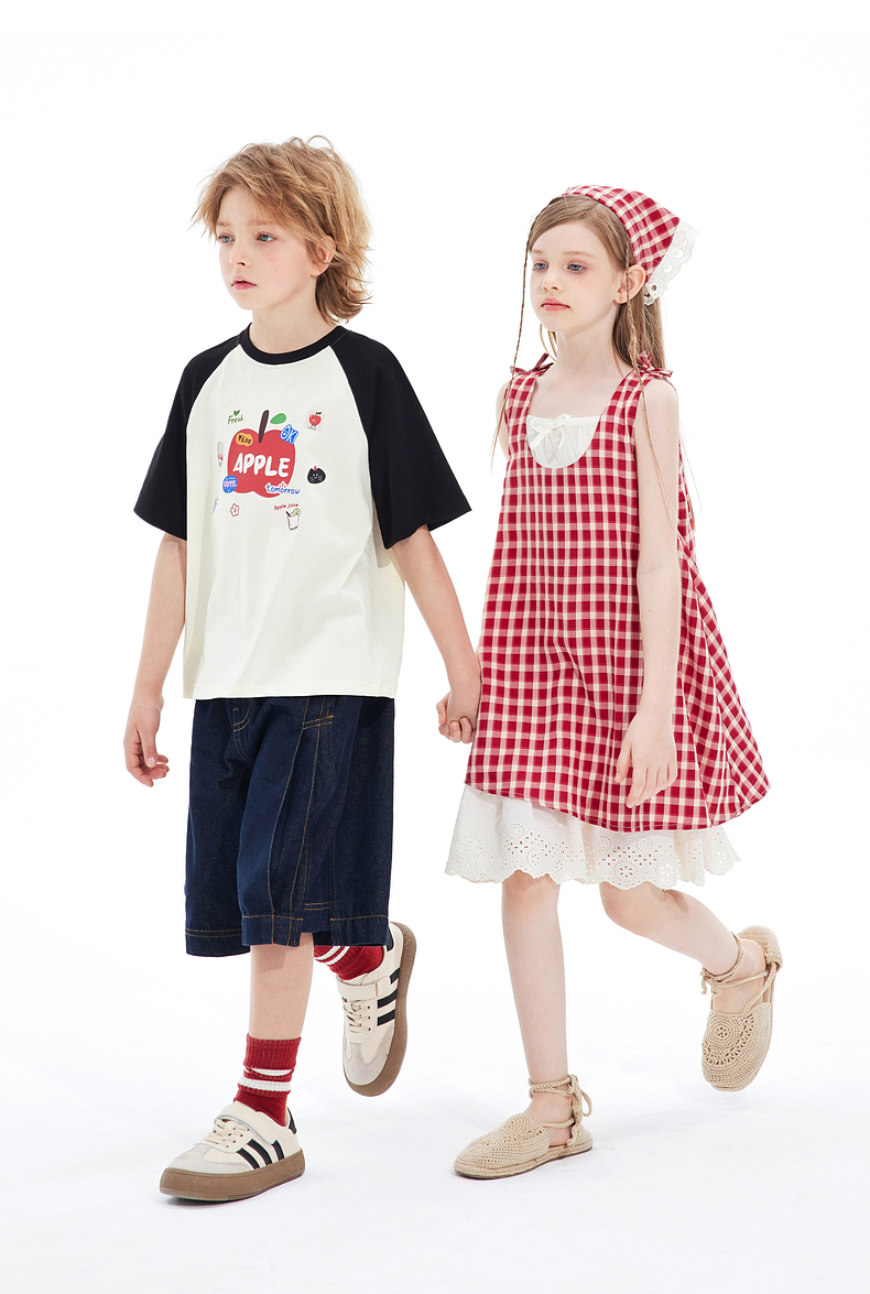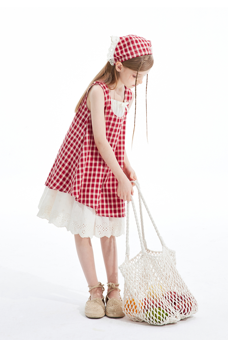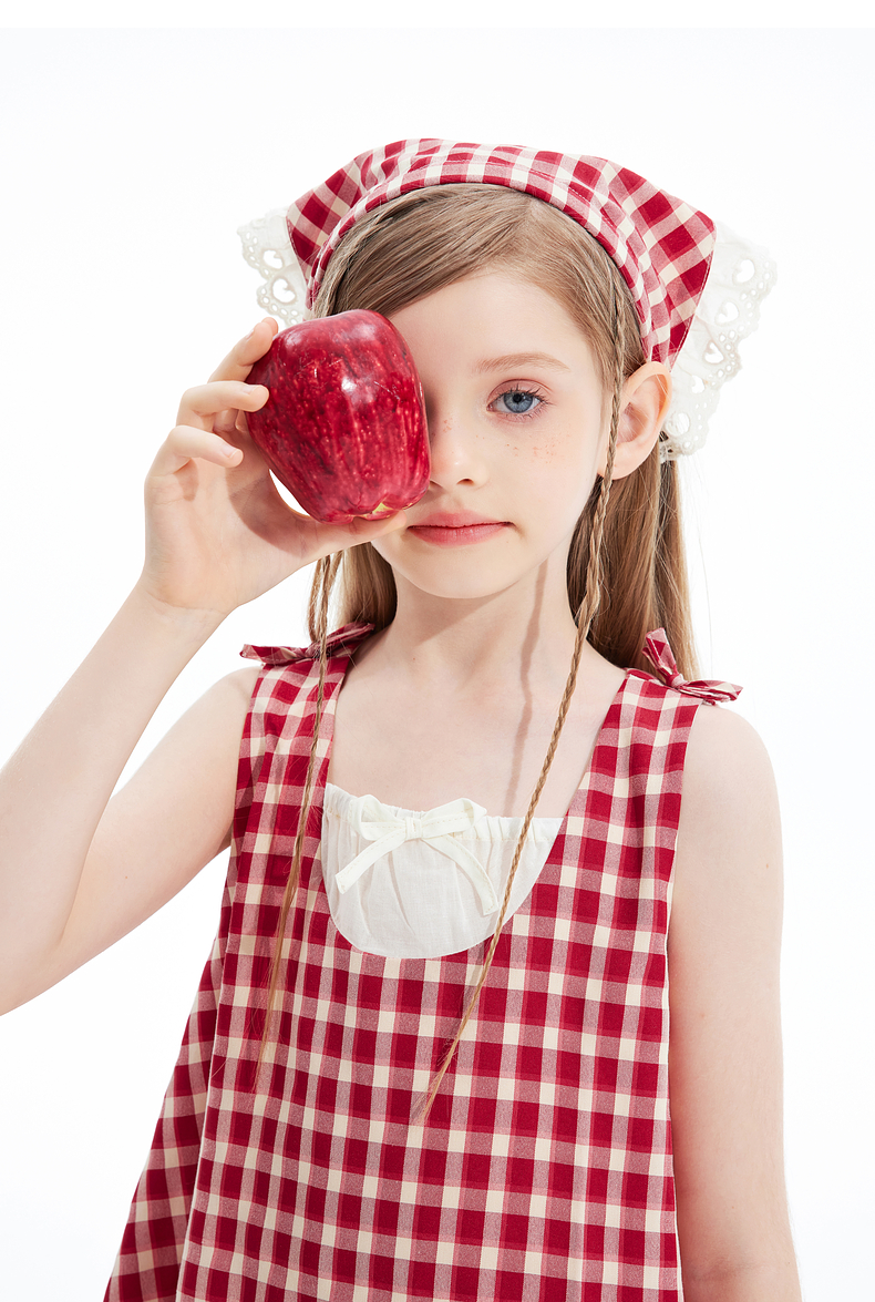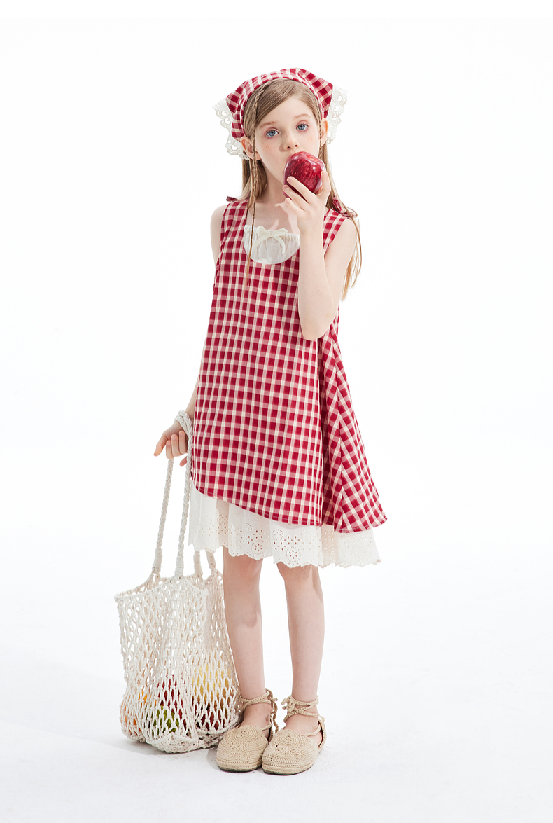 植木童装女童裙子2025夏季新款中大童森系格纹背心裙儿童连衣裙