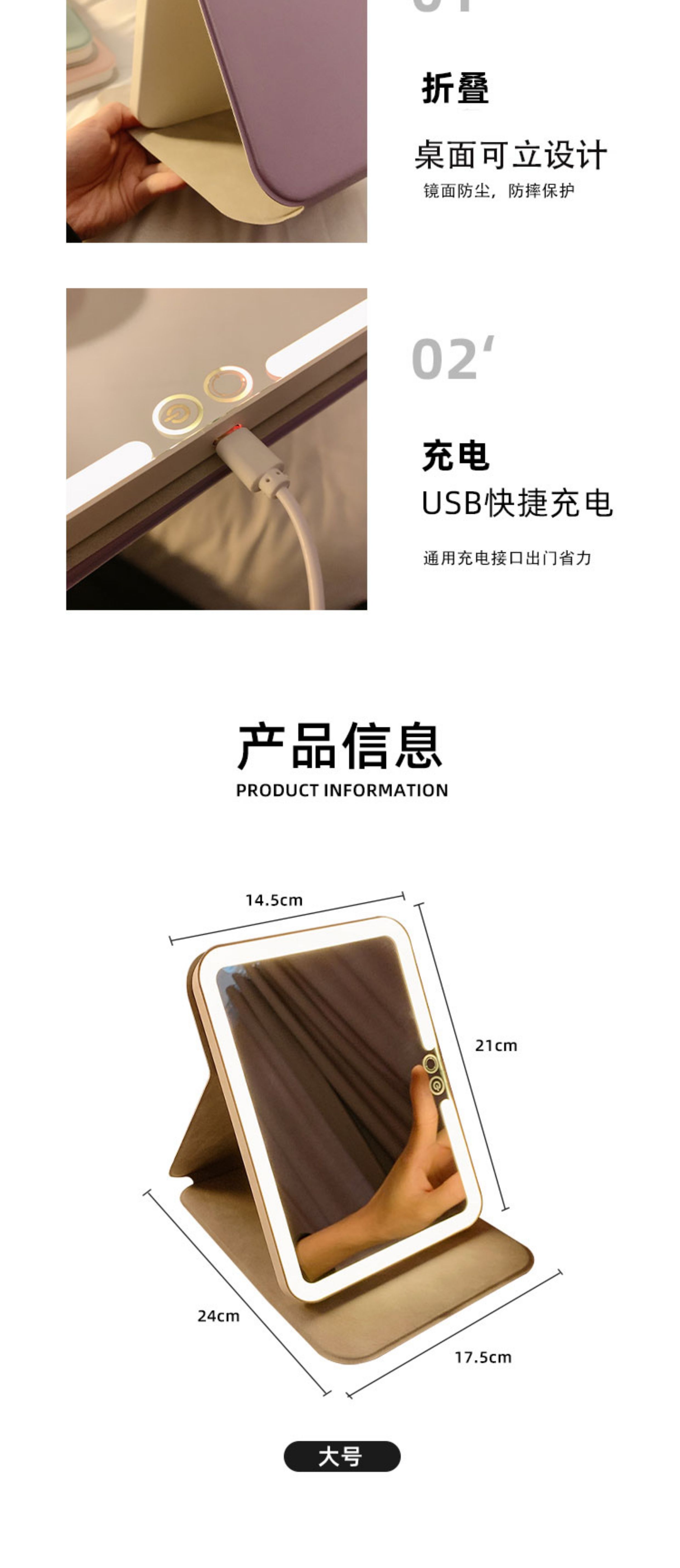 led化妆镜带灯家用台式桌面折叠梳妆补光小镜子便携随身学生宿舍