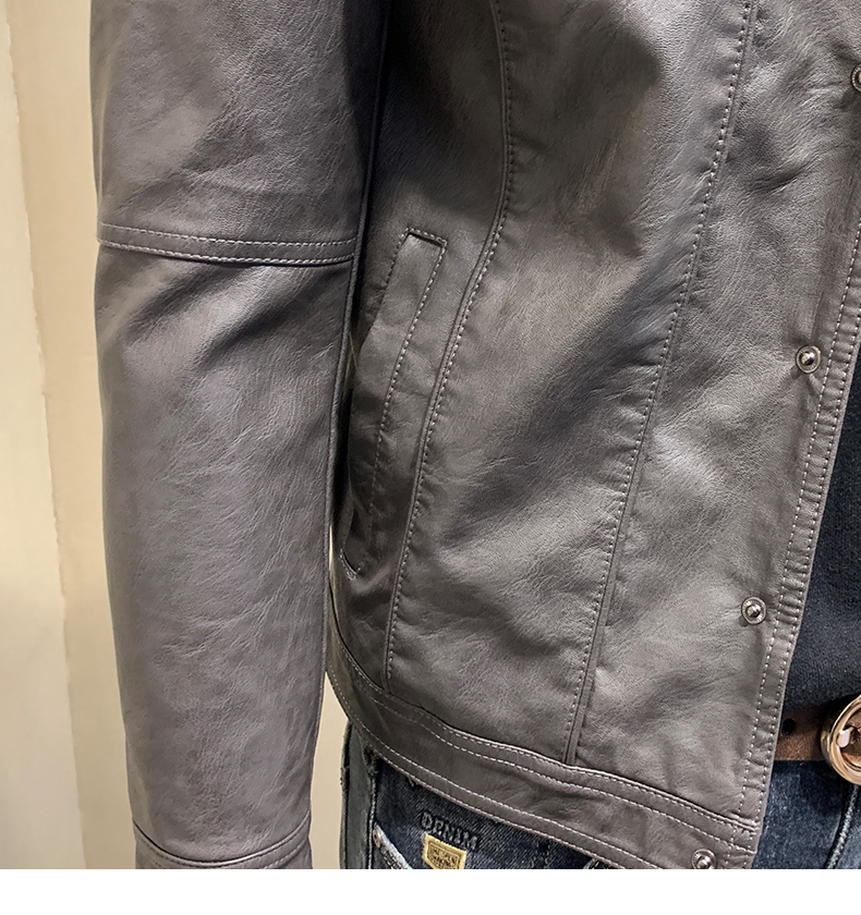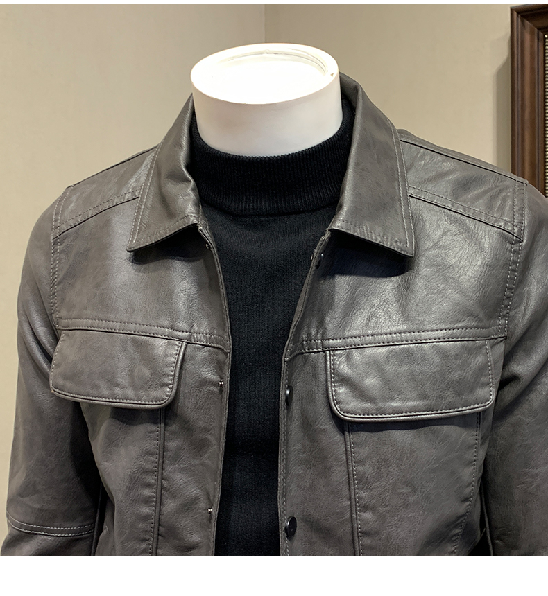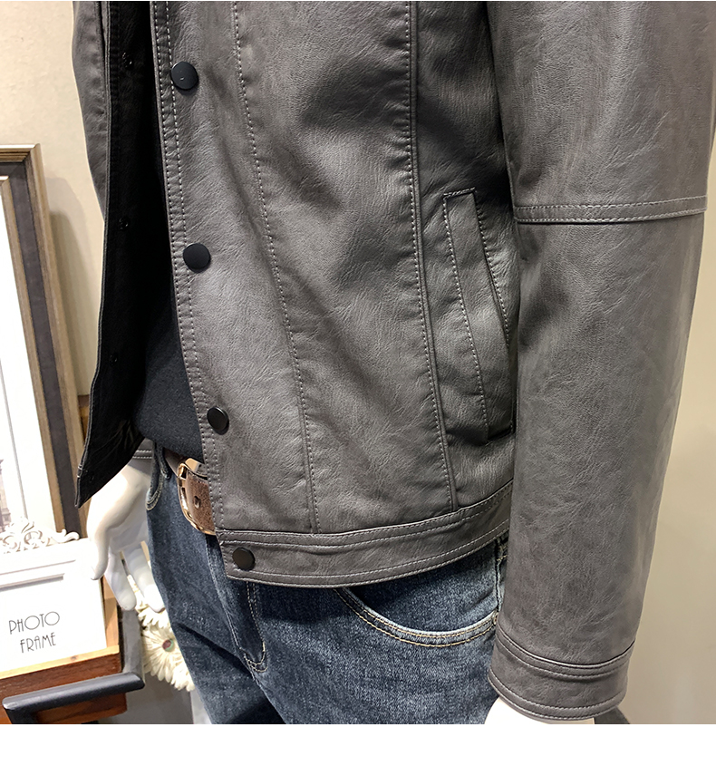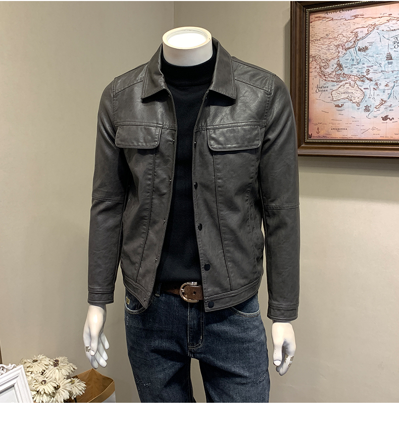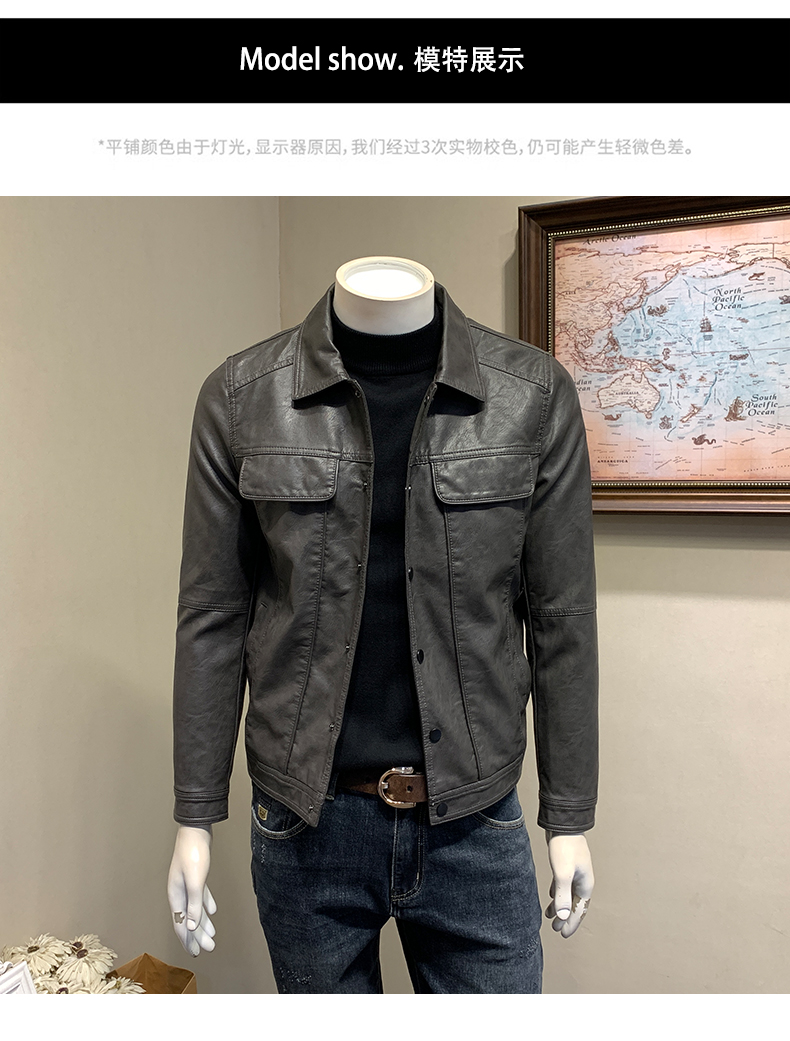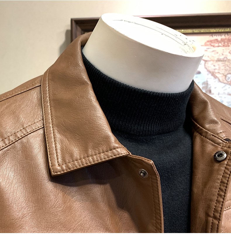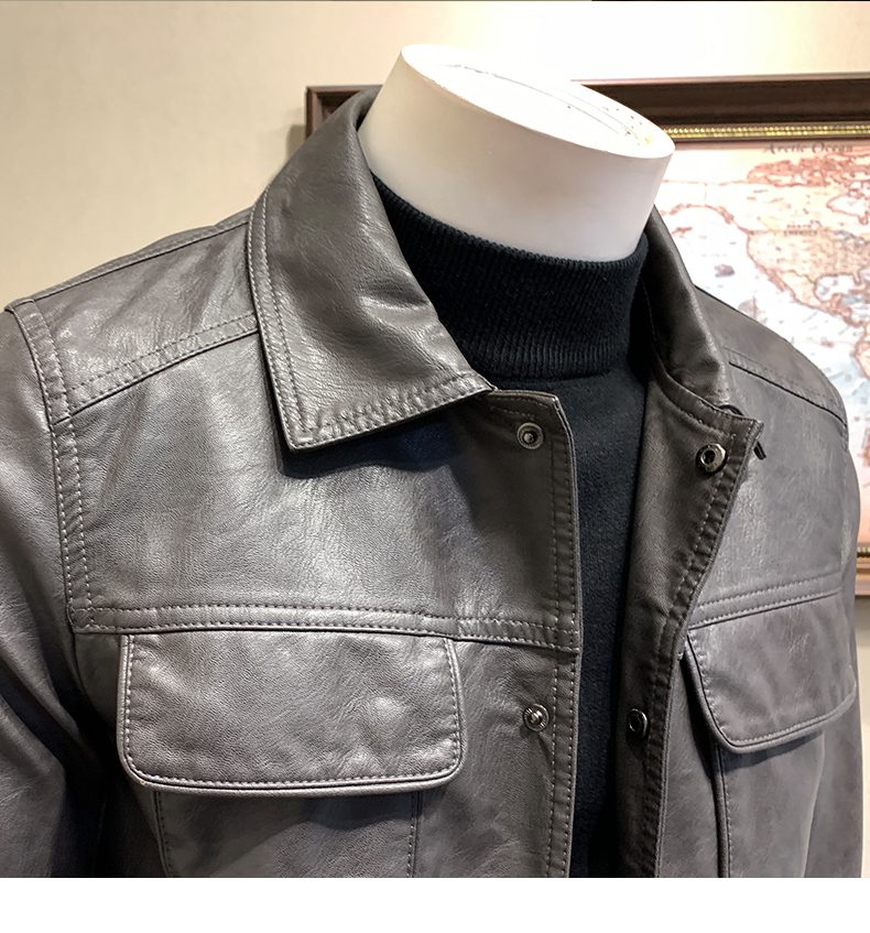 皮衣男加绒加厚春秋冬季翻领皮外套青年潮工装机车皮夹克春季男装