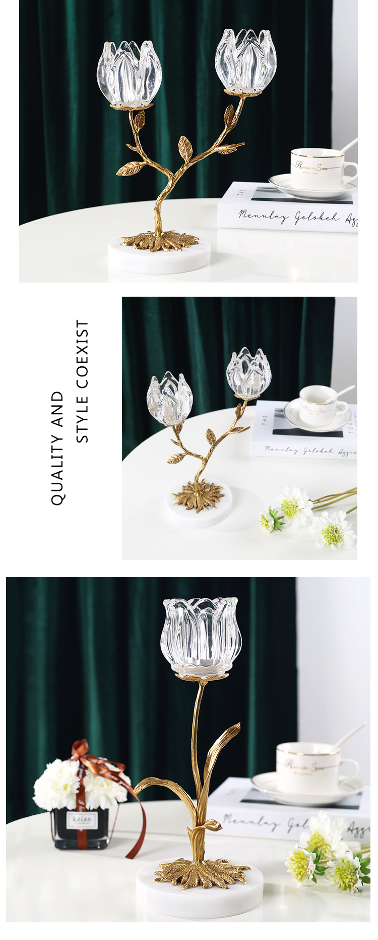 欧式轻奢蜡烛台摆件水晶玻璃铜大理石复古奢华家用浪漫餐桌装饰品