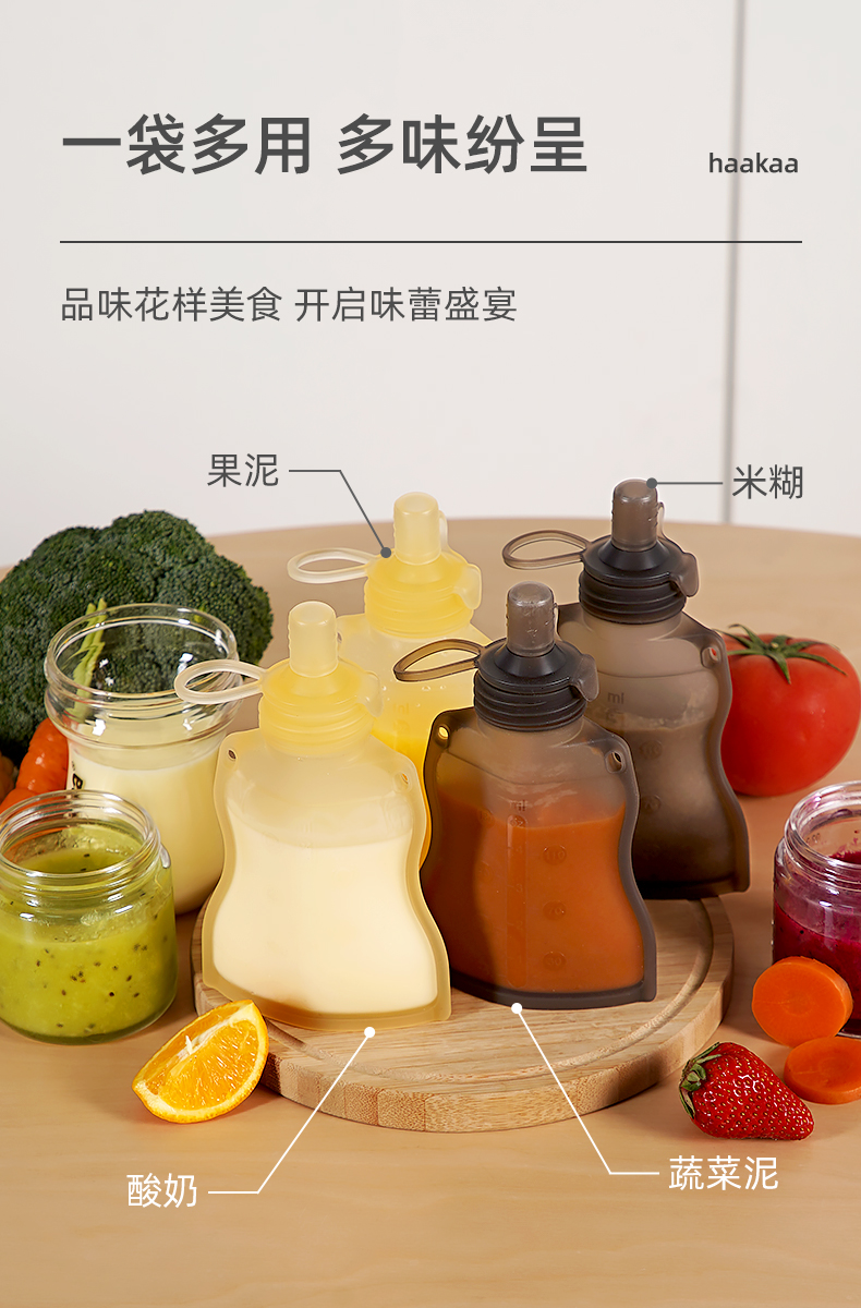 haakaa果泥袋婴儿吃米粉糊辅食工具自制水果宝宝多功能硅胶饮水壶
