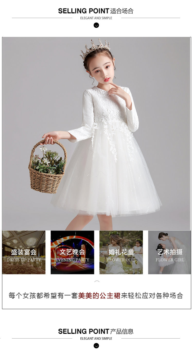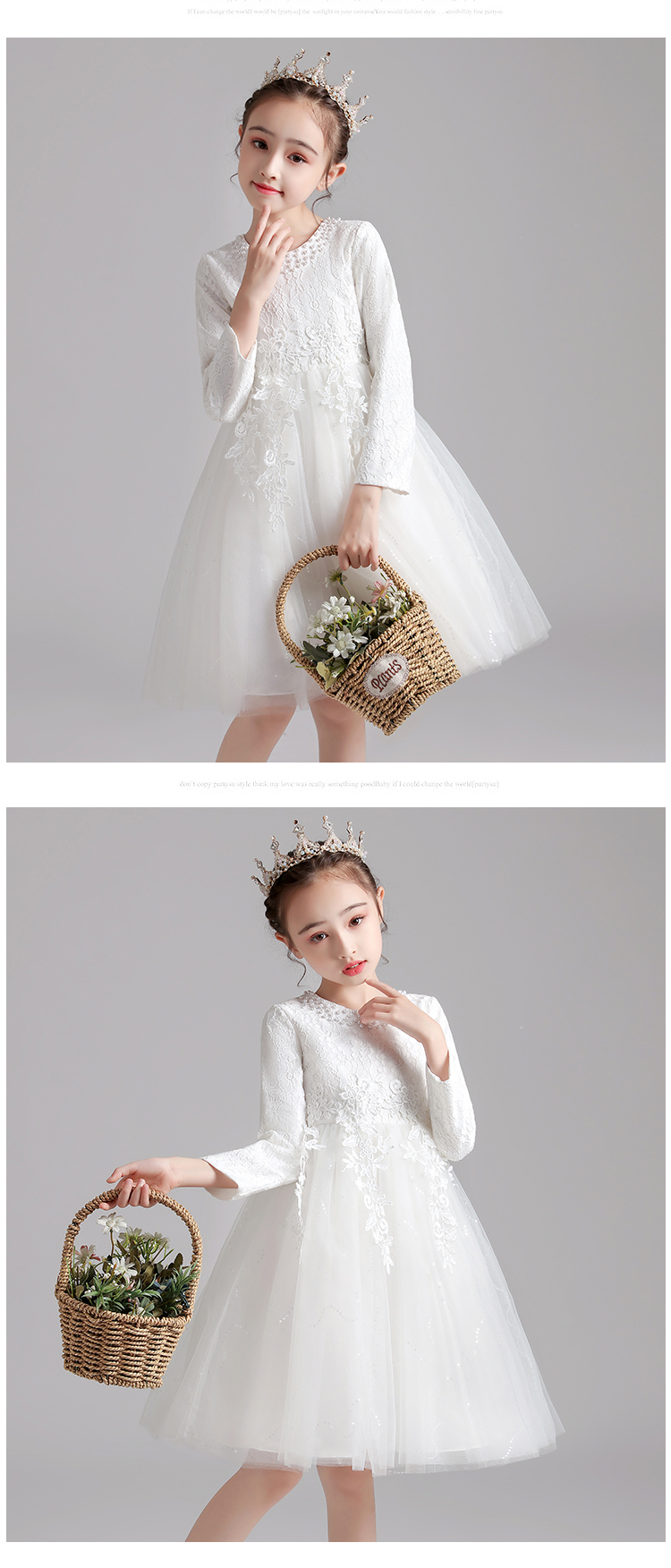 春秋冬女童白色公主裙婚纱裙子儿童长袖蓬蓬连衣裙中大童演出礼服