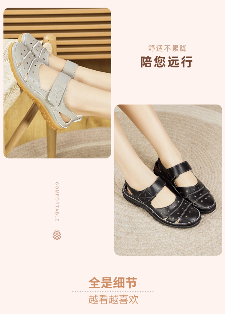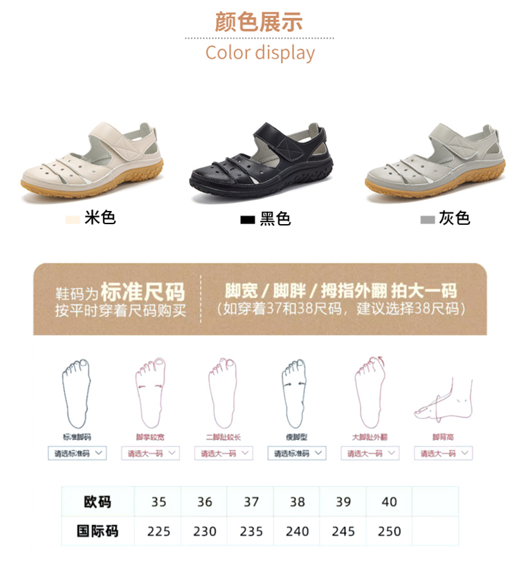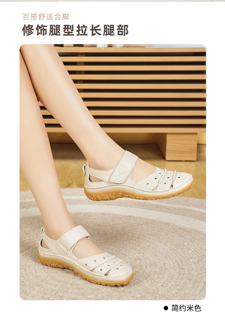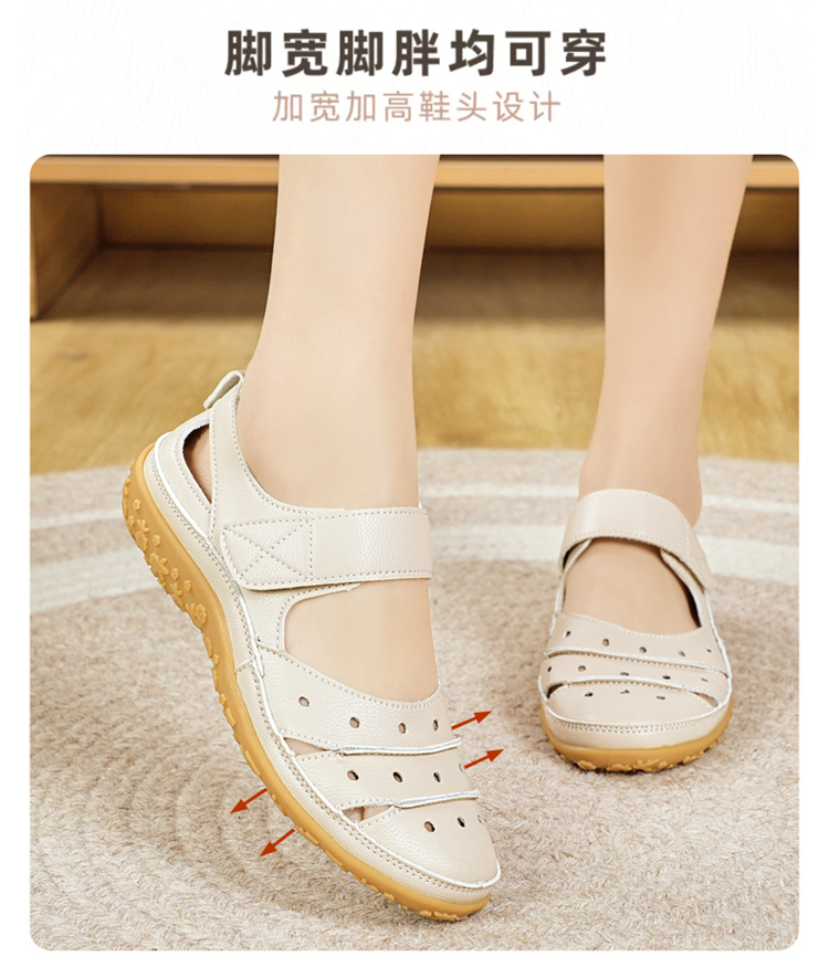 大码女36-42凉鞋女款外穿2025新款气质不累脚真皮软底包头妈妈鞋