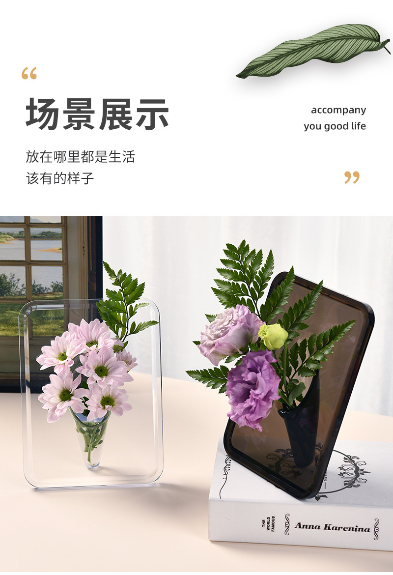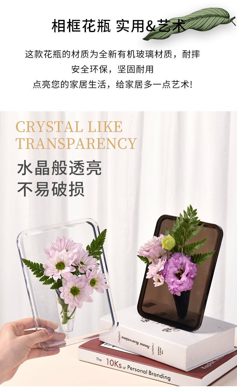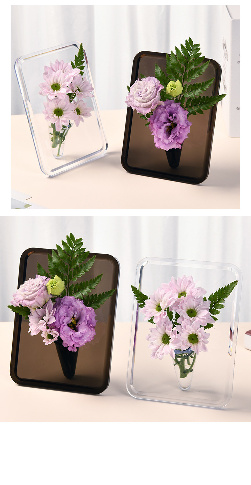 轻奢风创意透明相框花瓶桌面摆件水培女神节亚克力插花瓶
