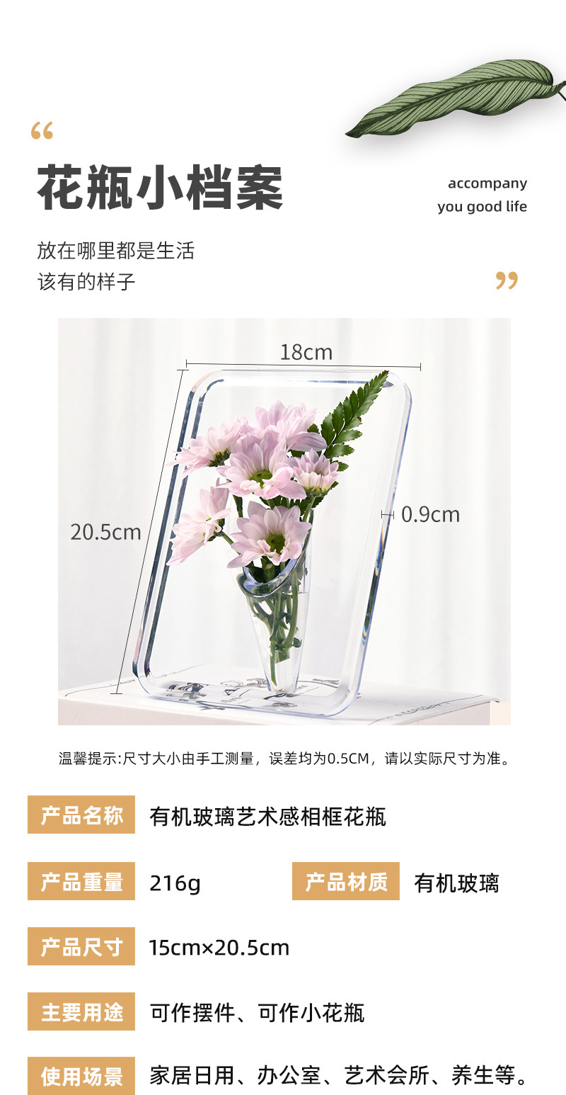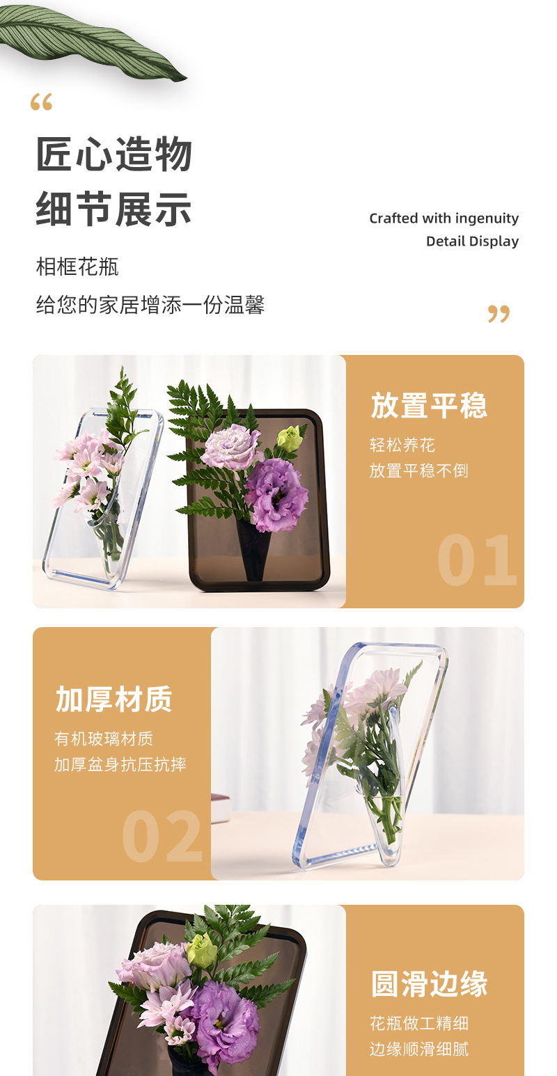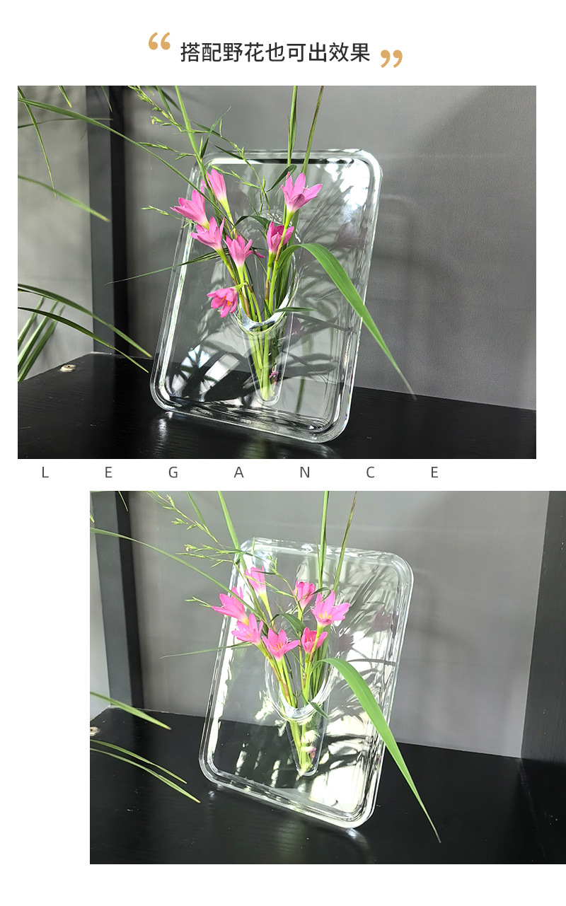轻奢风创意透明相框花瓶桌面摆件水培女神节亚克力插花瓶