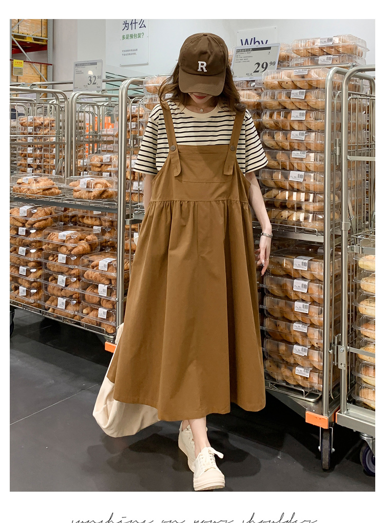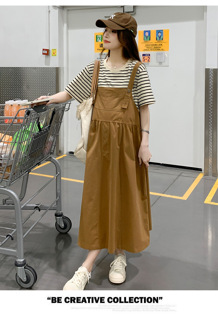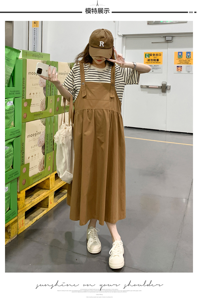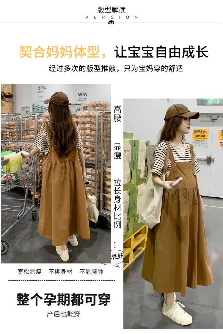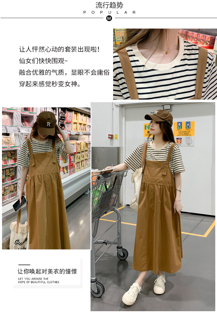 孕妇装夏装时尚孕妇连衣裙宽松中长款背带裙套装洋气潮妈短袖裙子