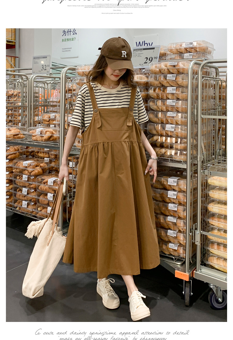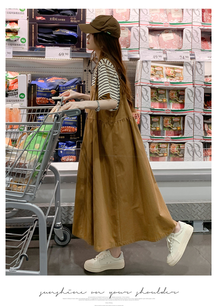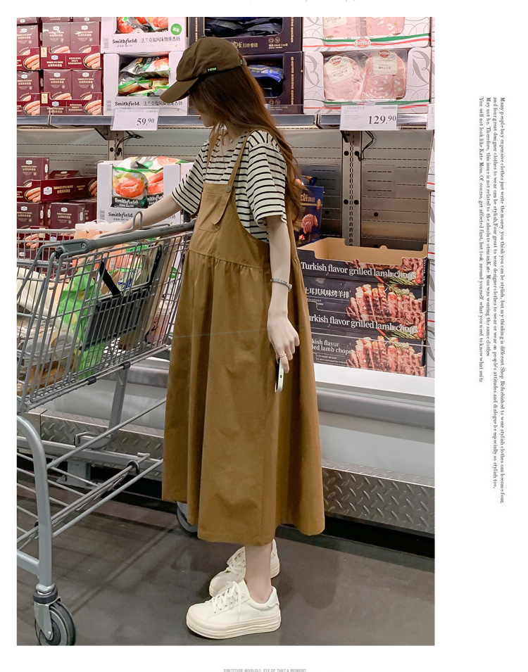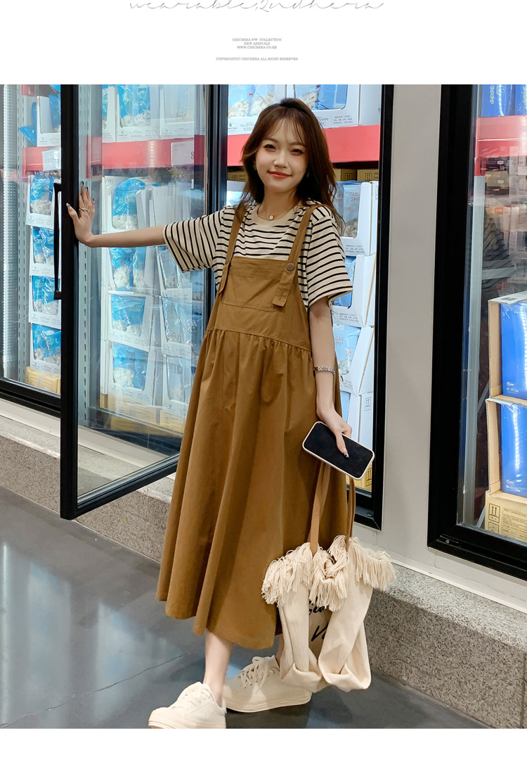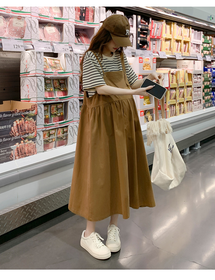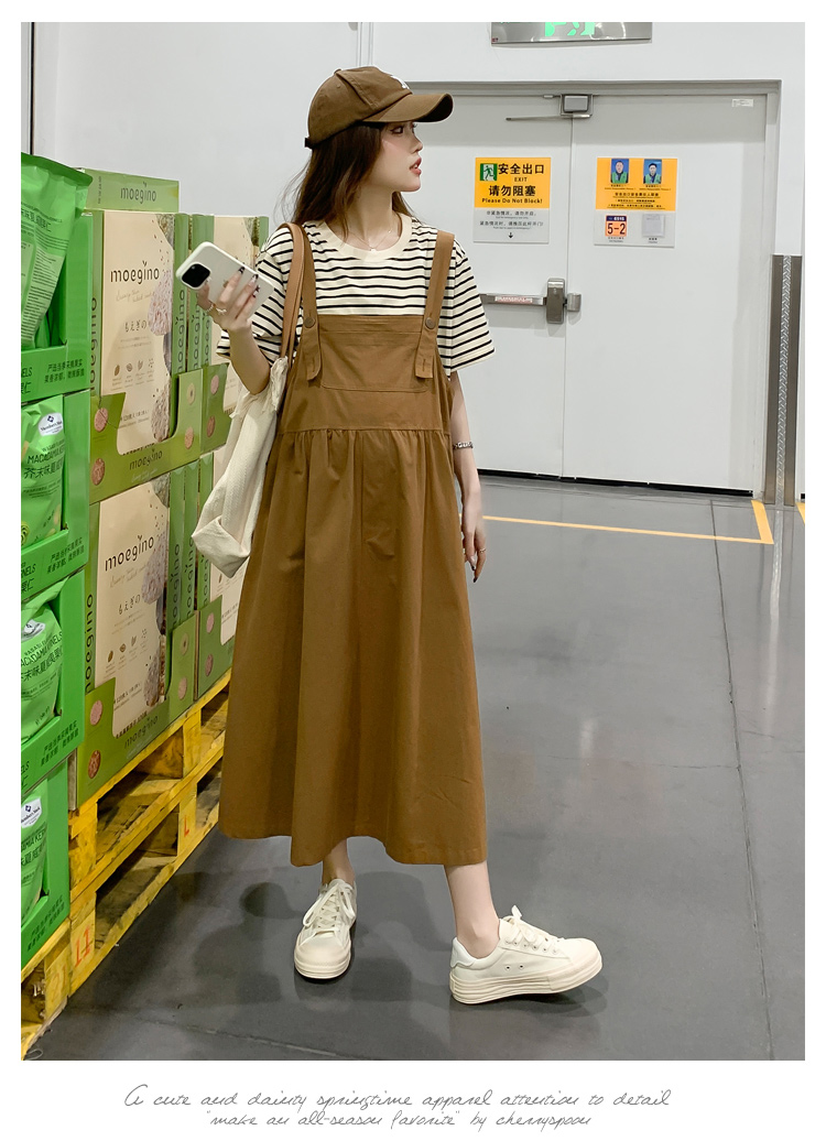 孕妇装夏装时尚孕妇连衣裙宽松中长款背带裙套装洋气潮妈短袖裙子