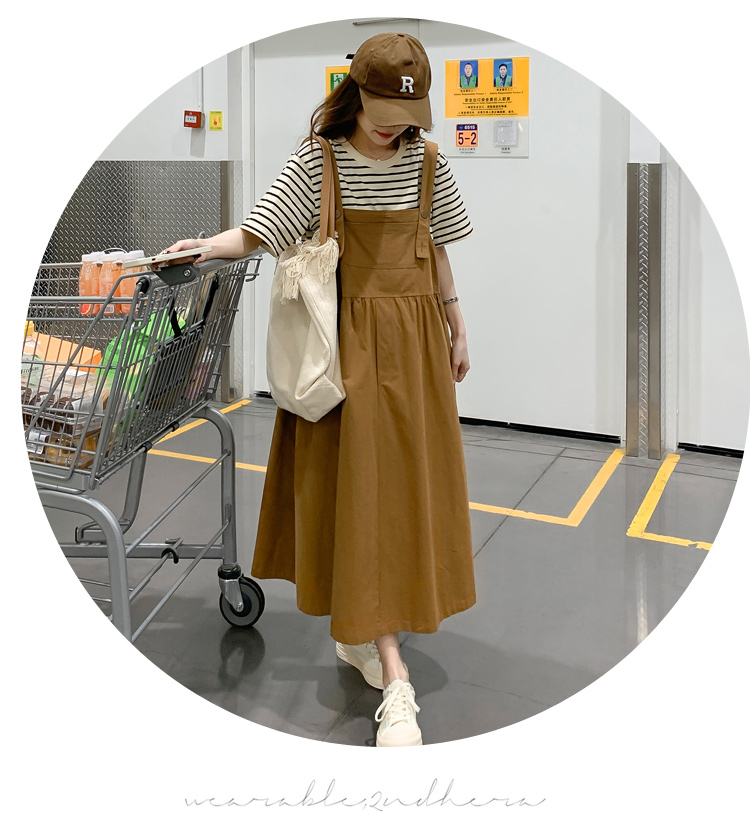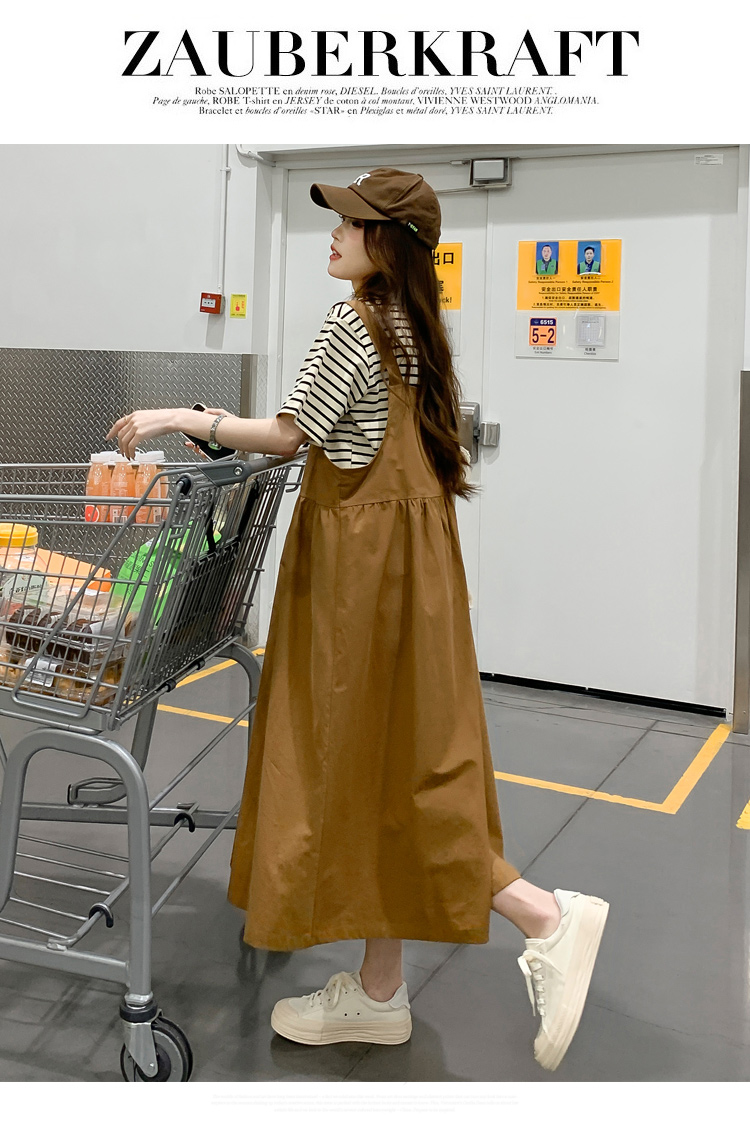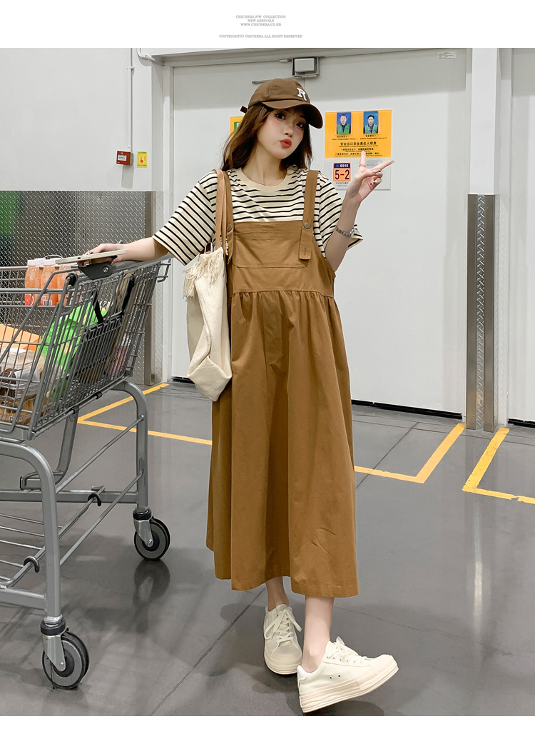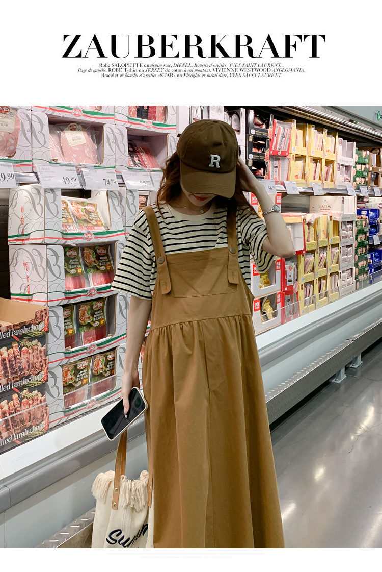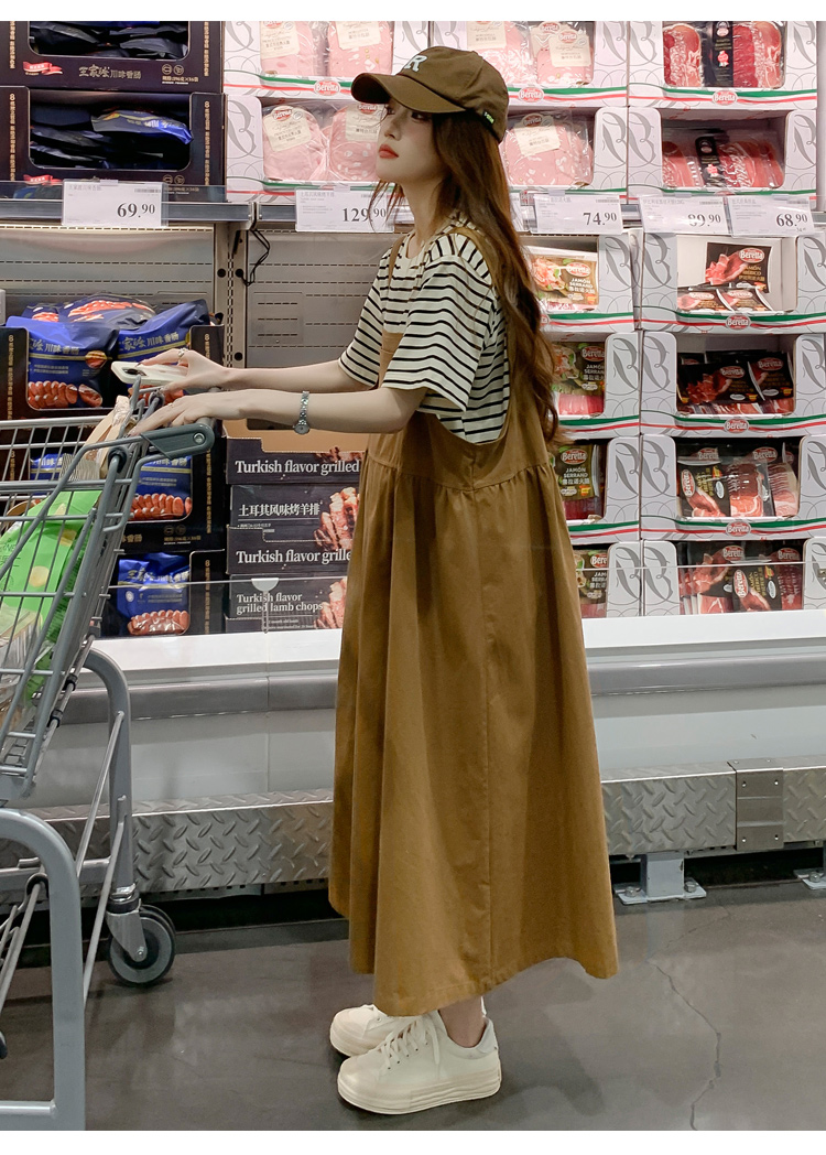 孕妇装夏装时尚孕妇连衣裙宽松中长款背带裙套装洋气潮妈短袖裙子